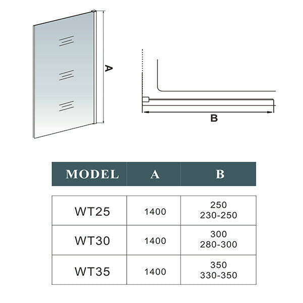 250/300/350/700/800mm Luxury Square Fixed Panel Over Bath Shower Glass Screen