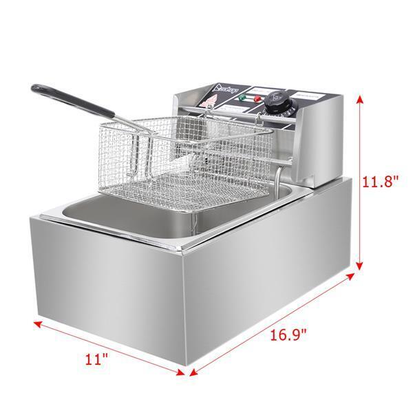 2500W Electric Deep Fat Fryer Stainless Steel Single Cylinder Chip Pan Basket