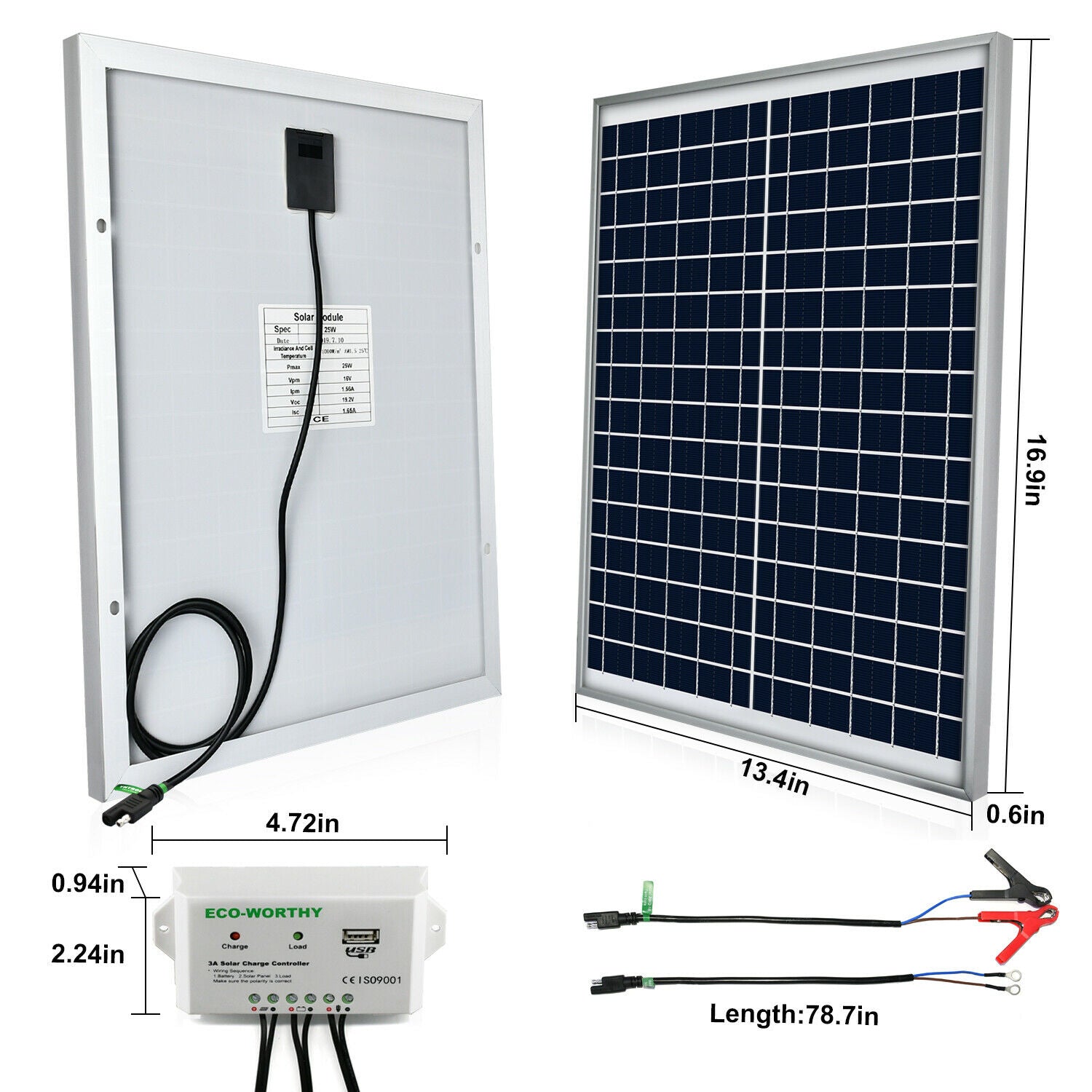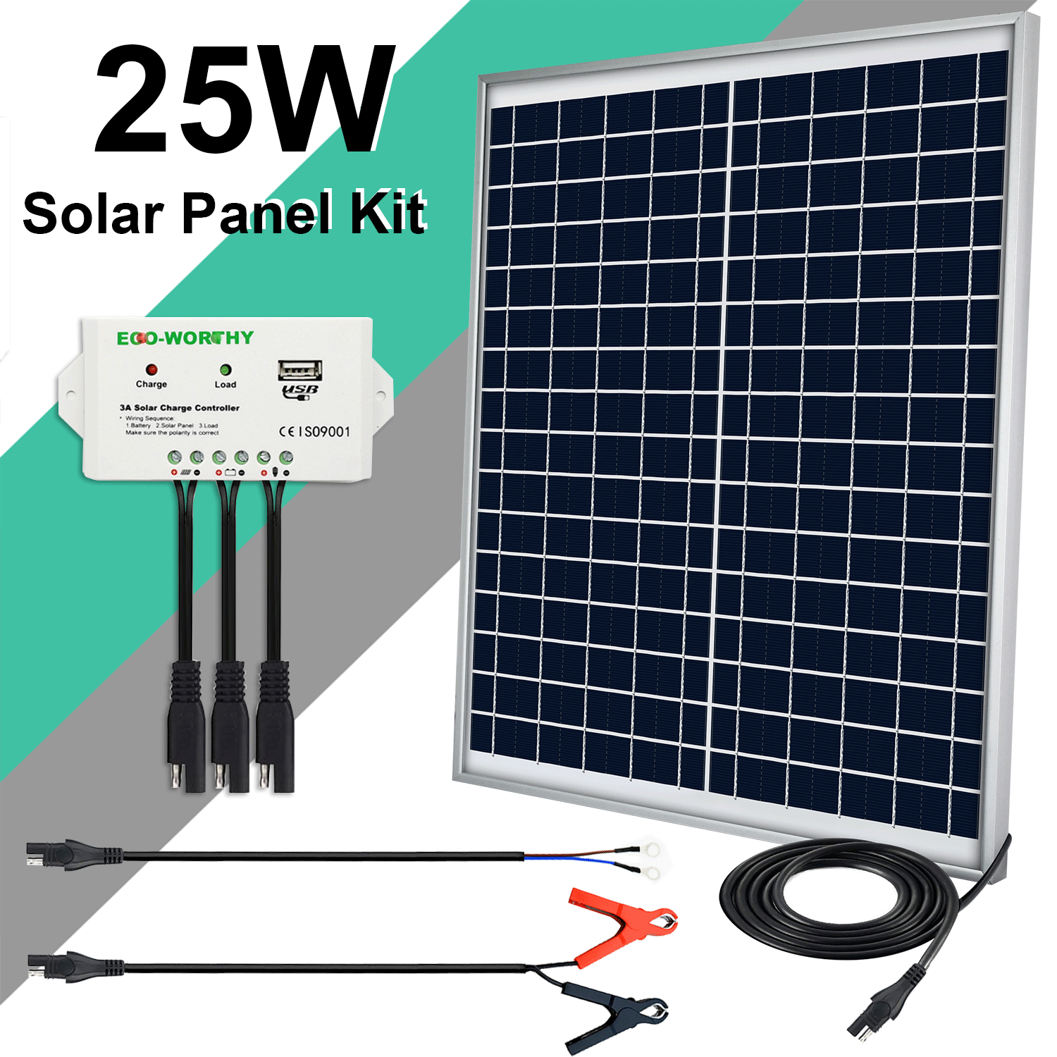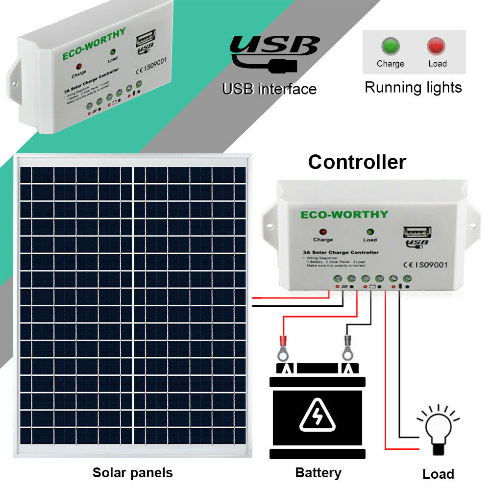 25W Watt Solar Panel Kit 12V Trickle Battery Charger RV Car Boat Maintainer