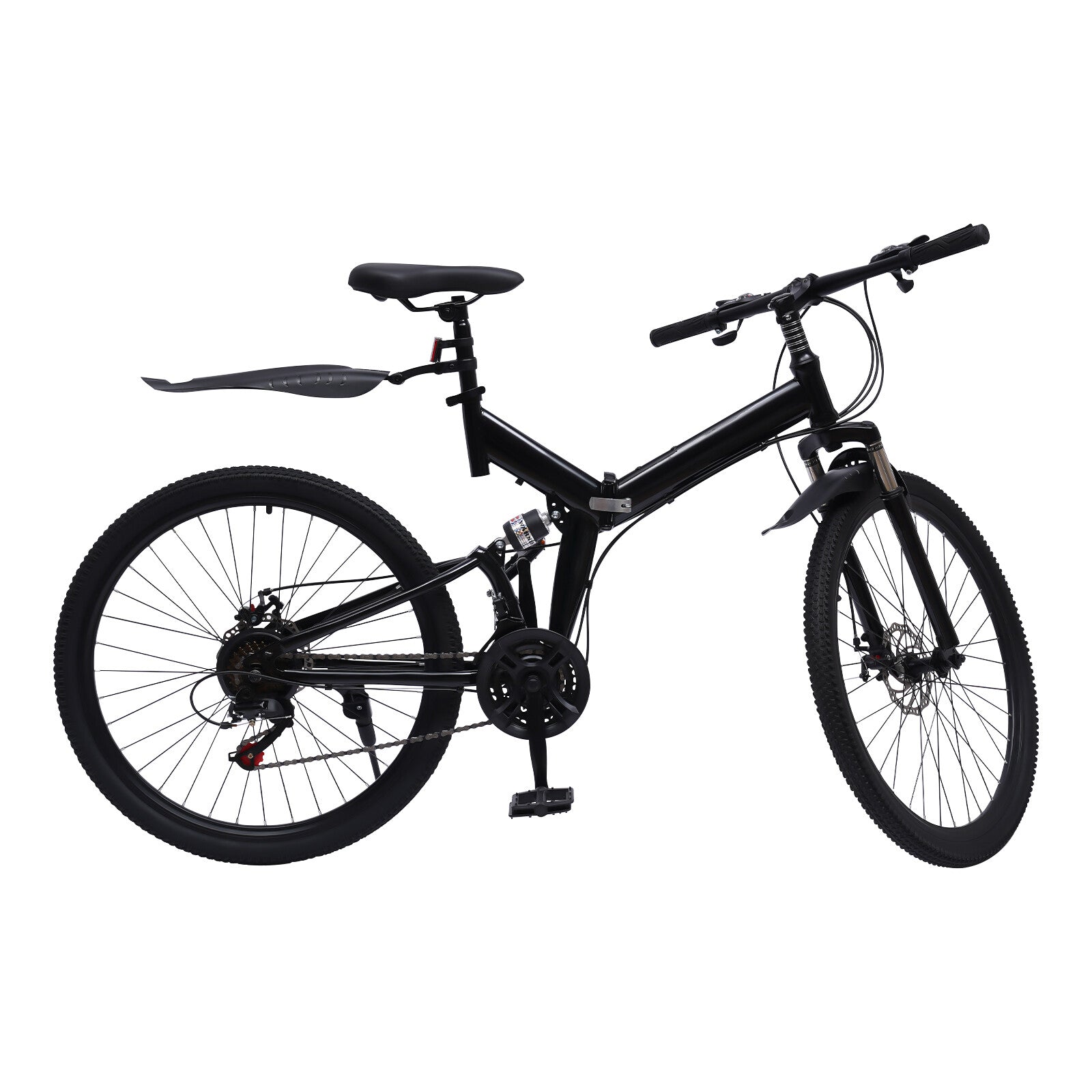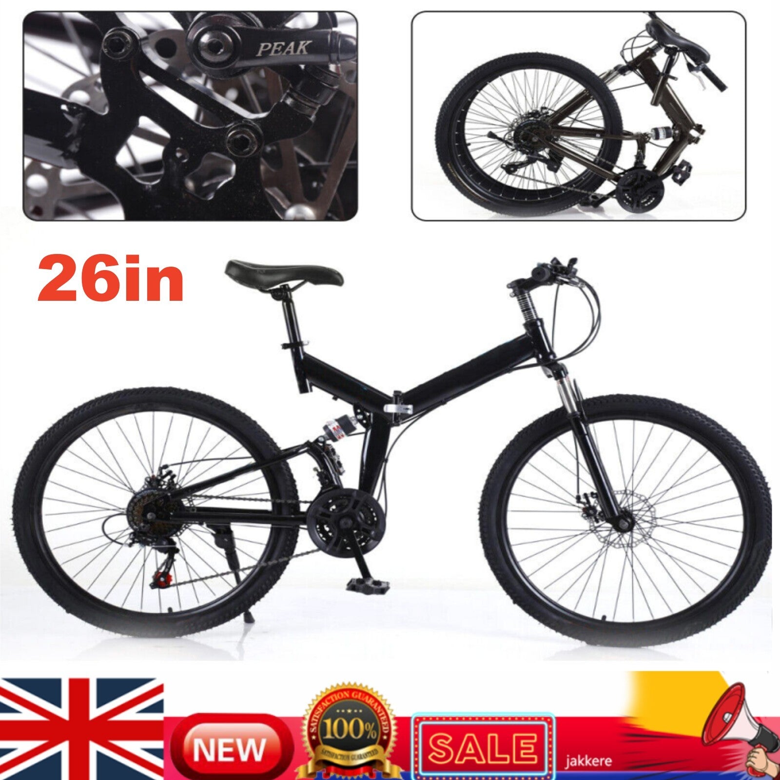 26 in Folding Mountain Bike 21-Speed MTB Bicycle Full Suspension Disc Brake Bike