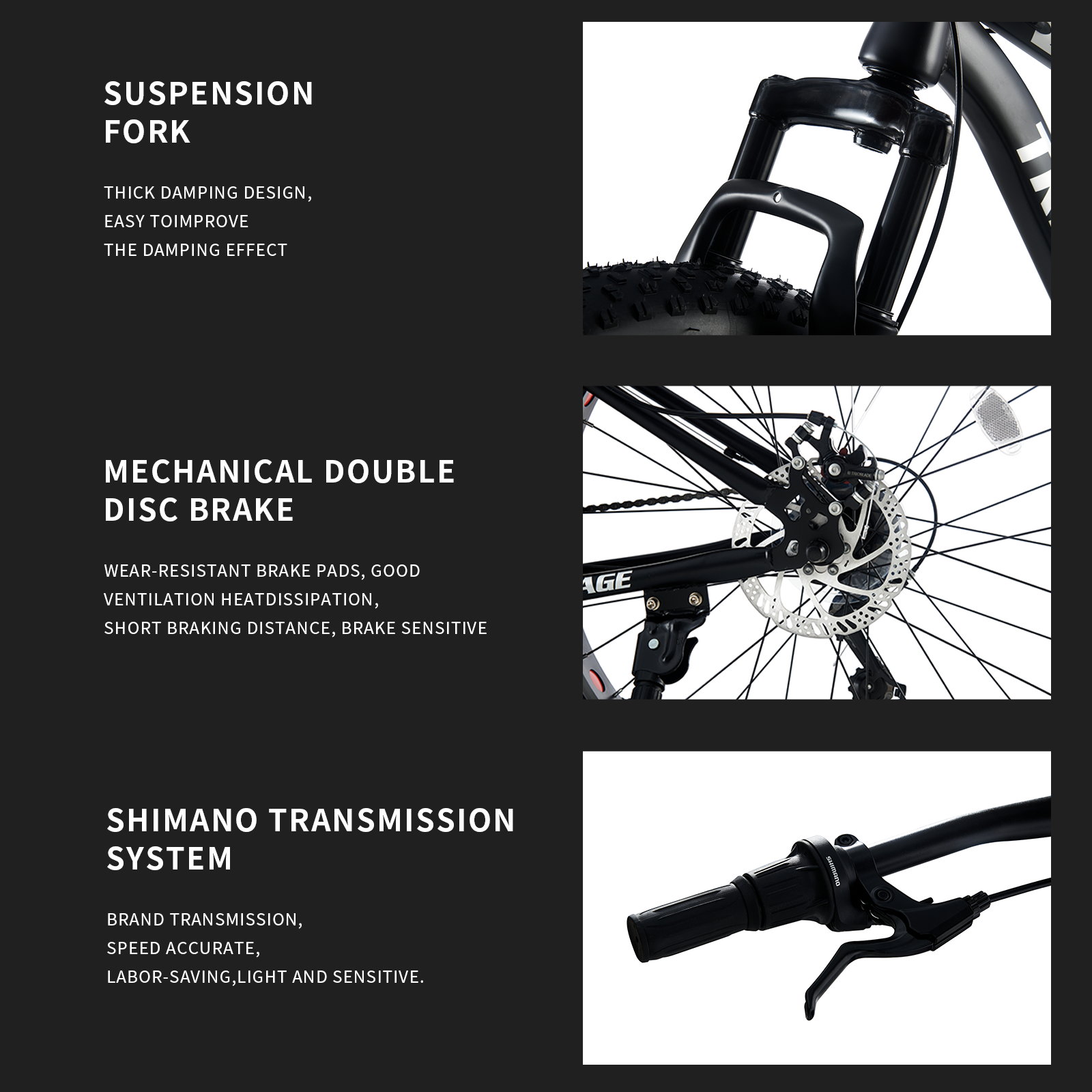 26 inch Wheel Mountain Bike Fat Tire Bicycle 7-Speed Bikes Cycle For Men Women