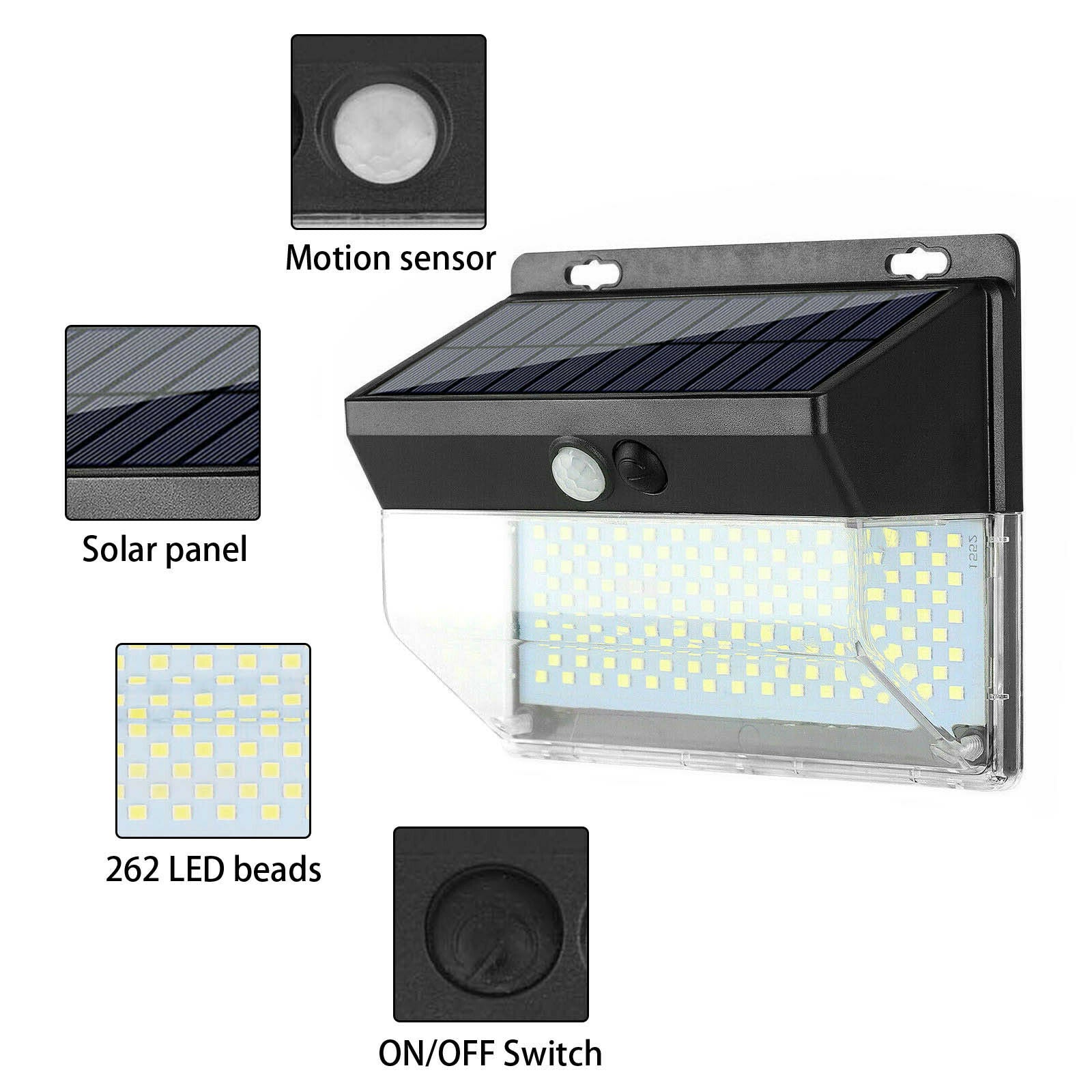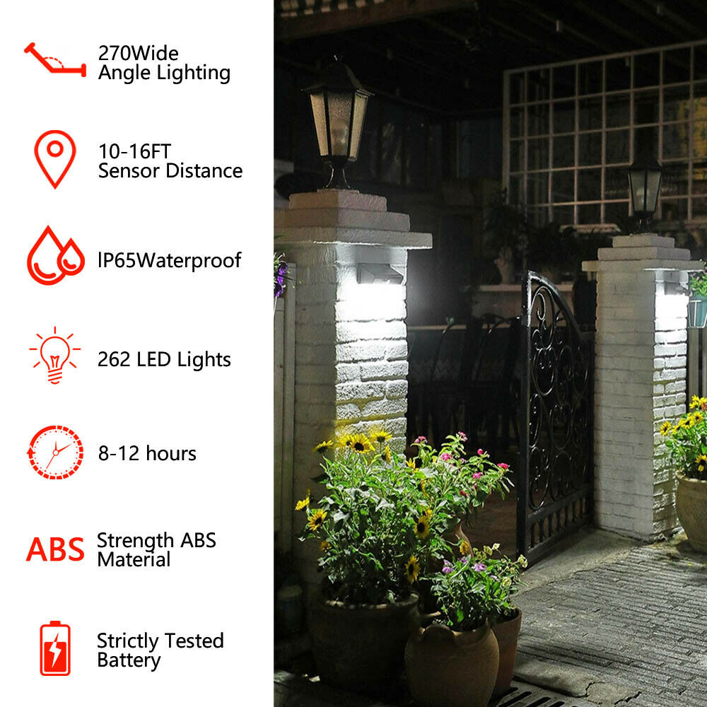262 LED Solar Powered PIR Motion Sensor Light Bright Outdoor Garden Wall Lights