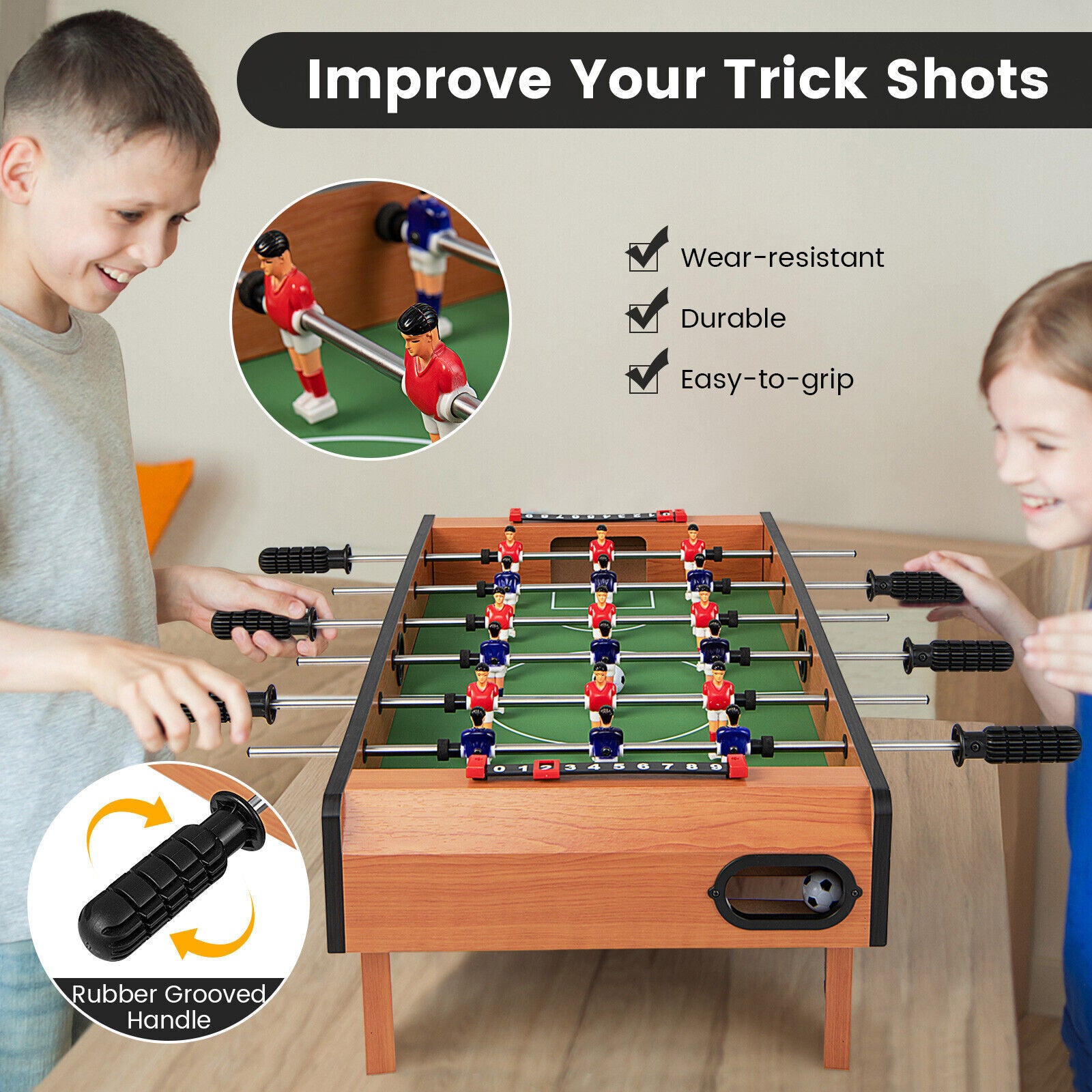 27'' Football Table Top Football Soccer Kids Family Game Toy Set Wooden Frame