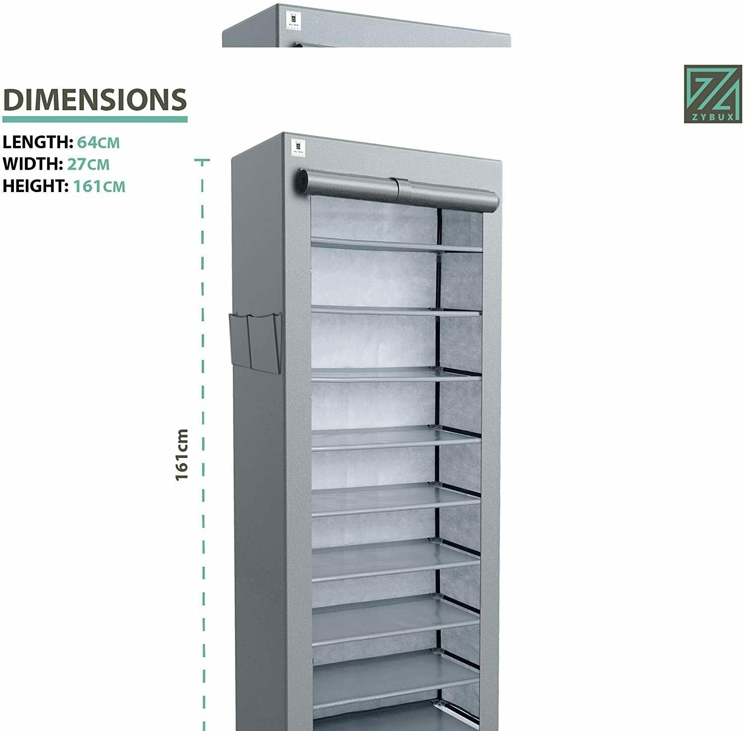 27 PAIRS 10 TIER DUSTPROOF SHOES CABINET STORAGE ORGANISER SHOE RACK STAND HOLDS