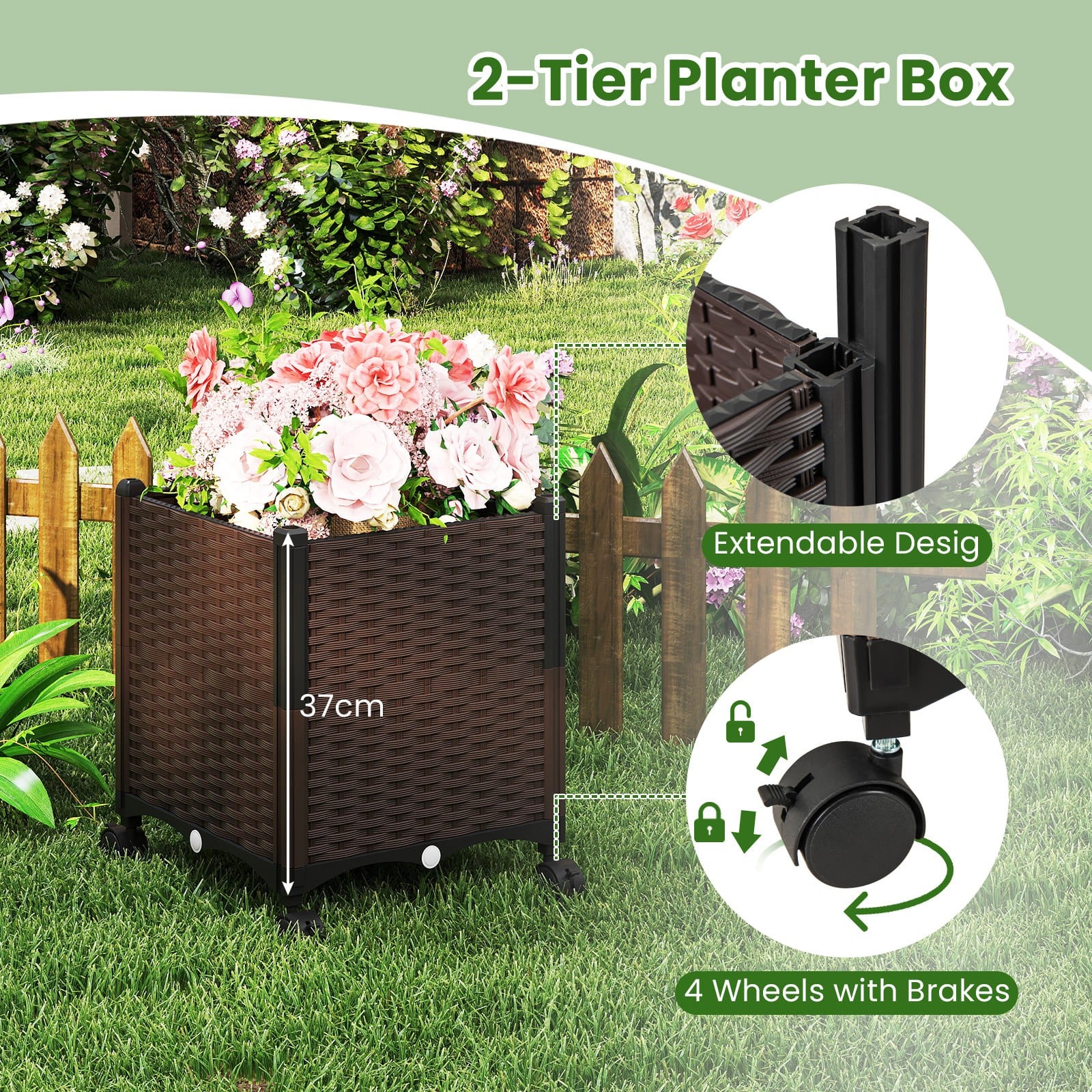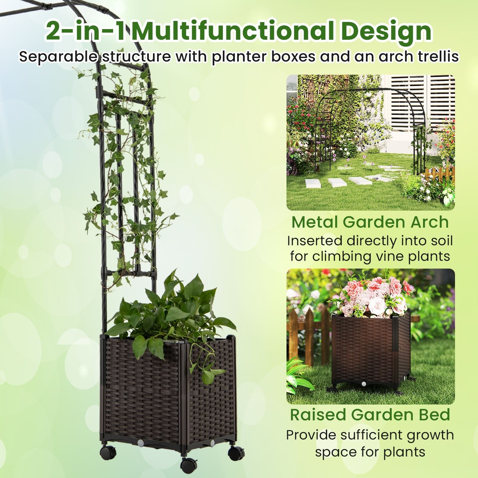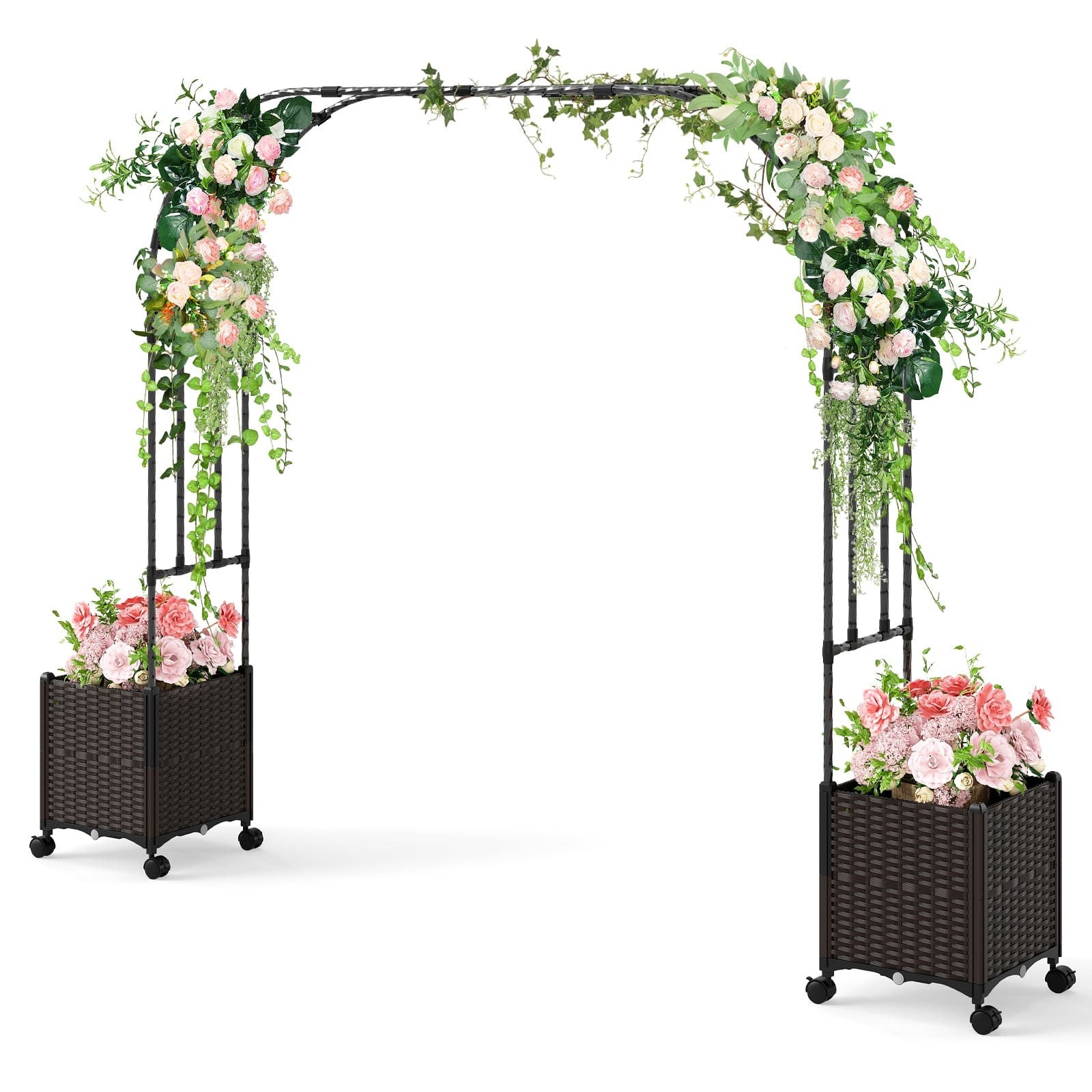 288cm Garden Arch Trellis Outdoor Arbor Archway w/2 Planter Boxes-Black