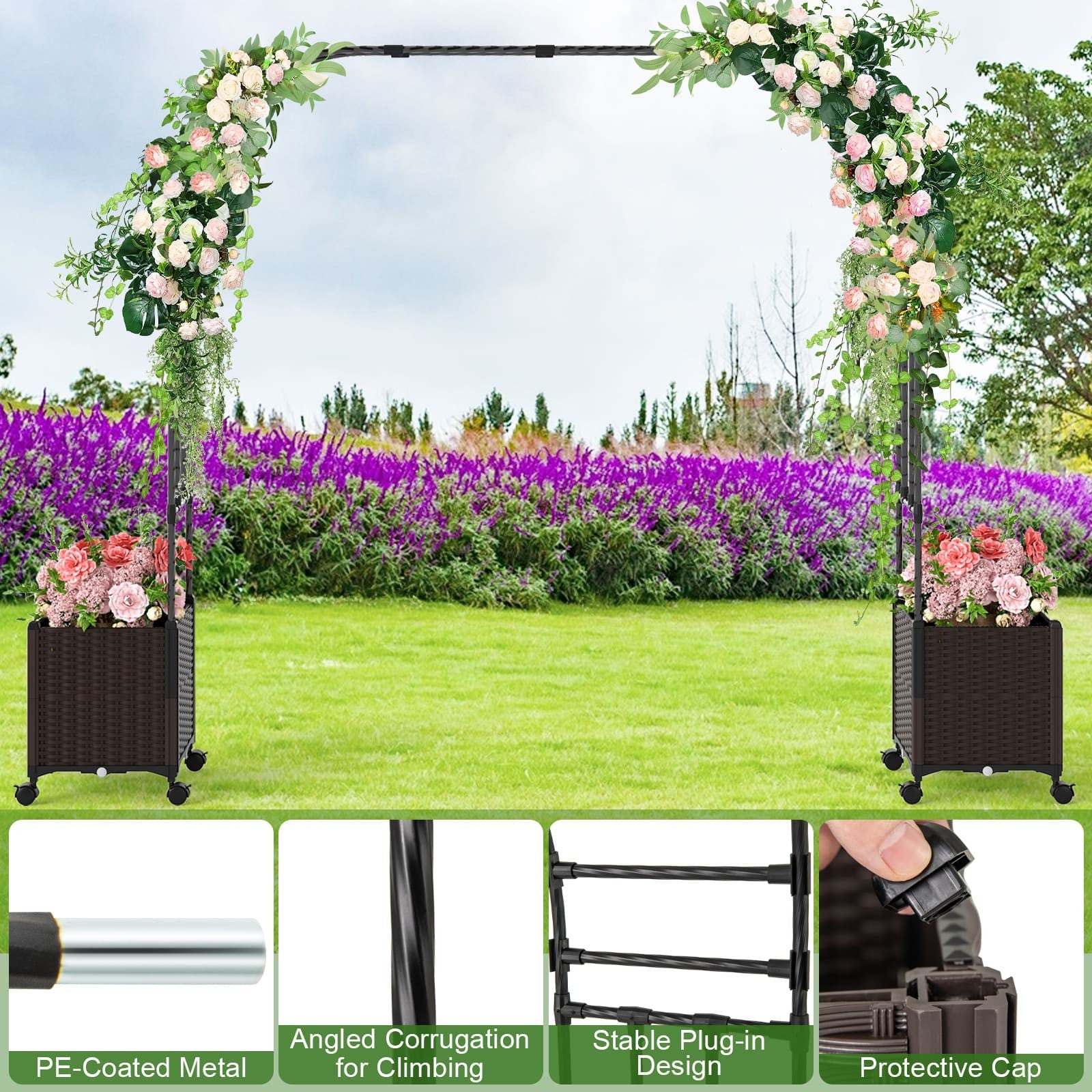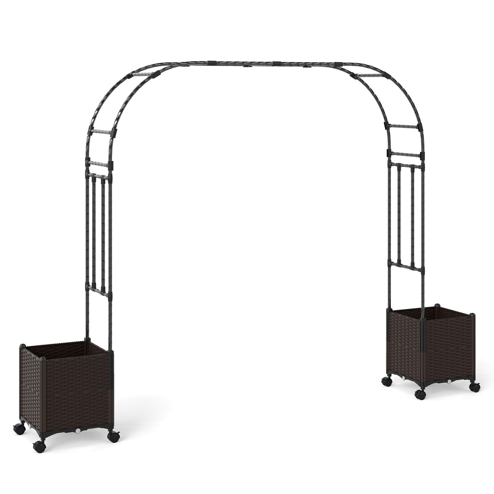 288cm Garden Arch Trellis Outdoor Arbor Archway w/2 Planter Boxes-Black