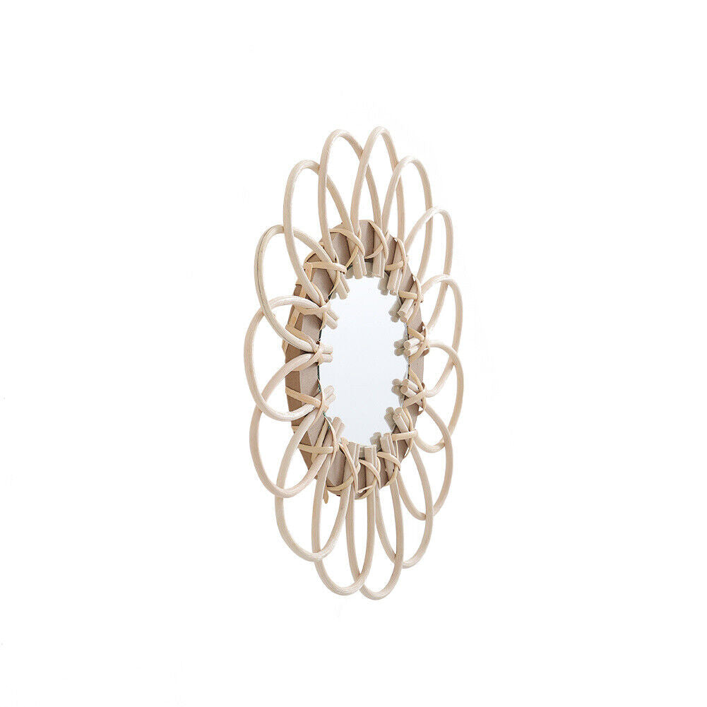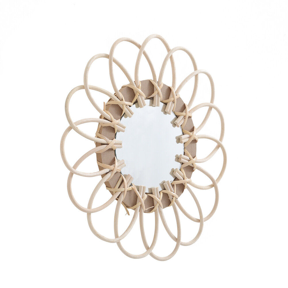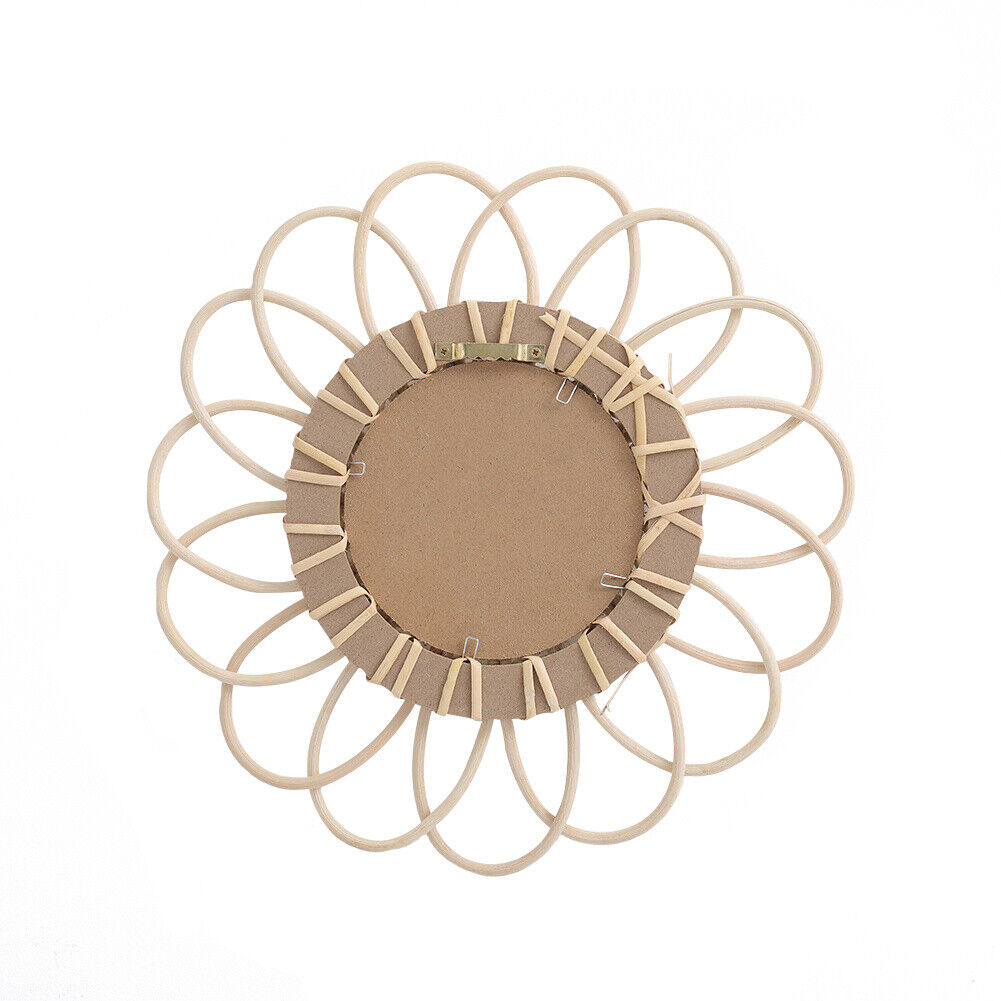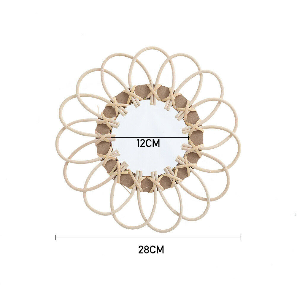 28cm Boho Flower Rose Rattan Frame Glass Wall Mirror Round Hanging Hallway Decor