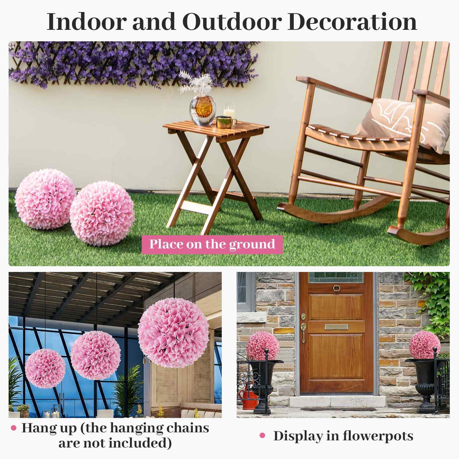 28cm Decorative Balls Garden Faux Plants 2 PCS Artificial Plant-Pink