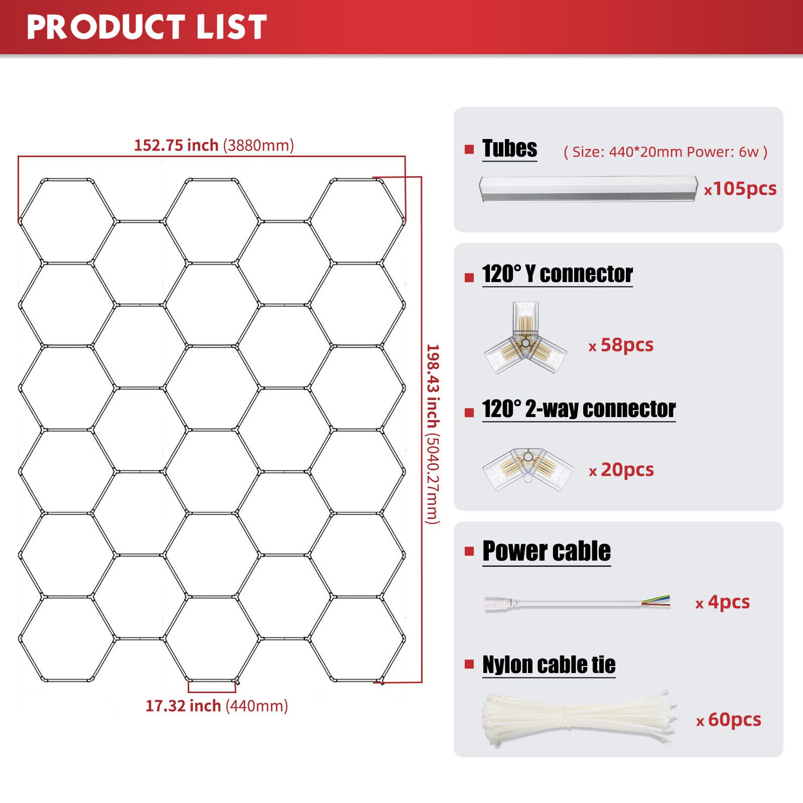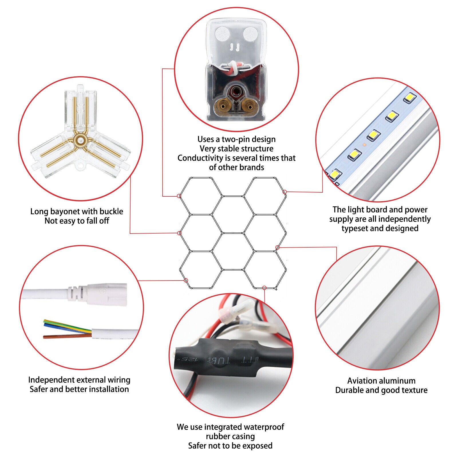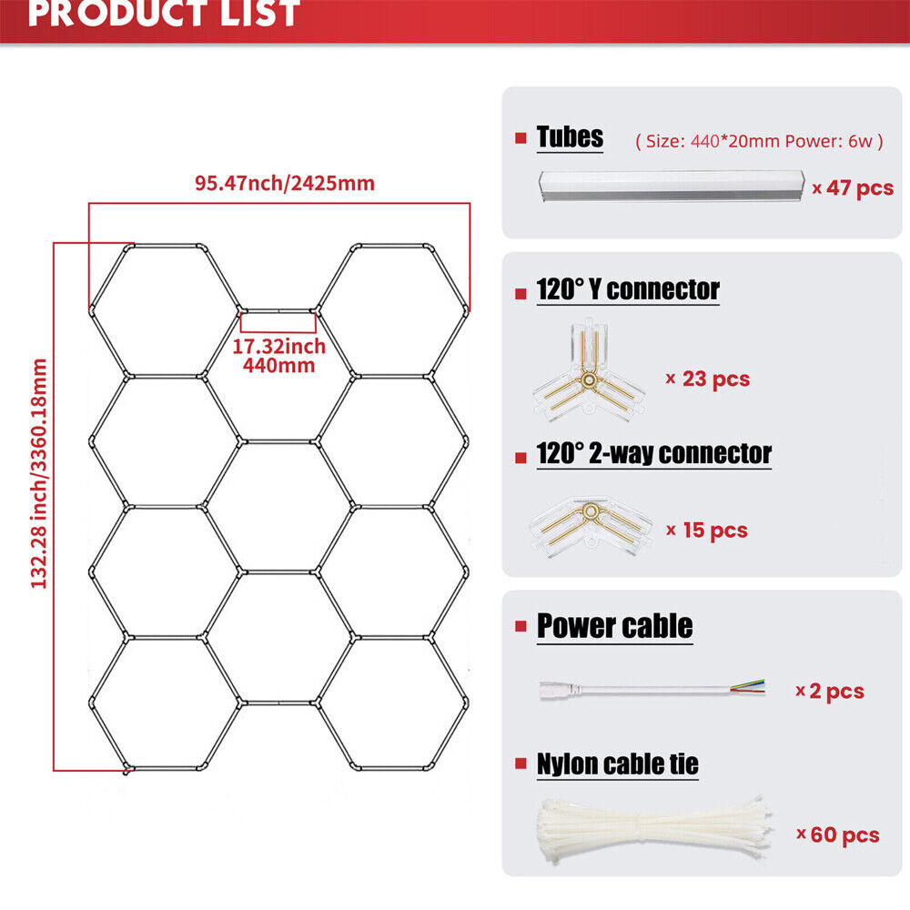 28HEX Hexagon LED Lighting Detailing Garage Workshop Retail Car Showroom Custom