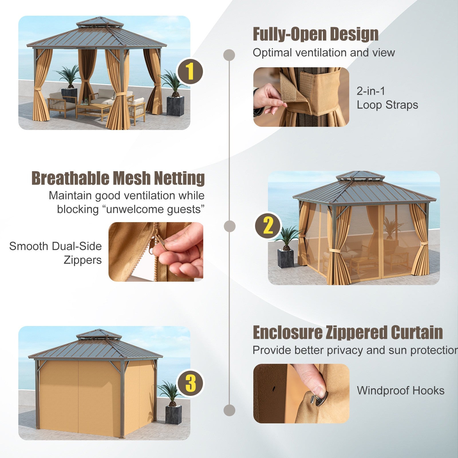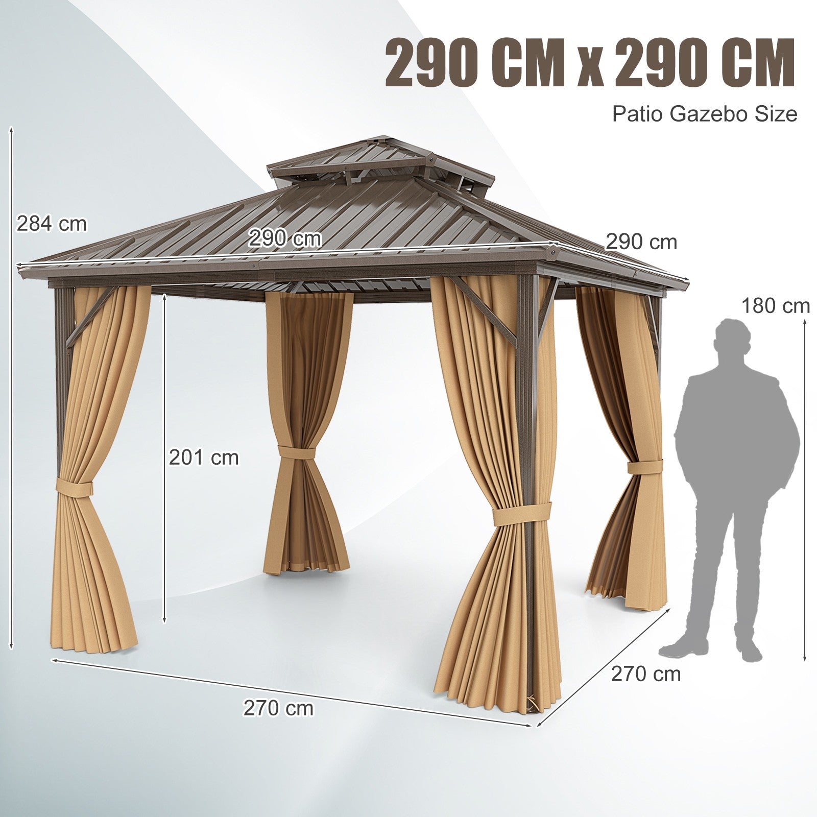 290 x 290 cm Hardtop Gazebo w/Aluminum Frame-Coffee