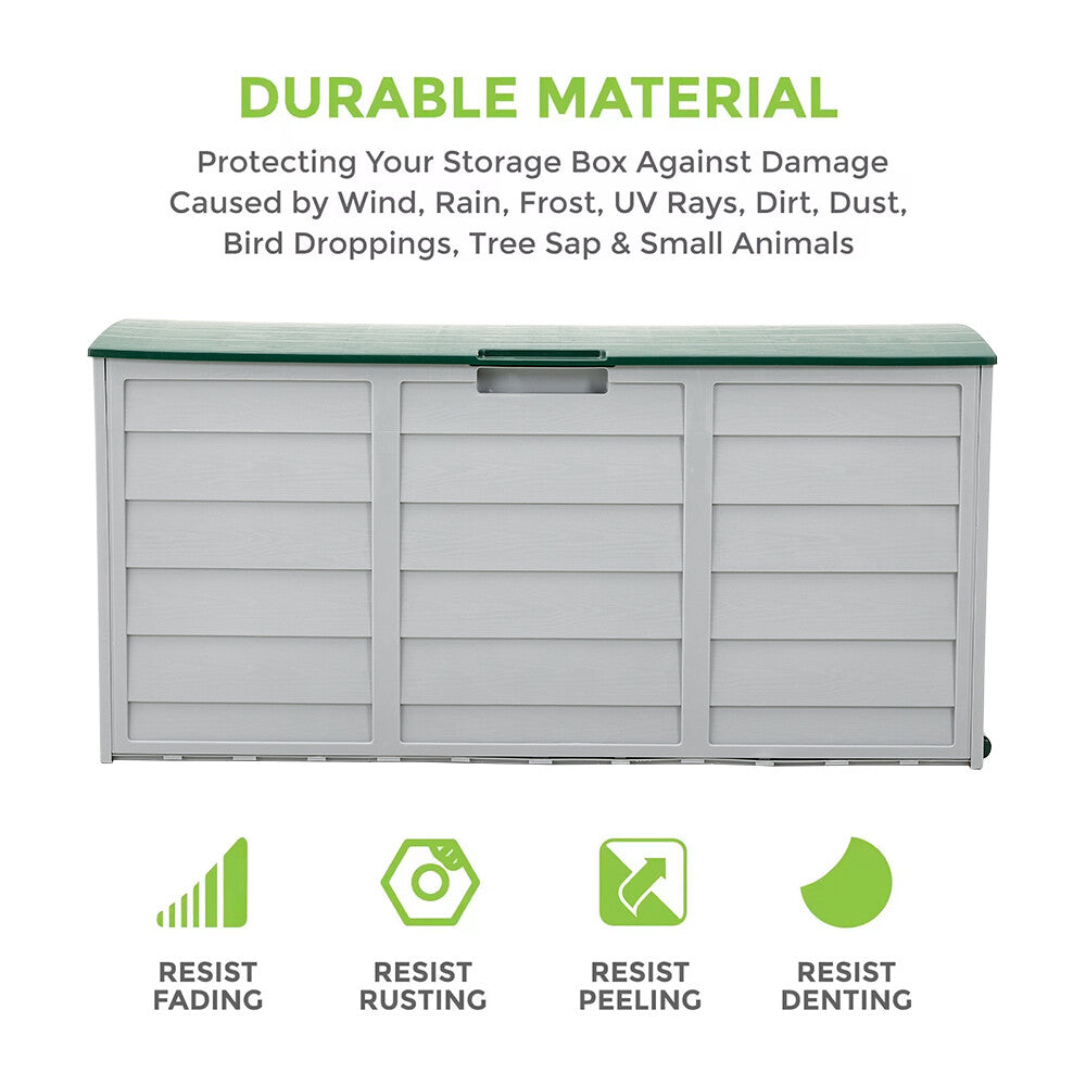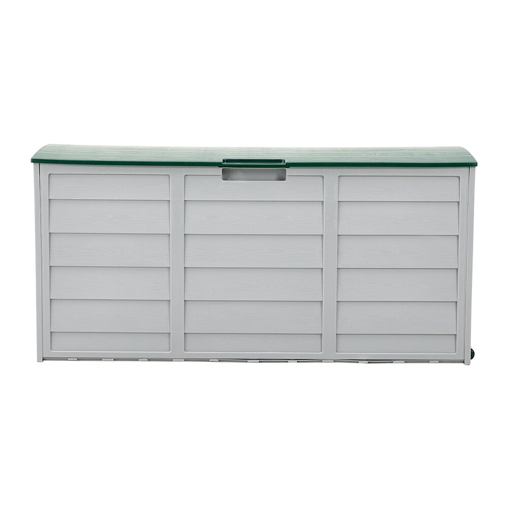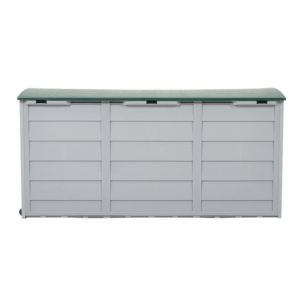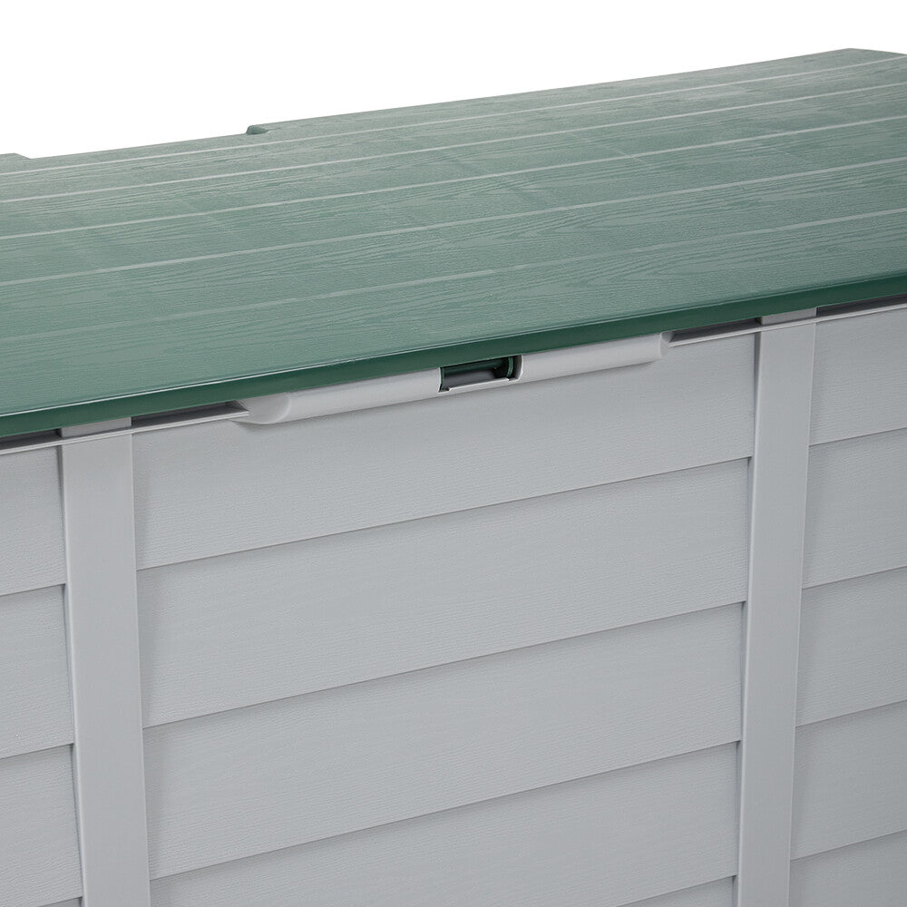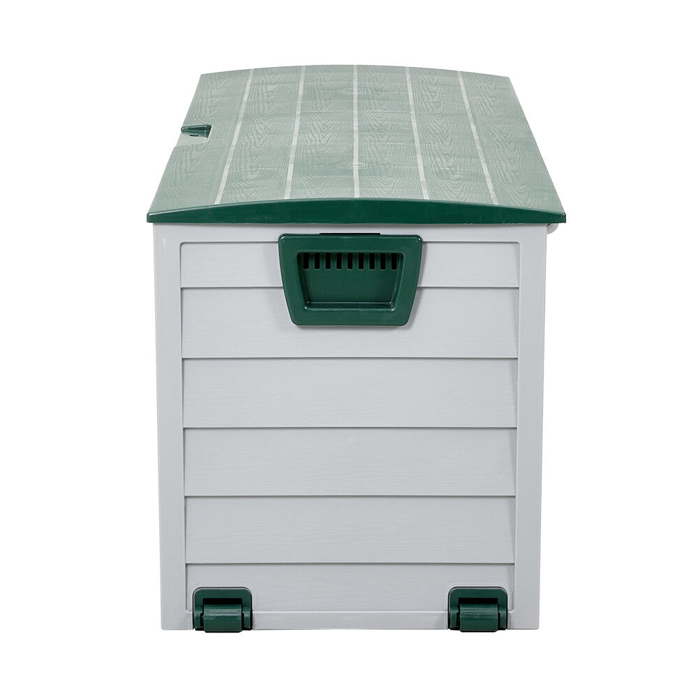 290L Wood Style Plastic Garden Storage Box Outdoor Deck Waterproof Chest Storage