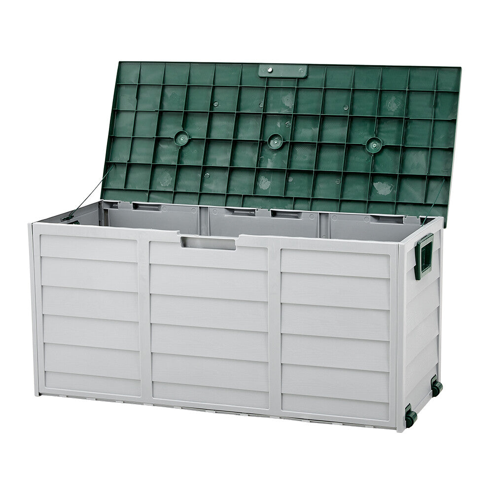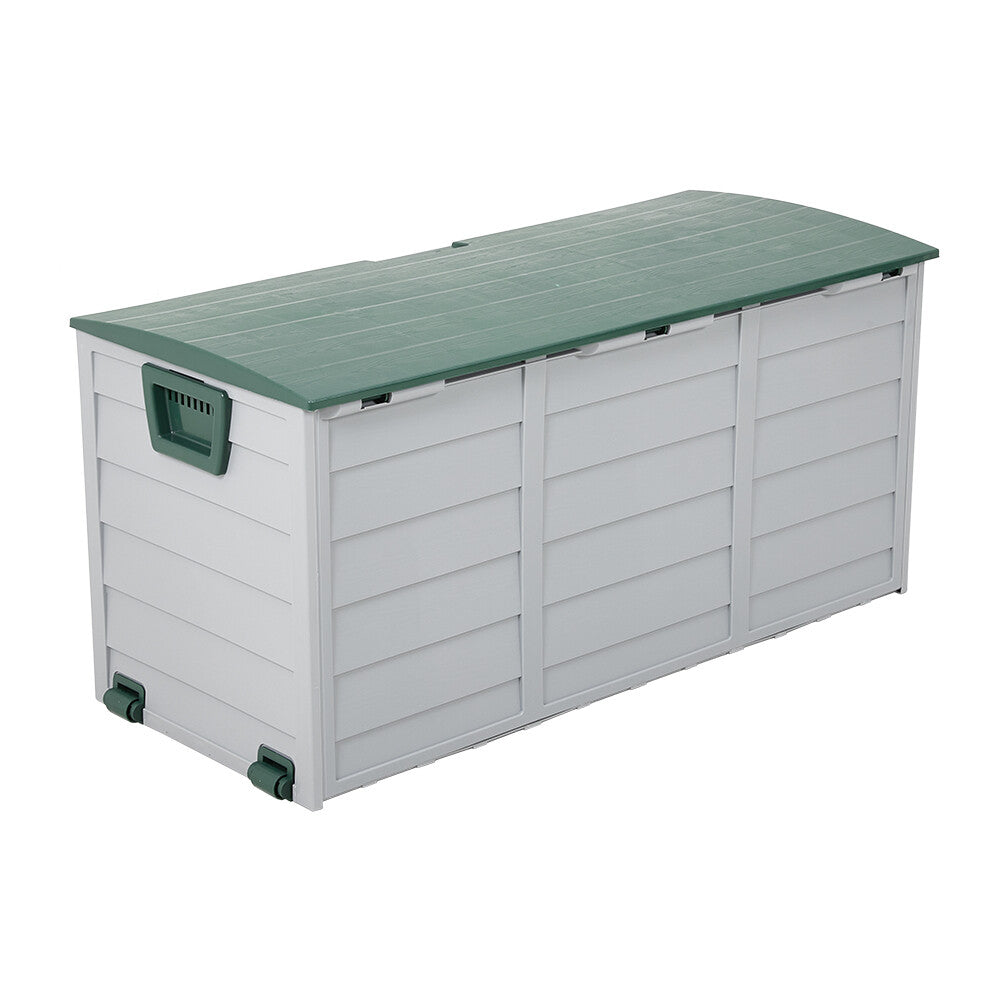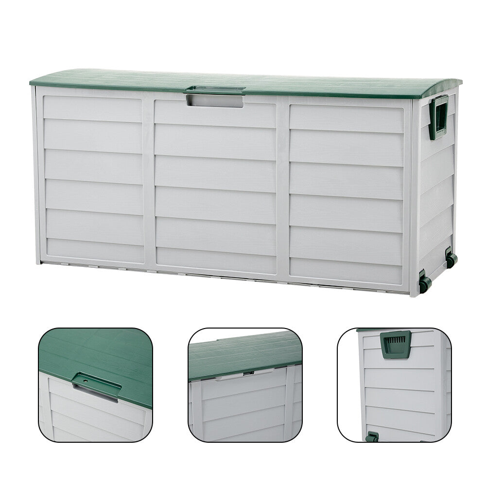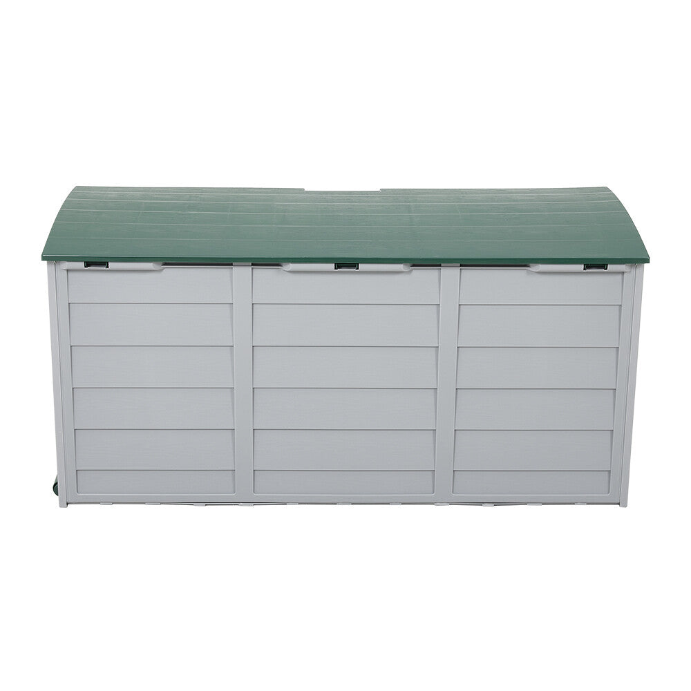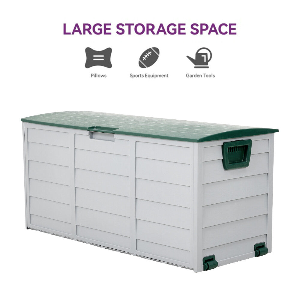 290L Wood Style Plastic Garden Storage Box Outdoor Deck Waterproof Chest Storage