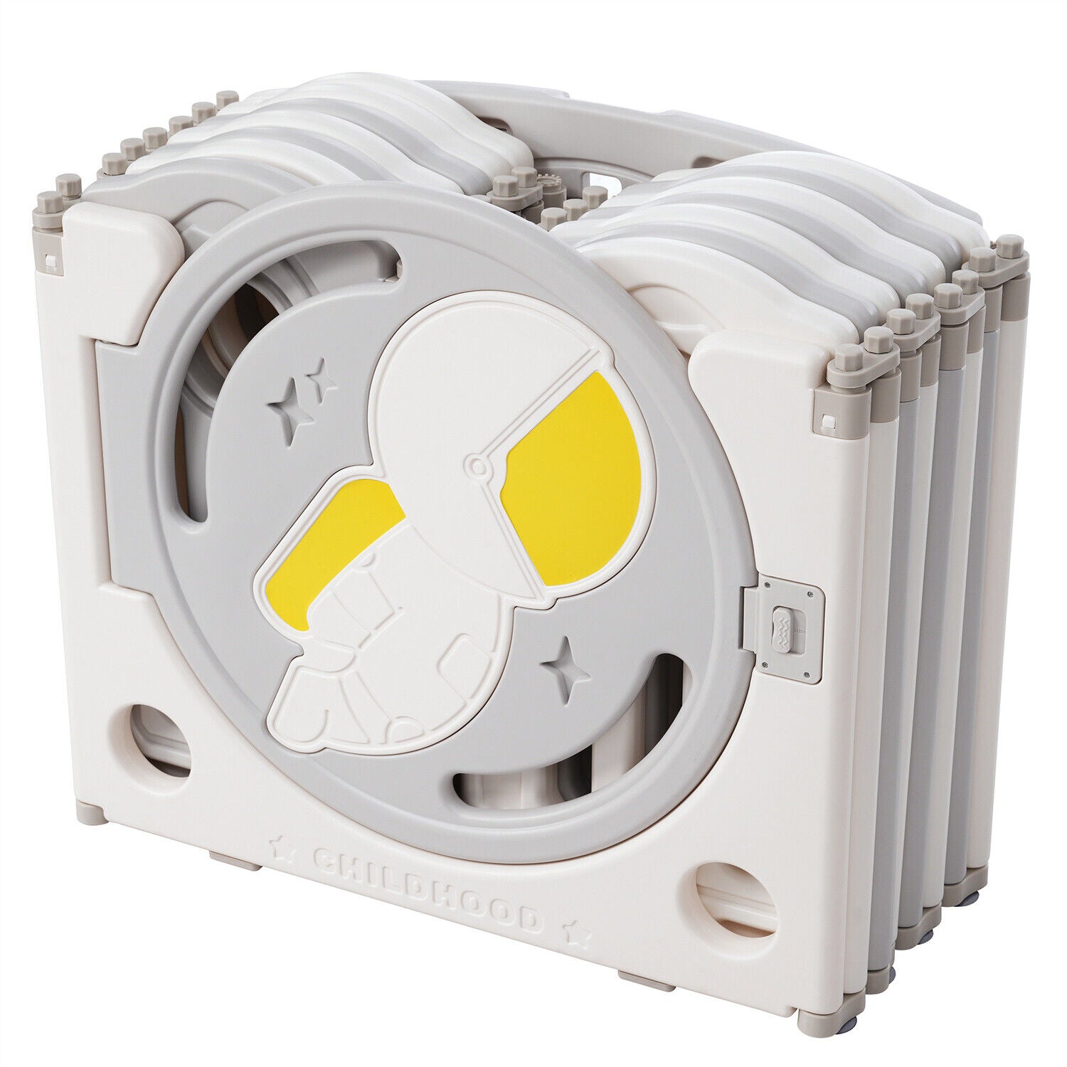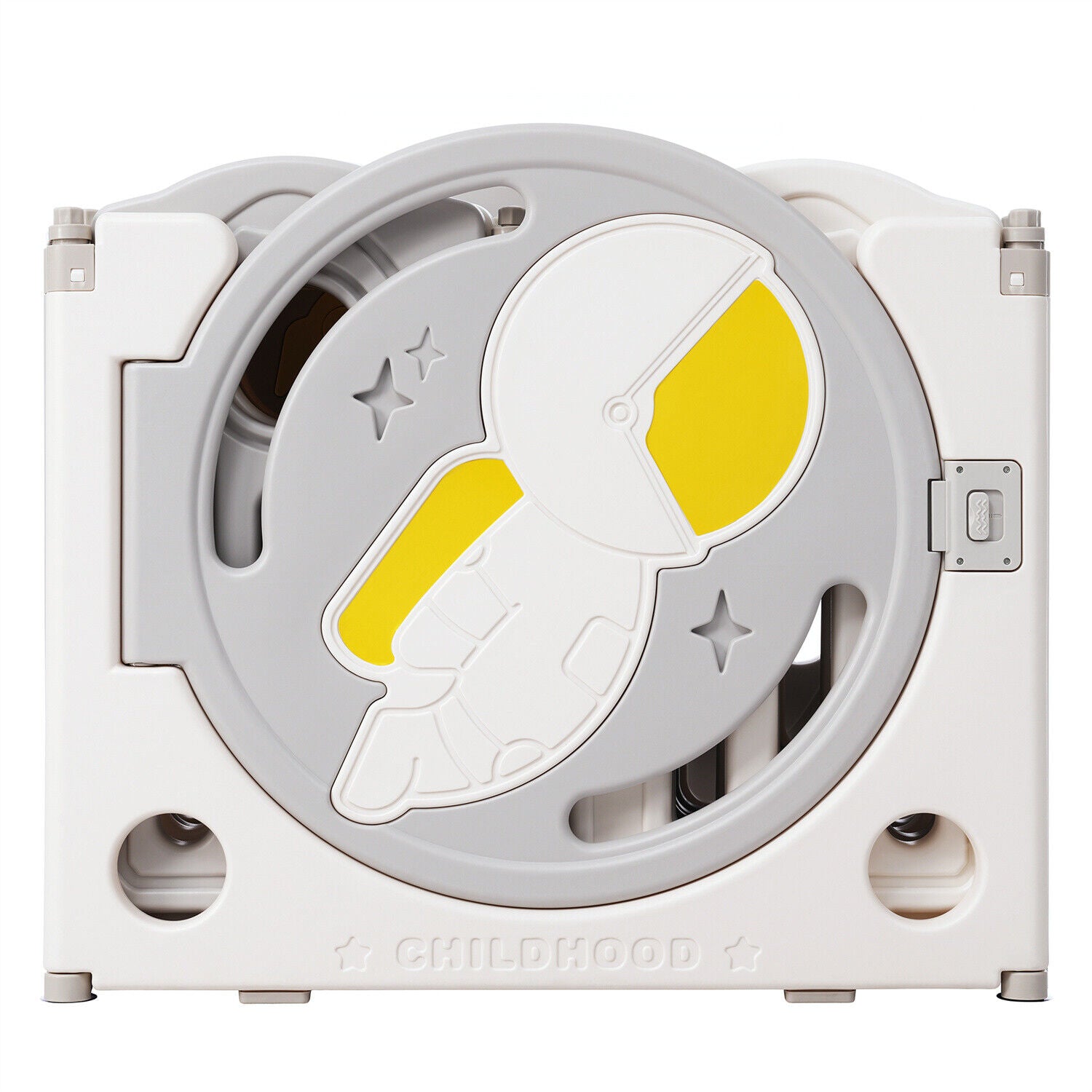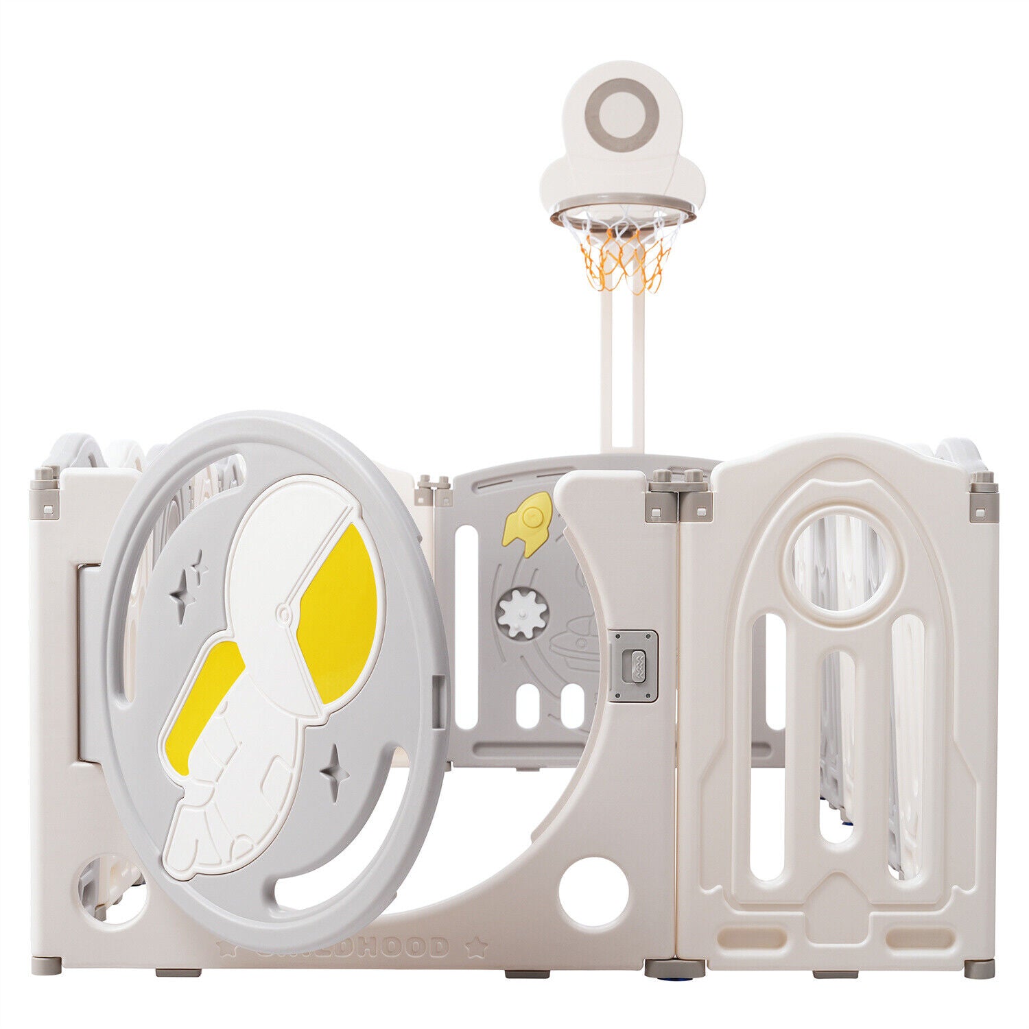 2in1 16 Panel Foldable Baby Playpen with Activity Panel and Basketball Hoop Grey