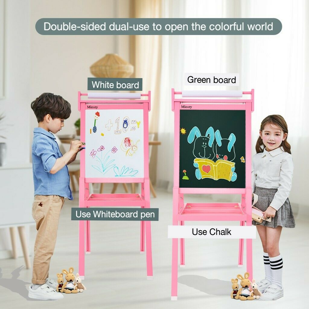 2in1 Children Kids Magnetic Wood Blackboard Whiteboard Easel Paint Drawing Board