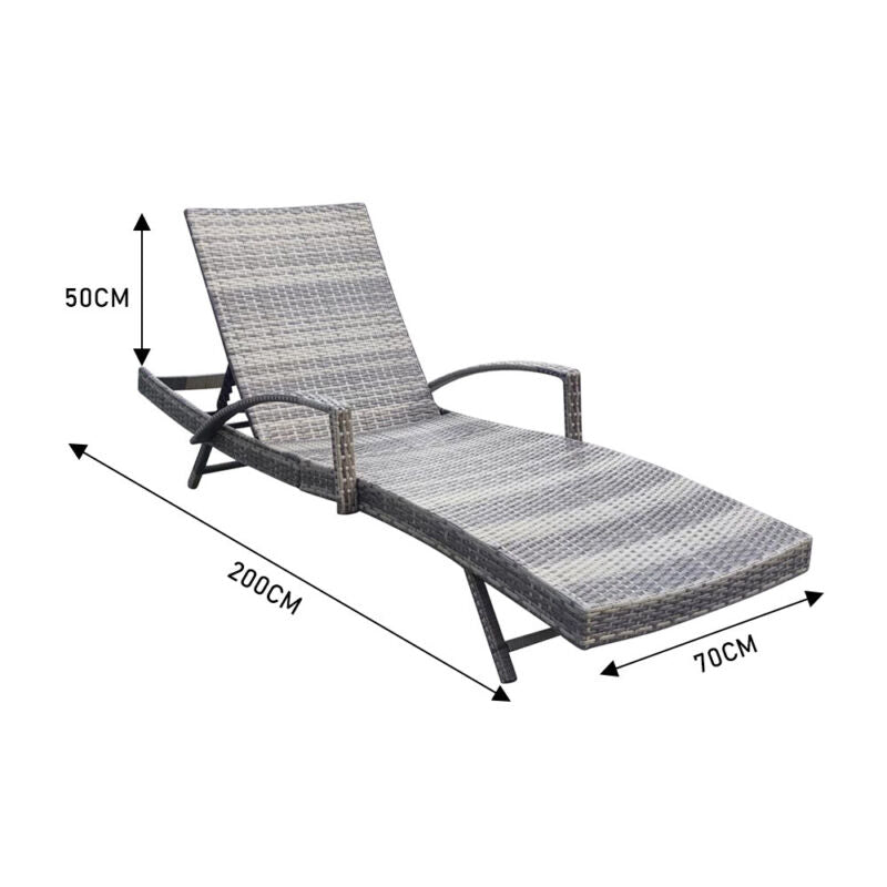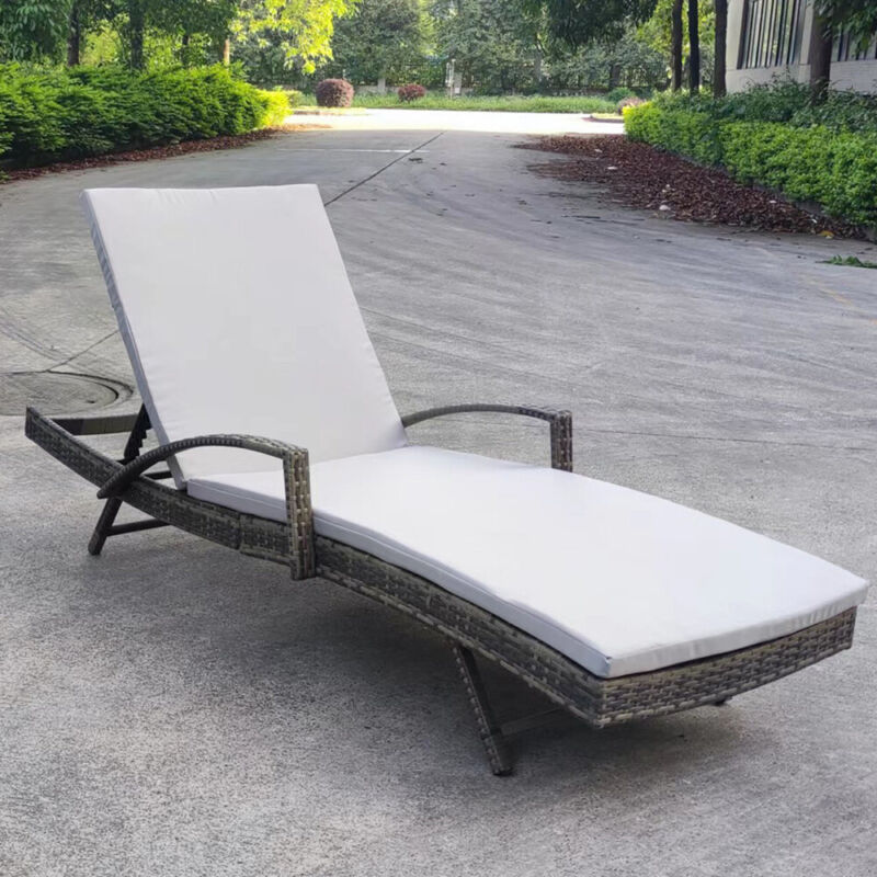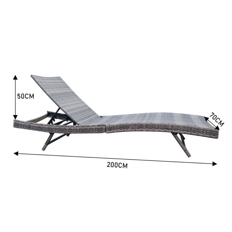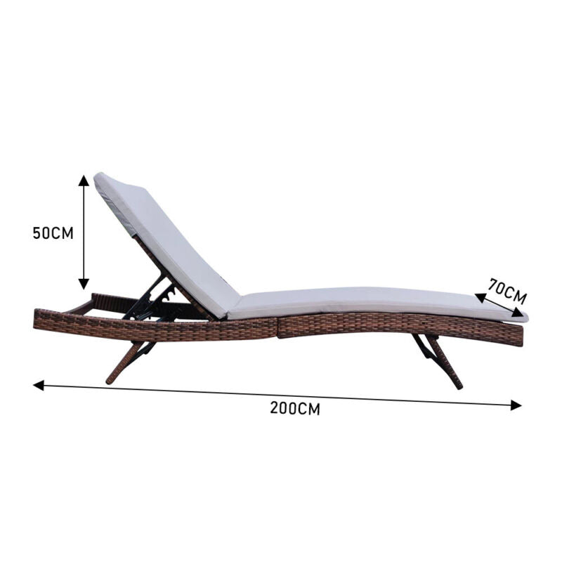 2M Backrest Adjustable Rattan Sun Lounger Recliner Chair Day Bed Chair w/Cushion