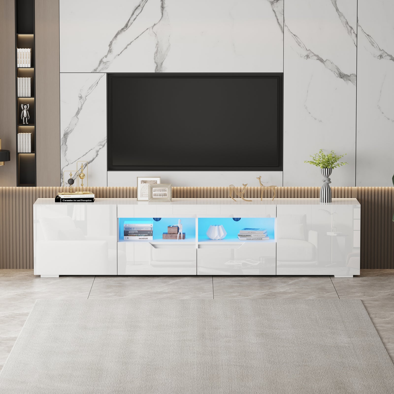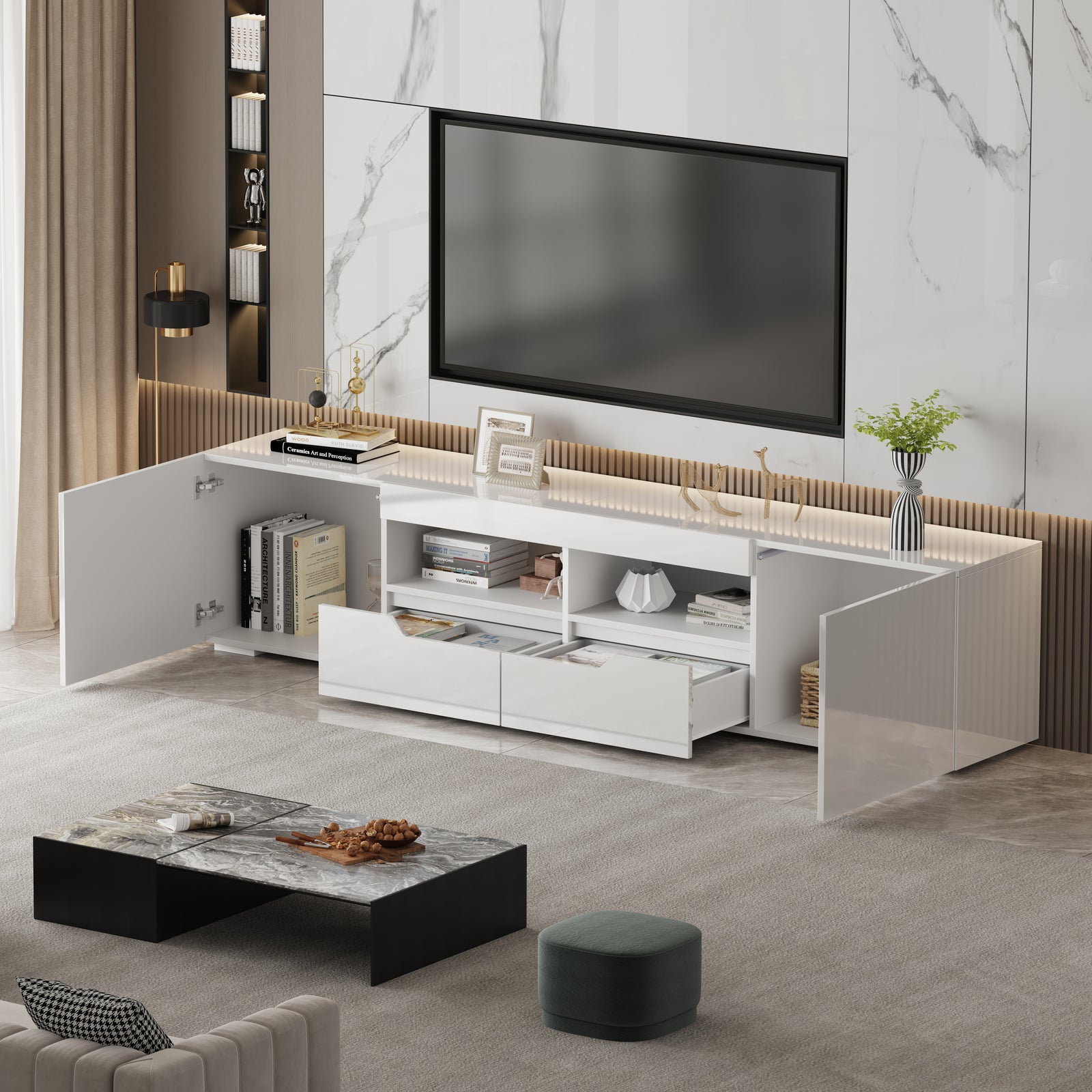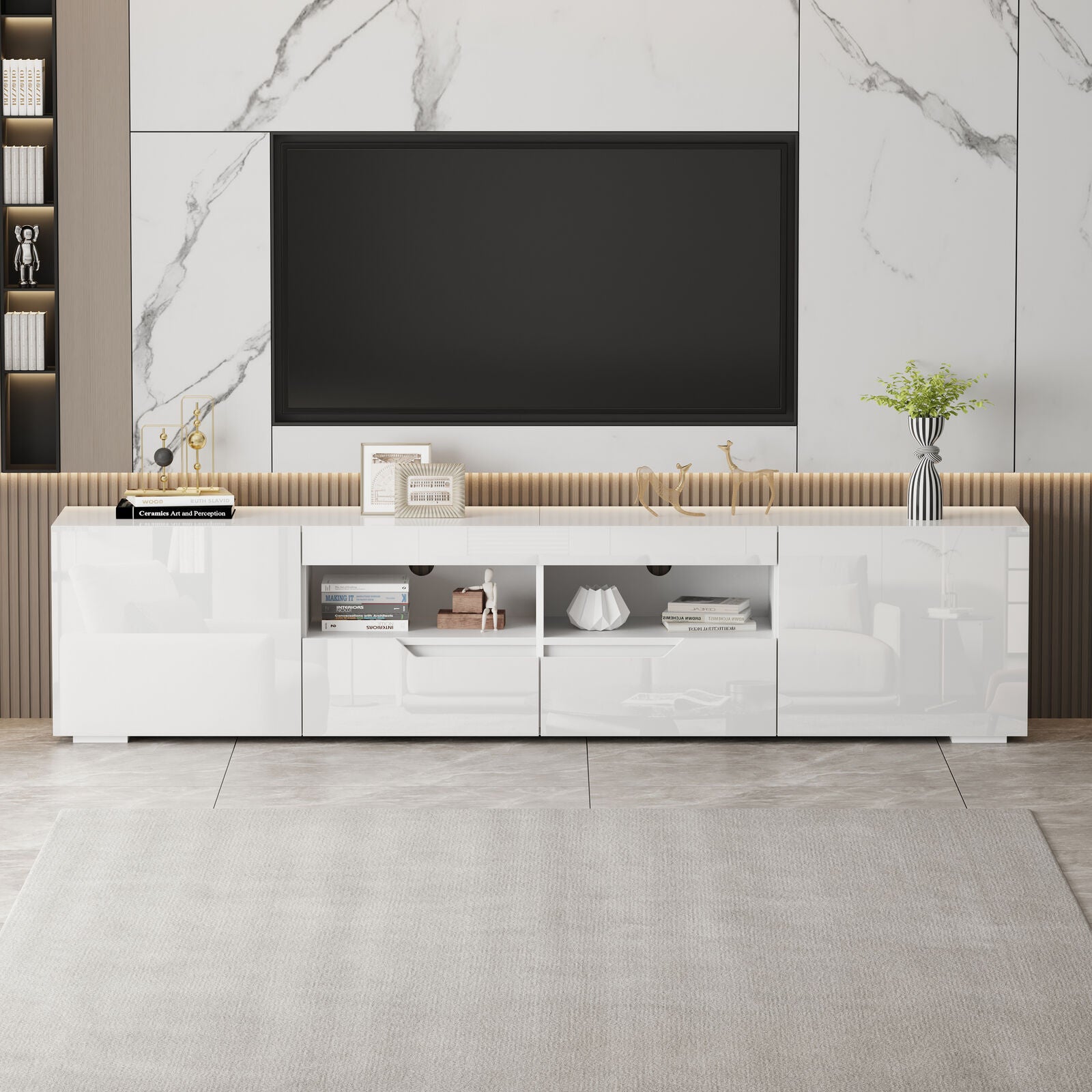 2M TV Cabinet All High Gloss TV Stand White Cabinet Unit Doors Storage with LED