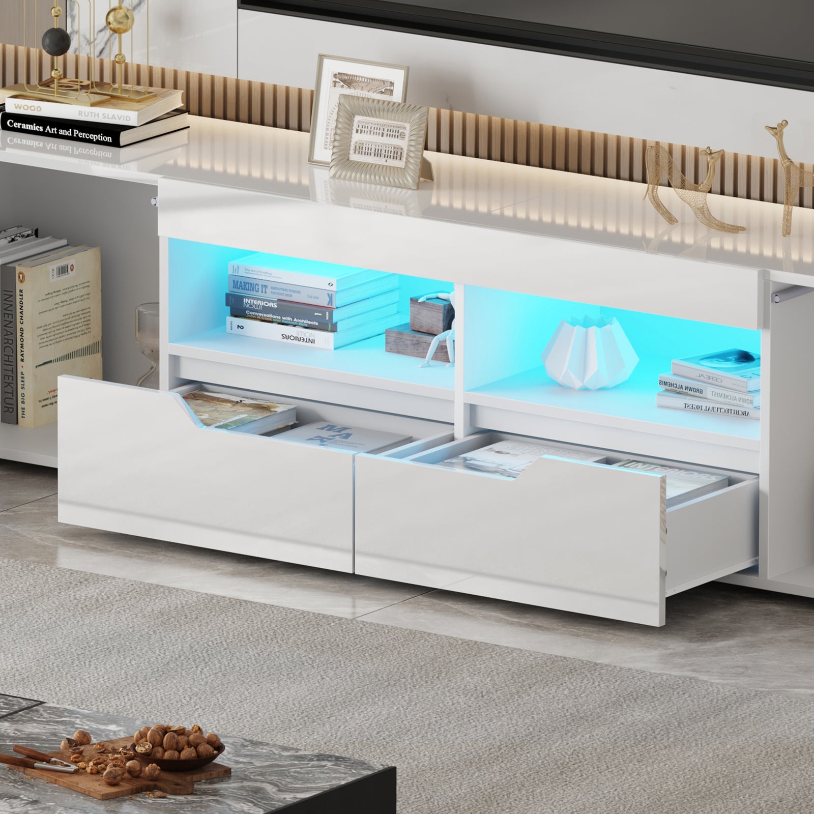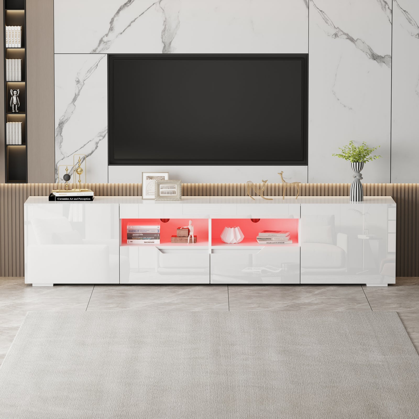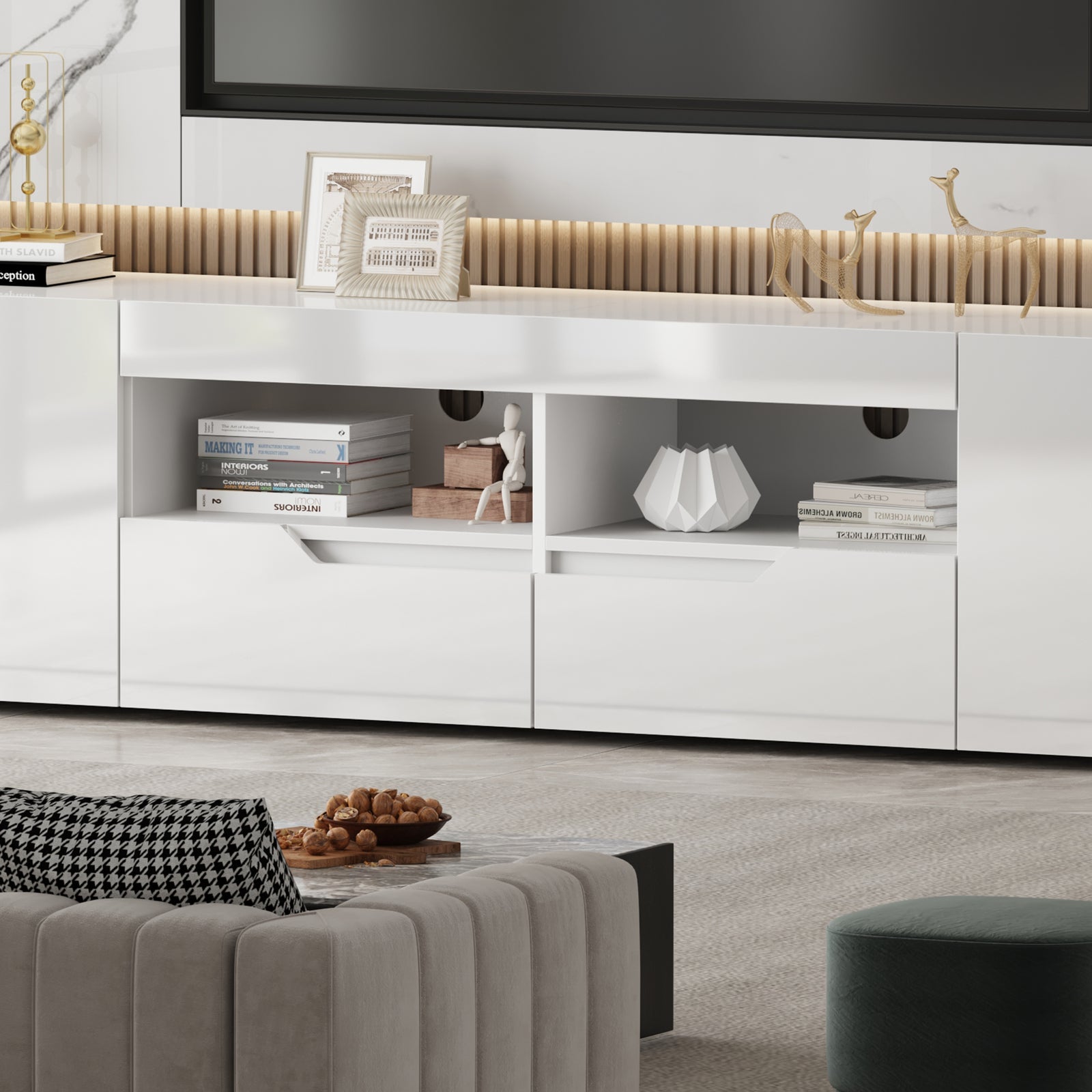 2M TV Cabinet All High Gloss TV Stand White Cabinet Unit Doors Storage with LED