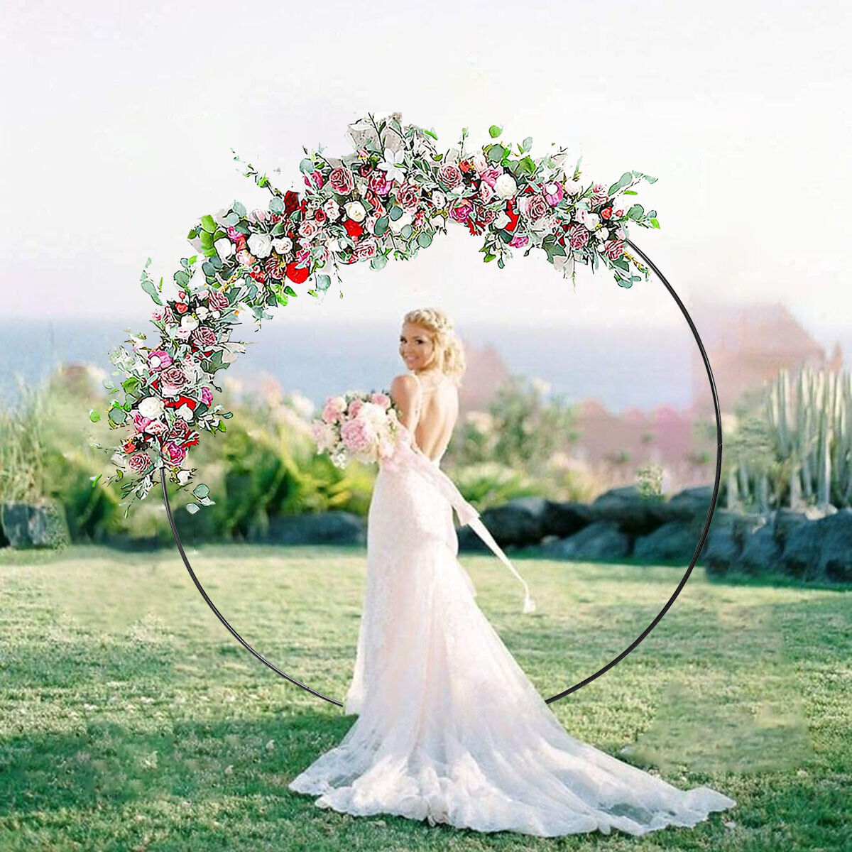 2M Wedding Balloon Arch Round Hoop Backdrop Flower Display Stand Frame Black
