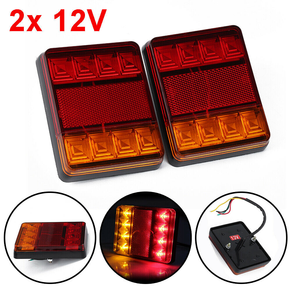 2pc 12v 8led Carvan Van Truck Lorry Trailer Rear Tail Stop Lights Indicator Lamp