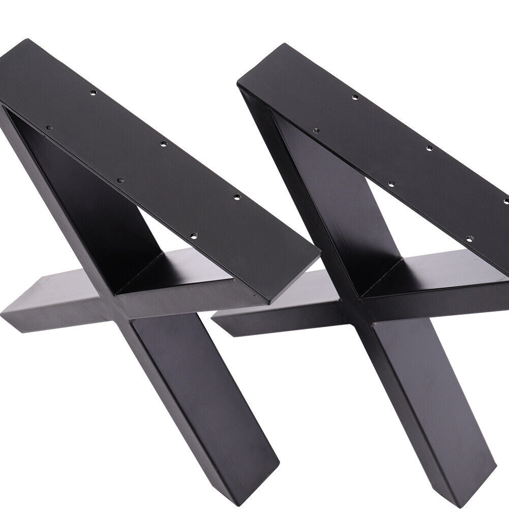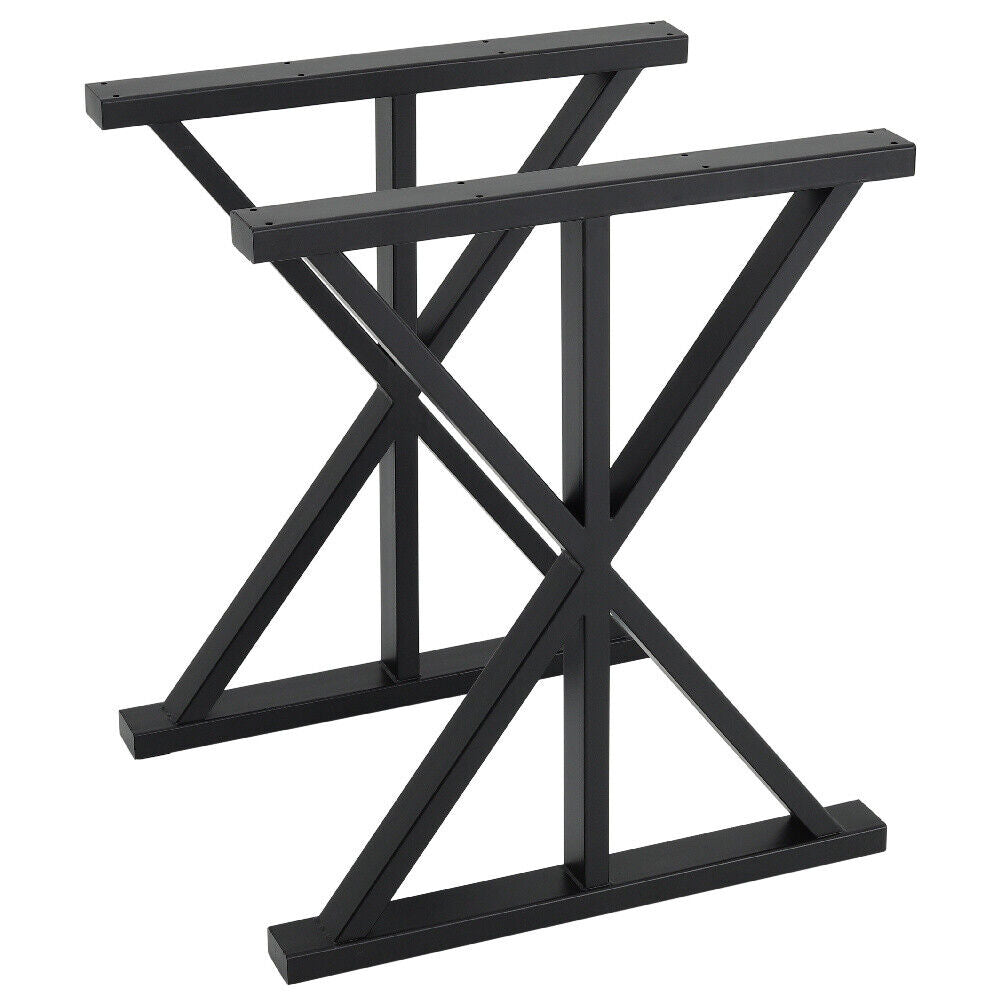 2Pc Black Industrial Metal Steel Door X Shape Table Legs Dining Desk Bench Frame