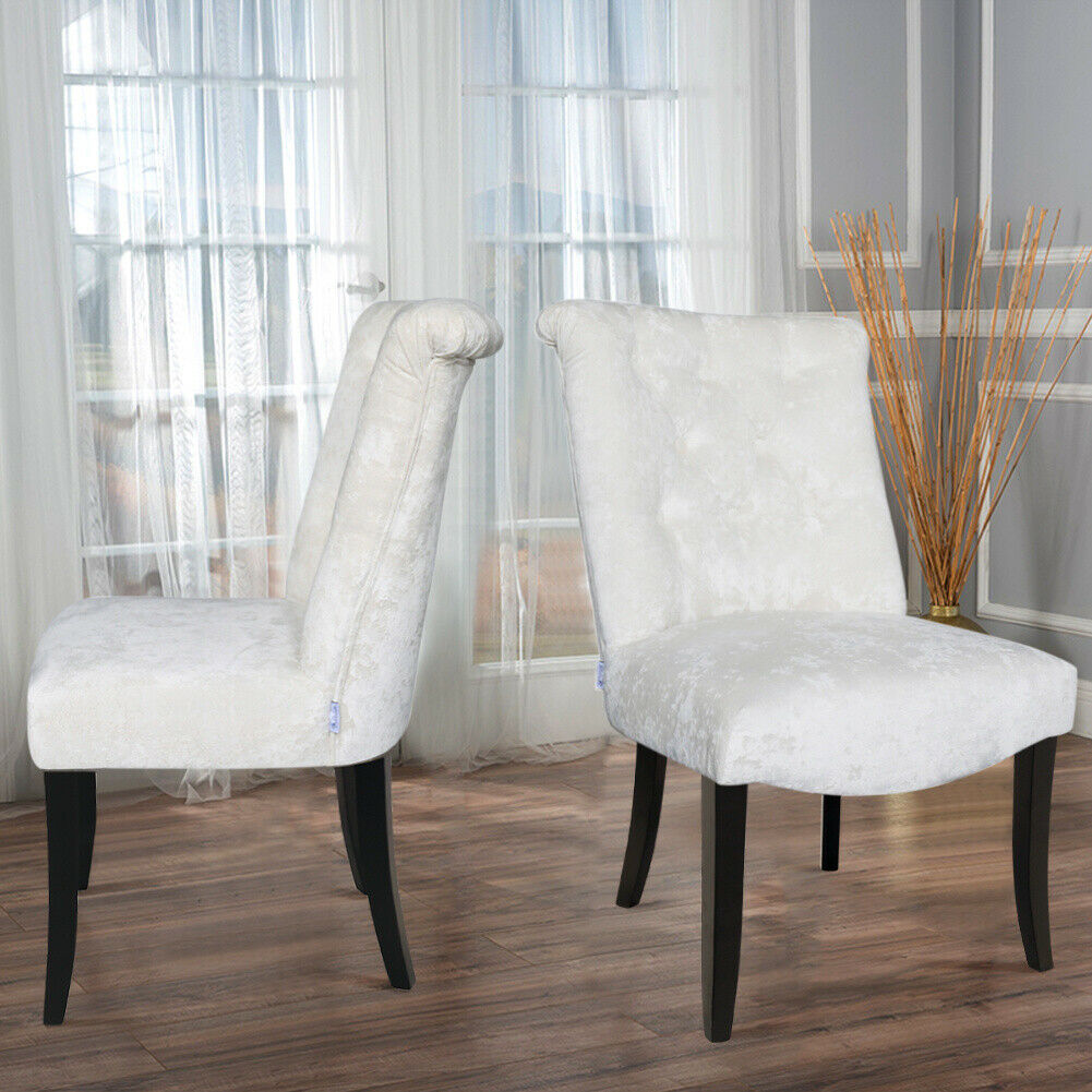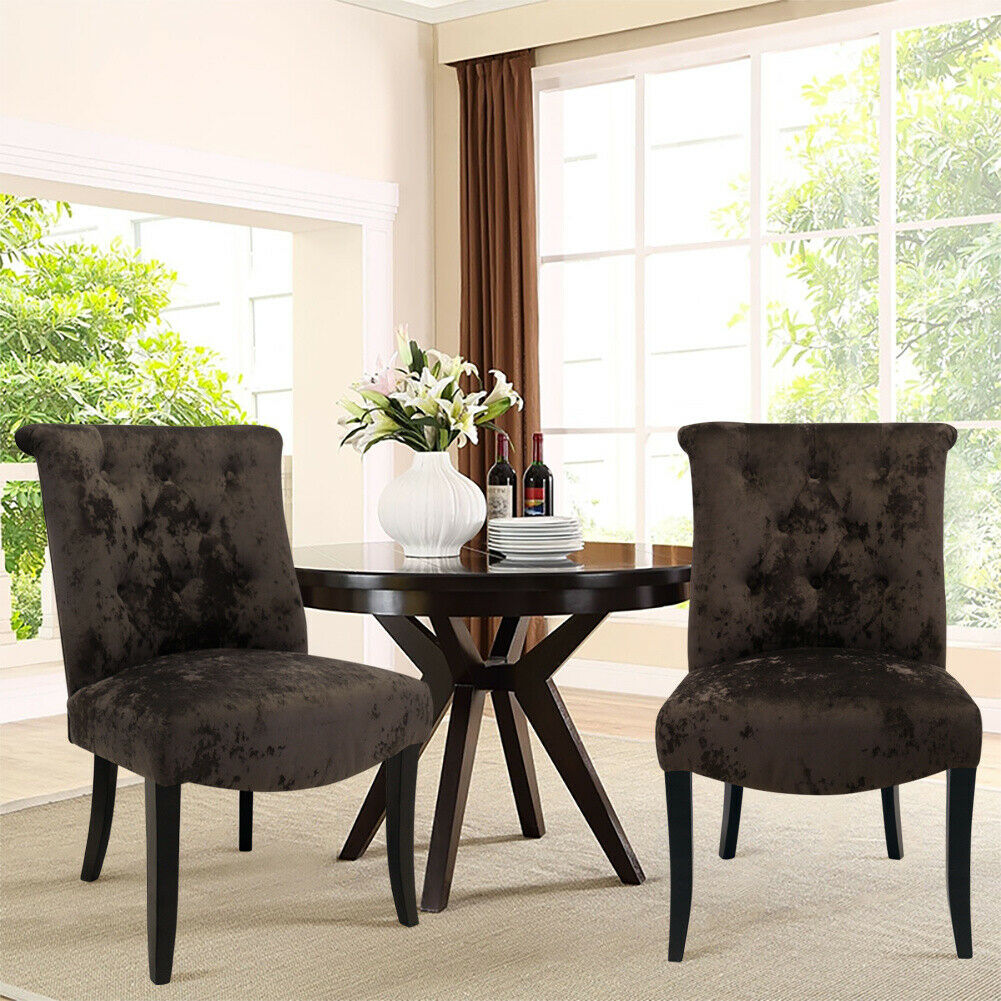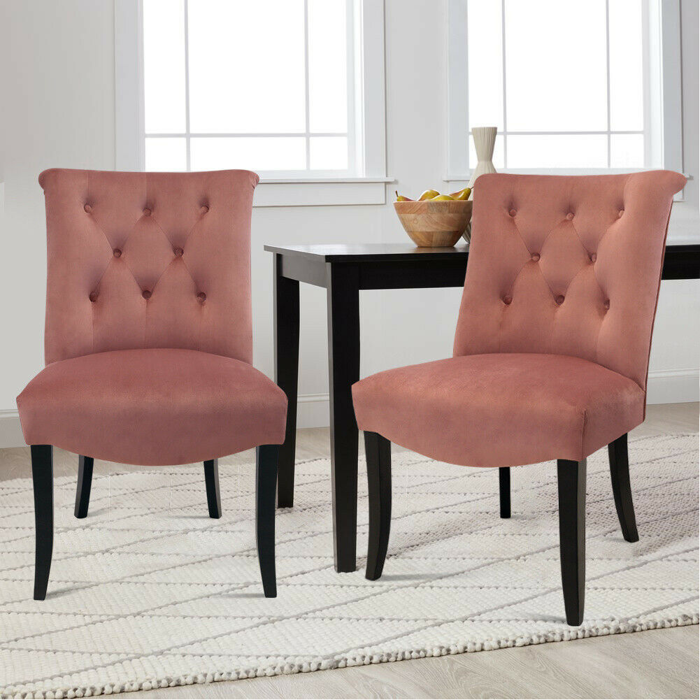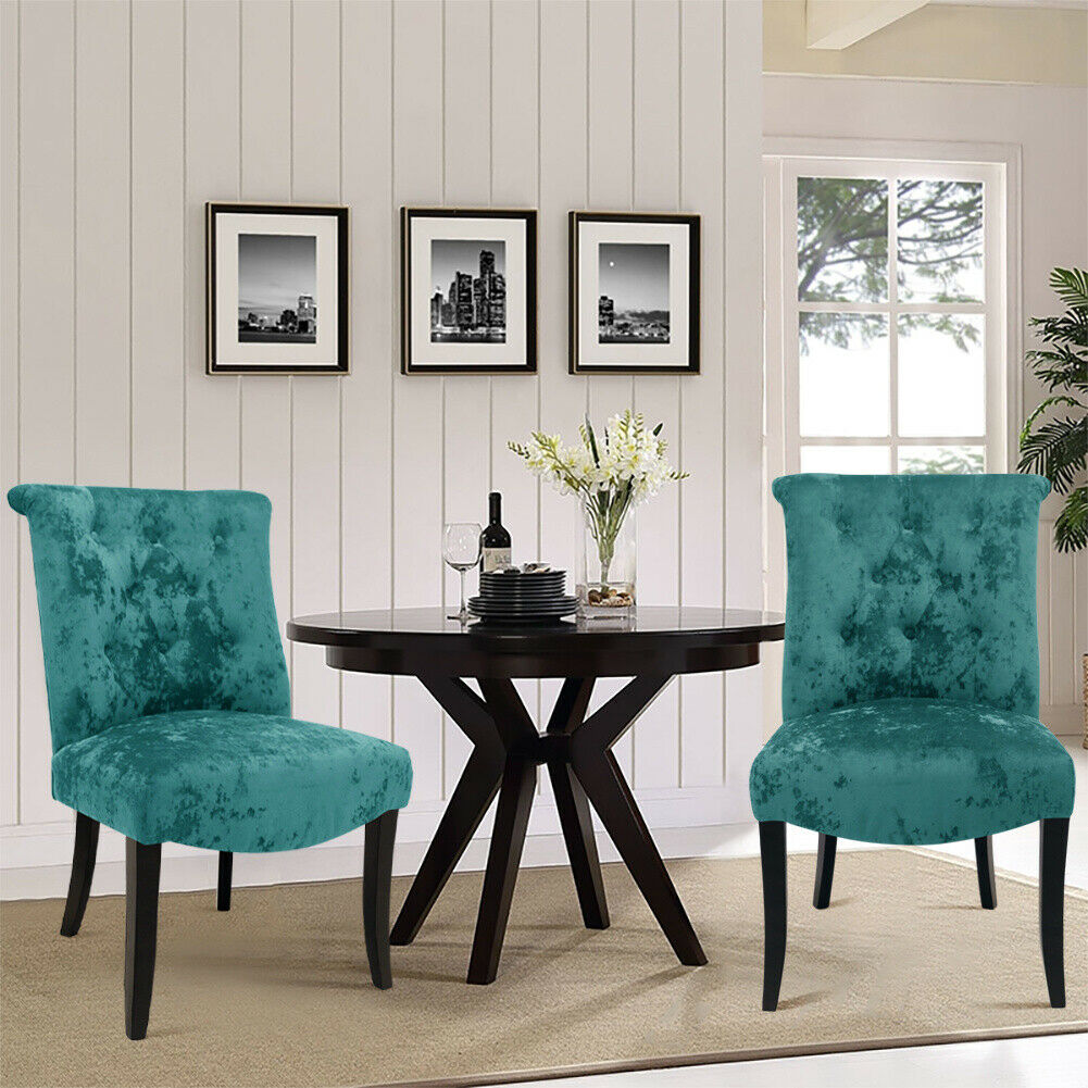 2pc Dining Chairs Velvet Padded Seat Button High Back Kitchen Lounge Restaurant