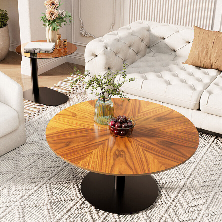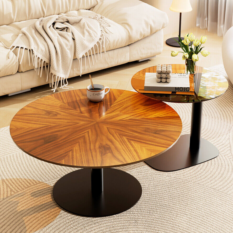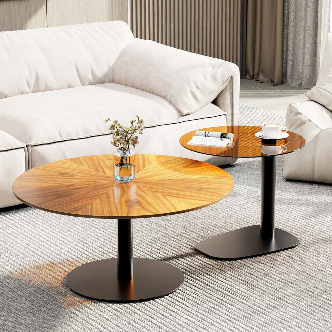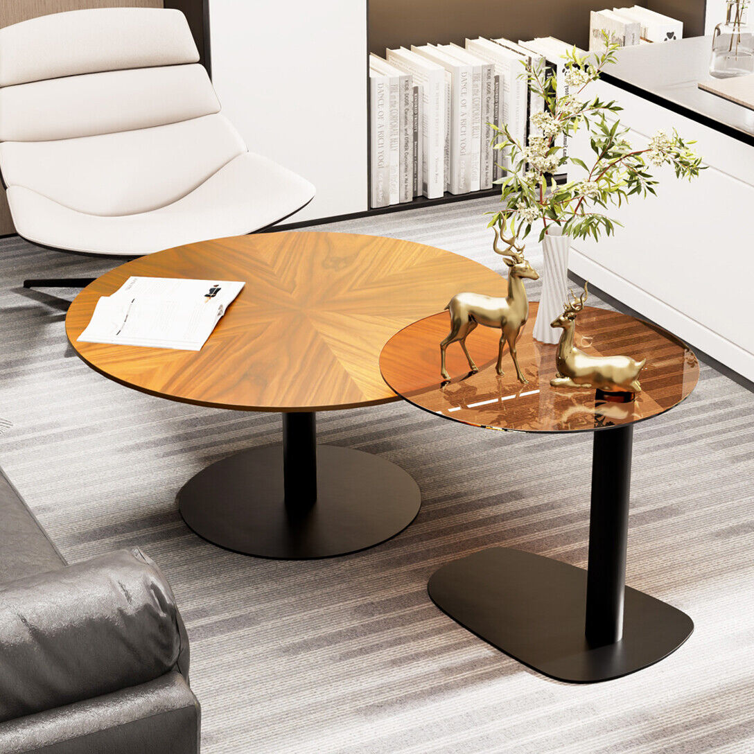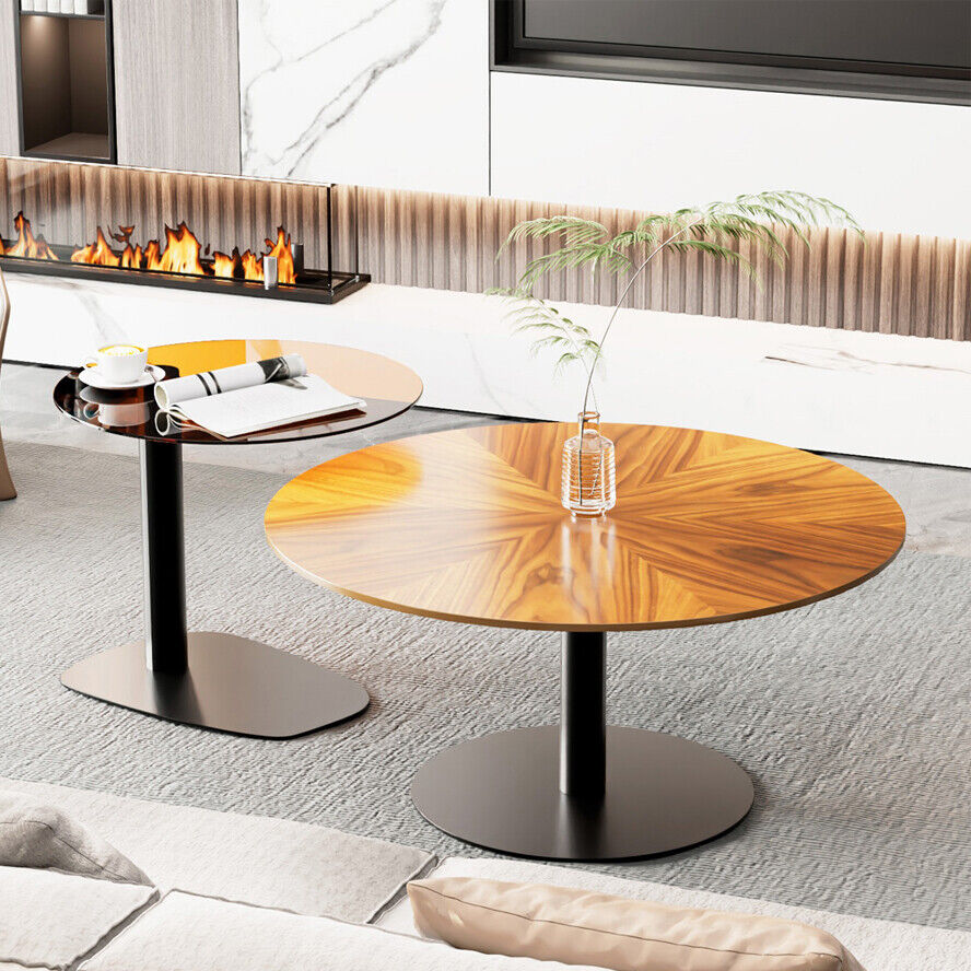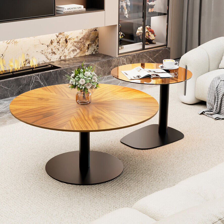 2pc Exquisite Round Coffee Table Set Heavy Duty Accent Nesting Table Metal Frame