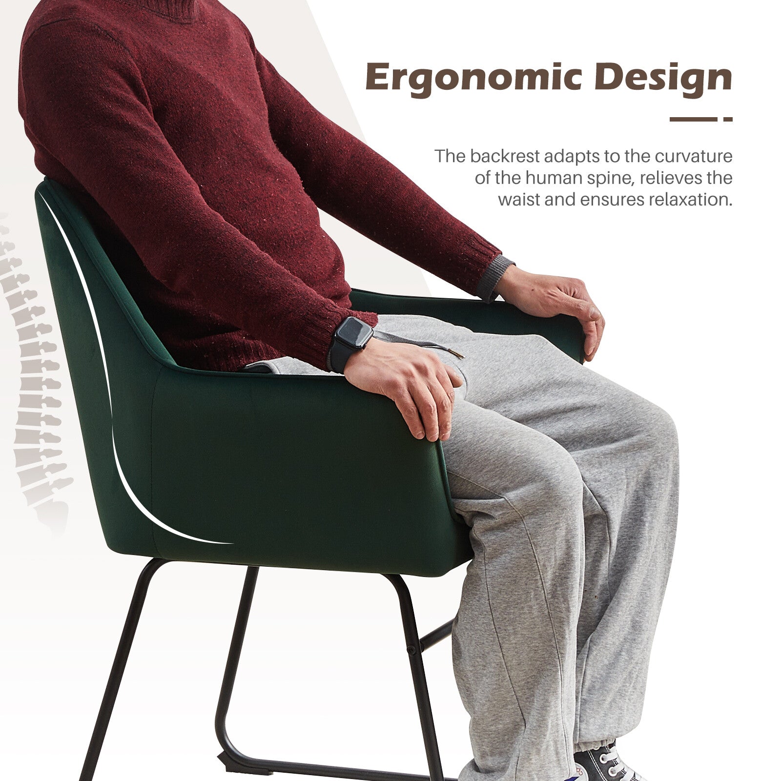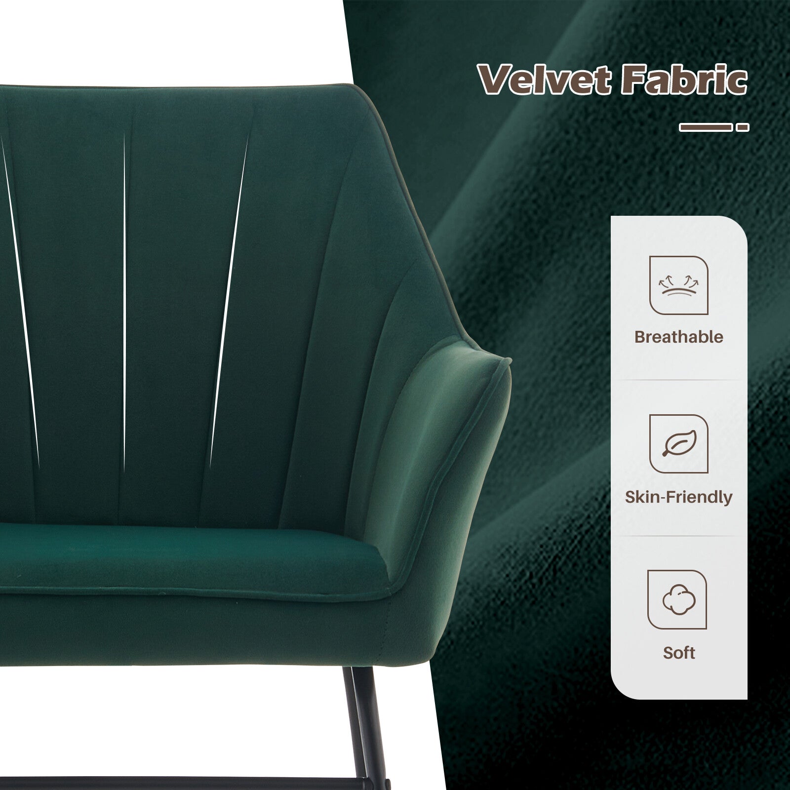 2PC Green Dining Chair Velvet Padded Seat Dining Room Kitchen Chair Modern