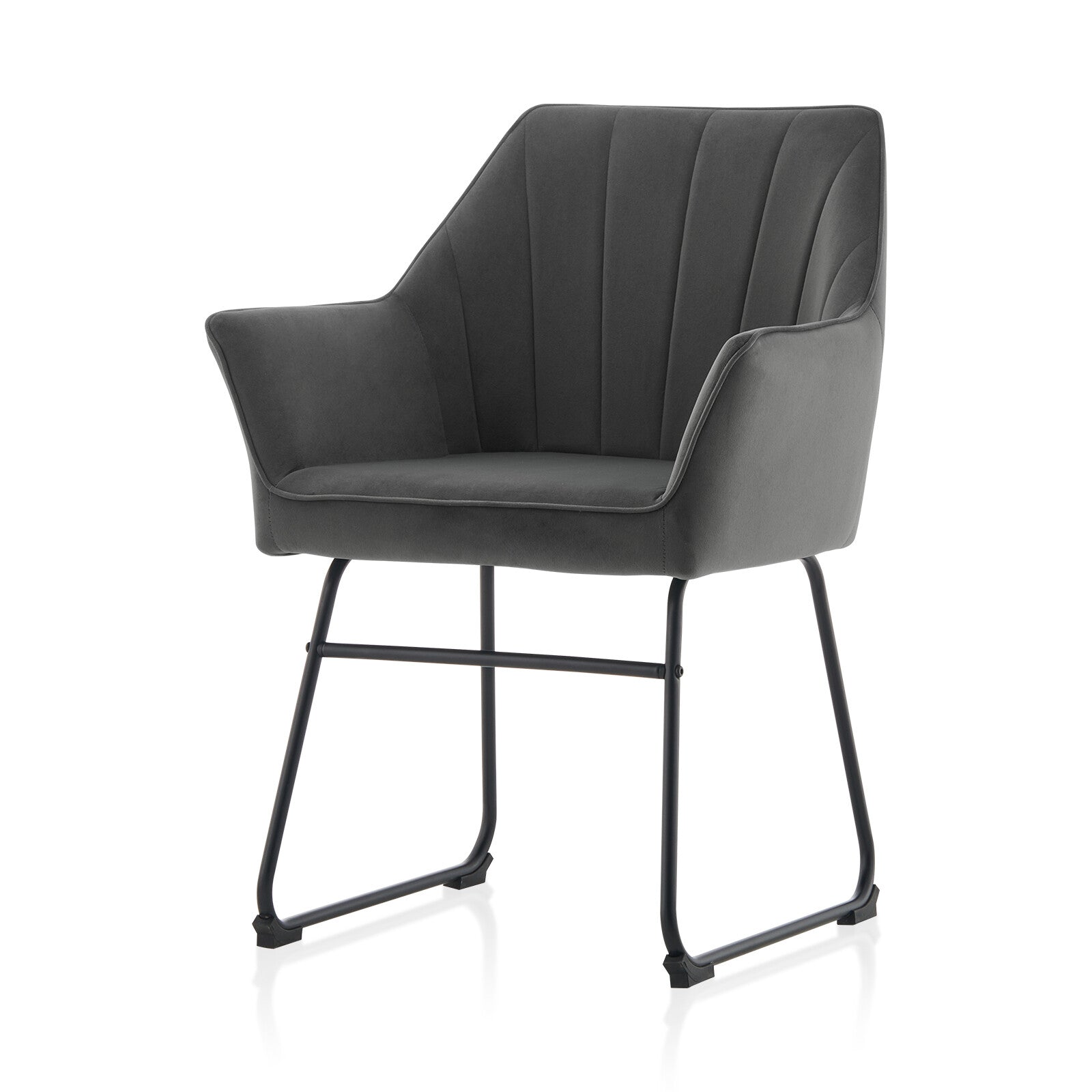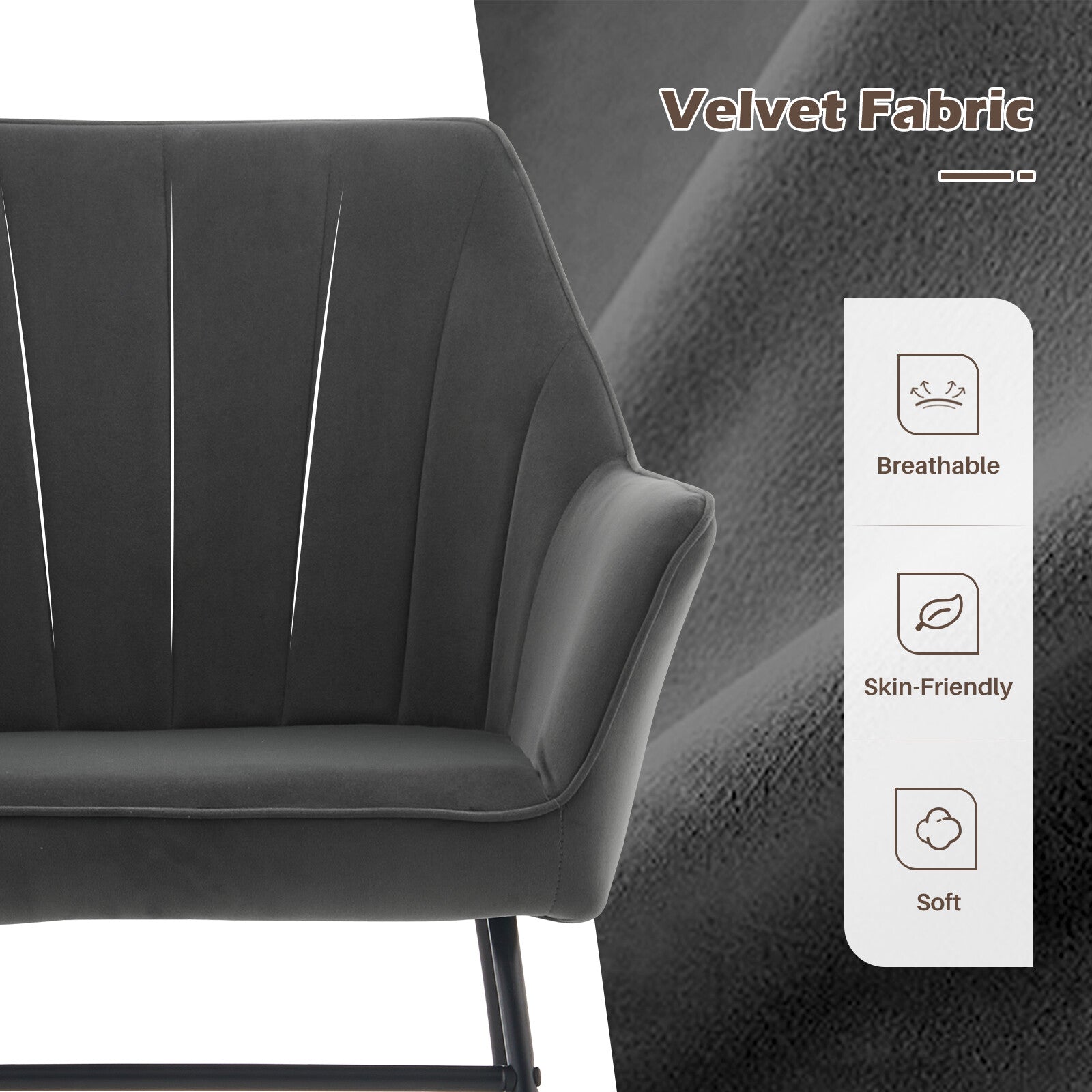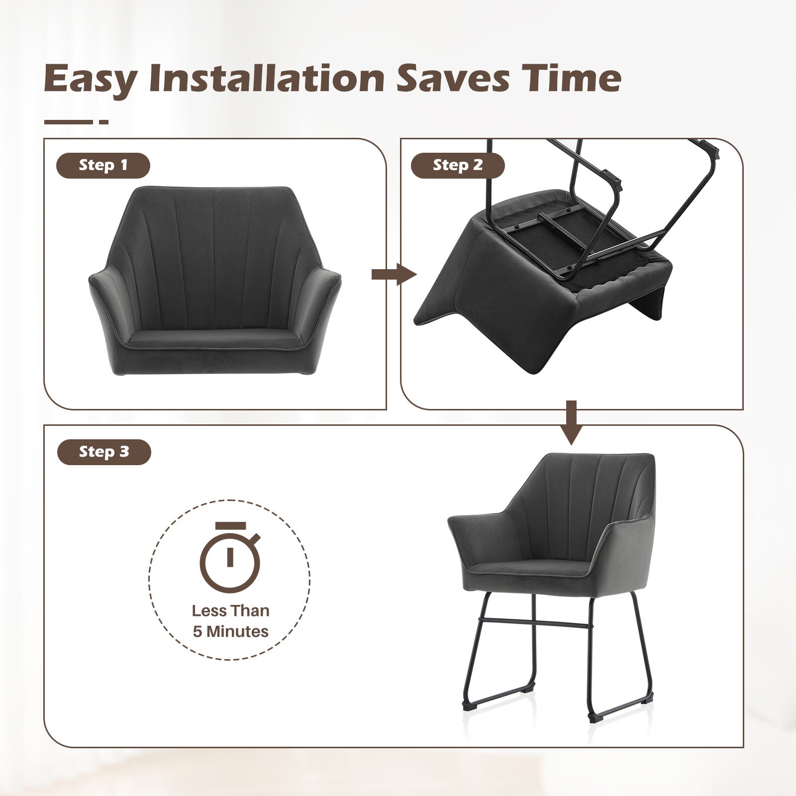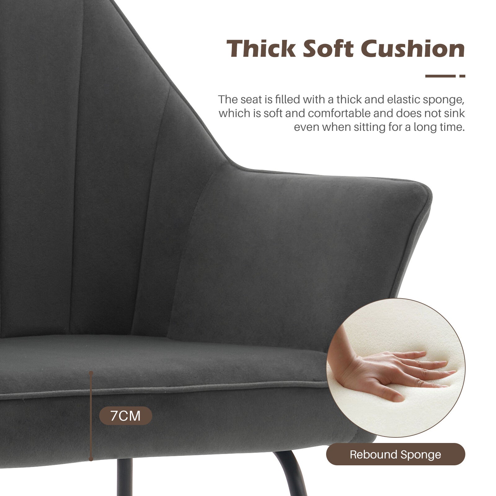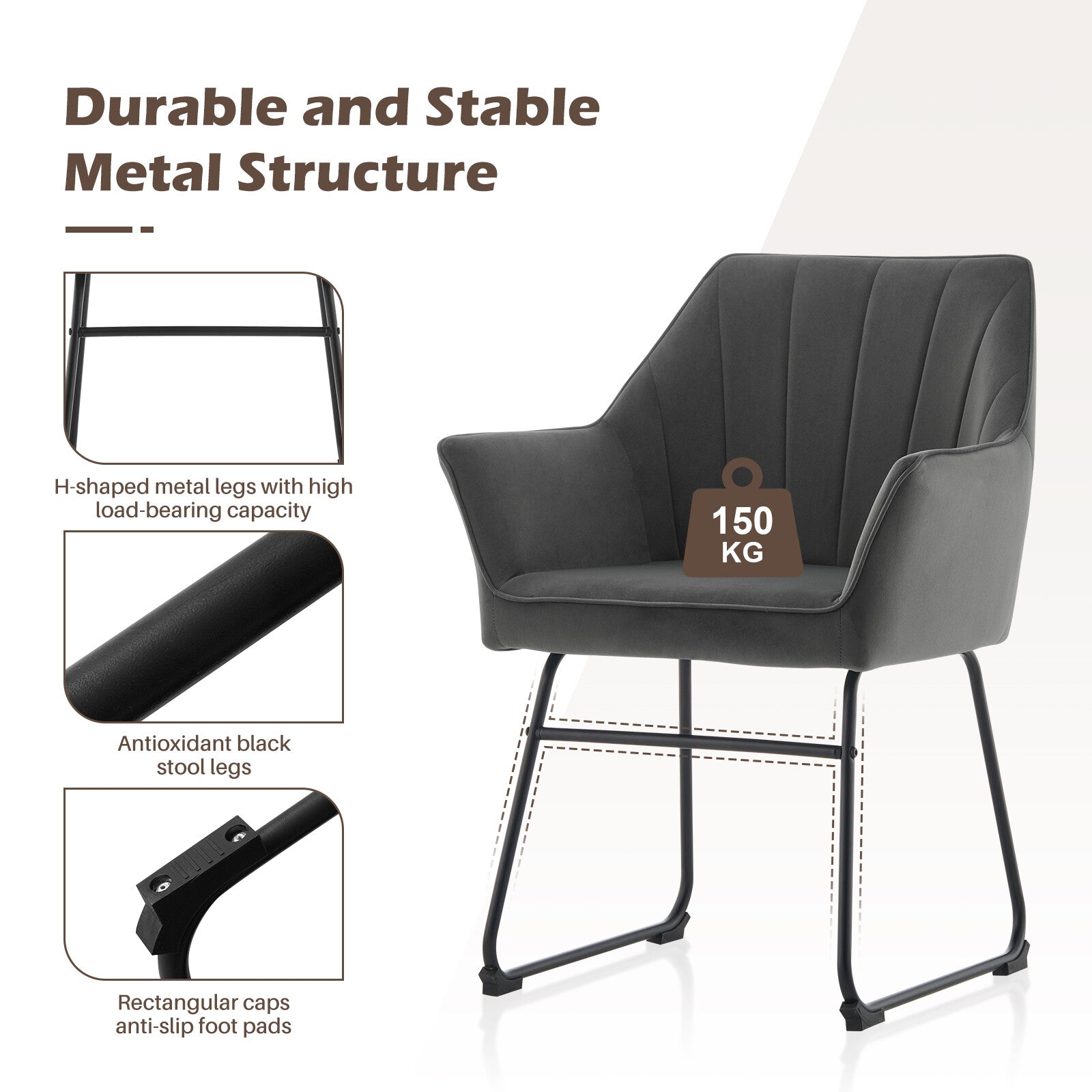 2PC Grey Dining Chair Velvet Padded Seat Dining Room Kitchen Chair Modern