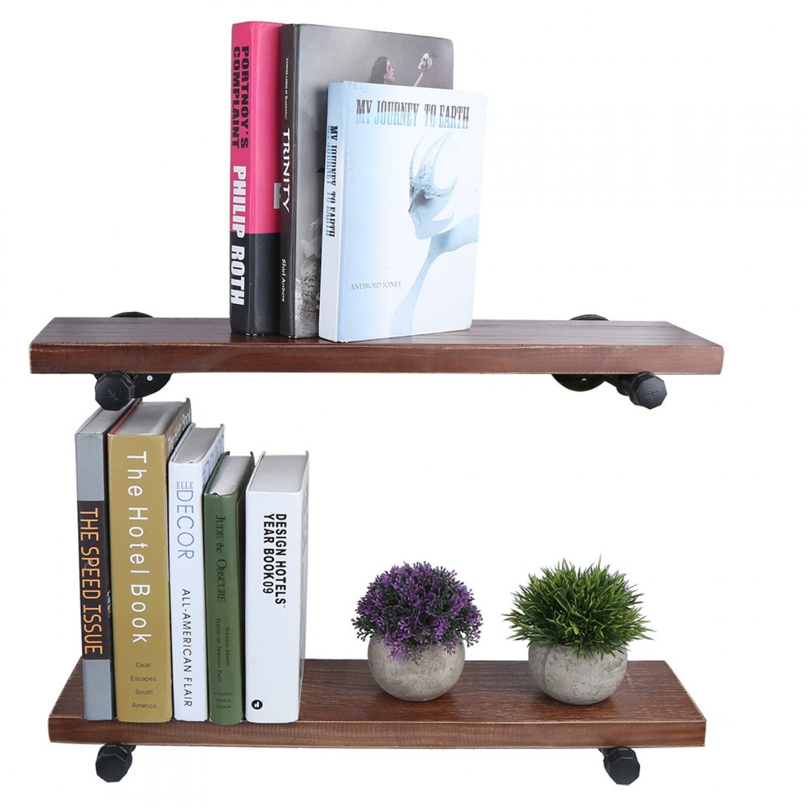2pc Industrial Iron Pipe Shelf Wall Mounted Storage Display Floating Bookcase UK