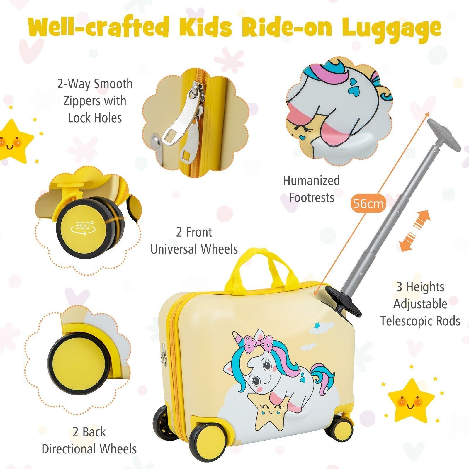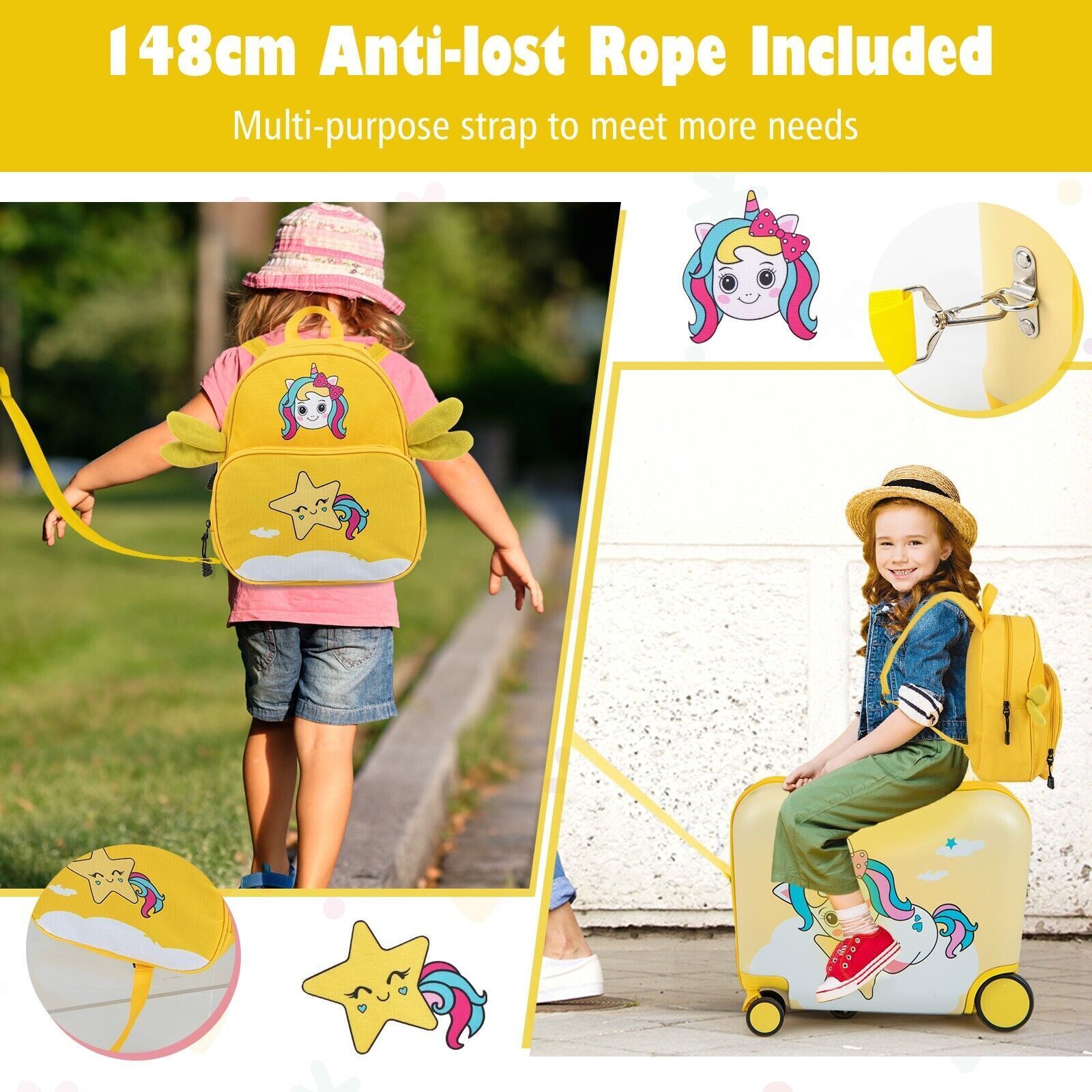 2PC Kids Luggage Set 18”Ride-on&Carry-on Hardshell Suitcase 12”Backpack Yellow