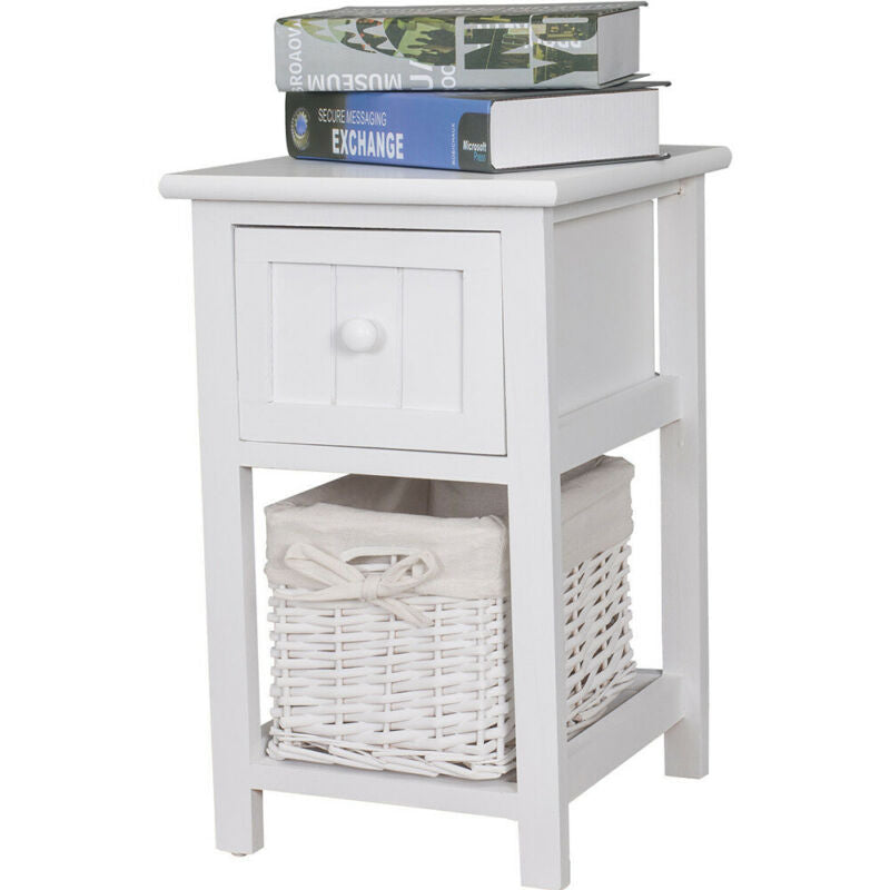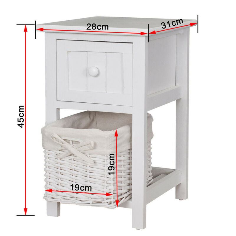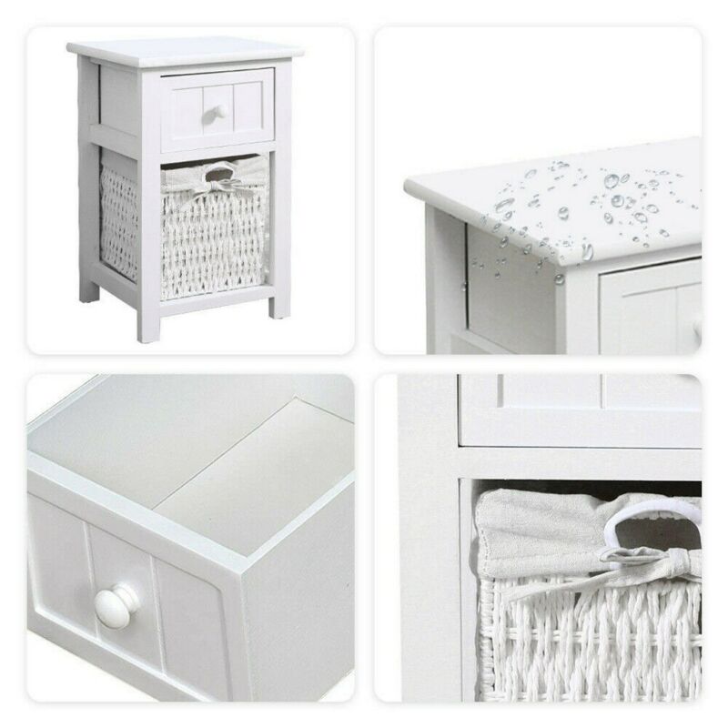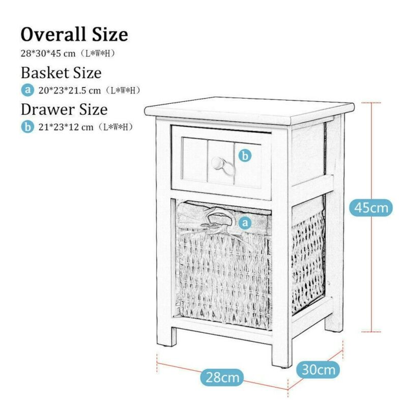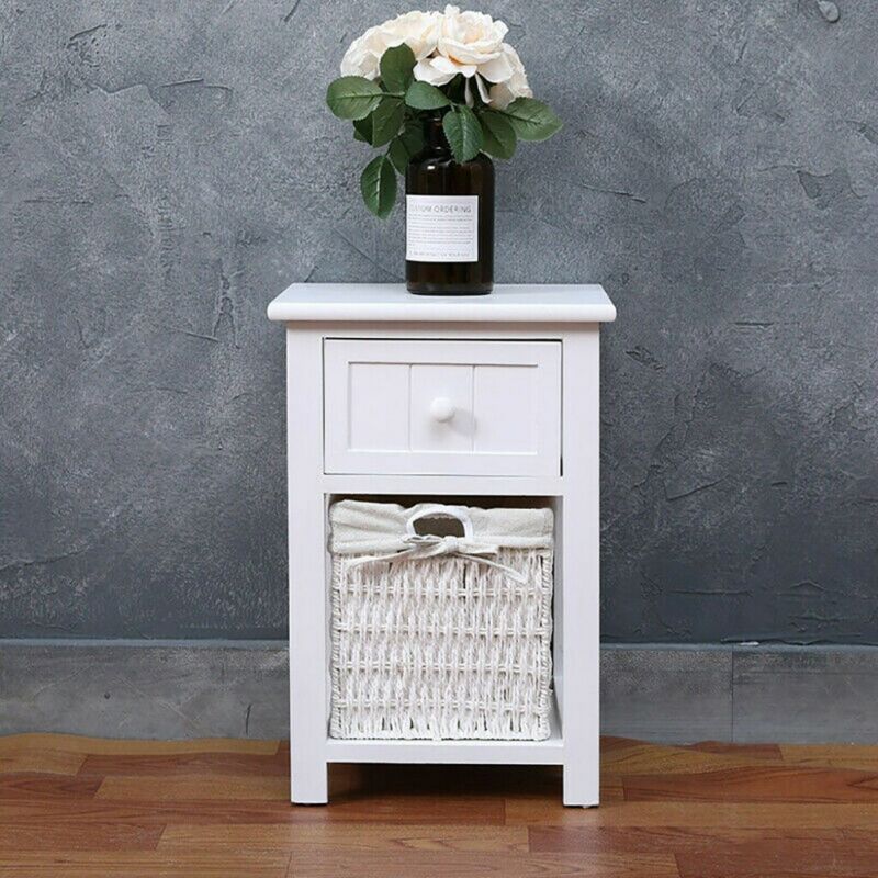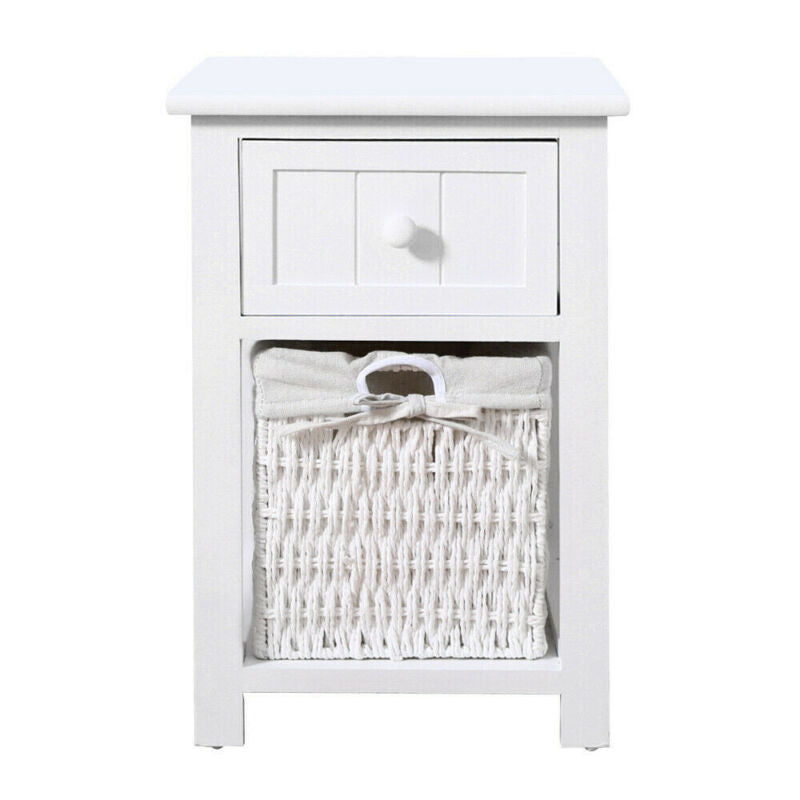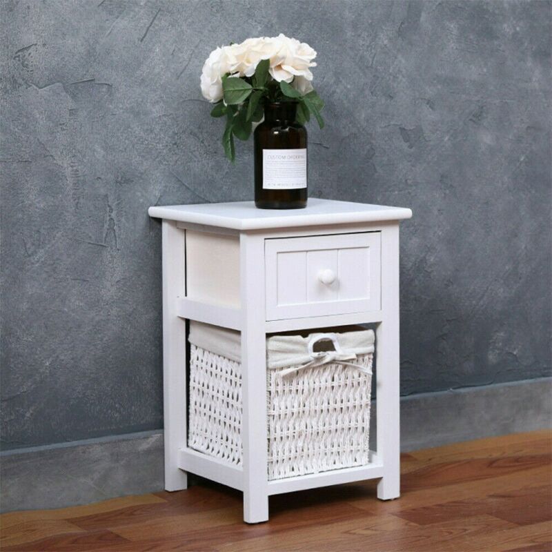 2PC Modern Bedside Tables Night Stand Cabinet Storage Drawer Wicker Basket Stand
