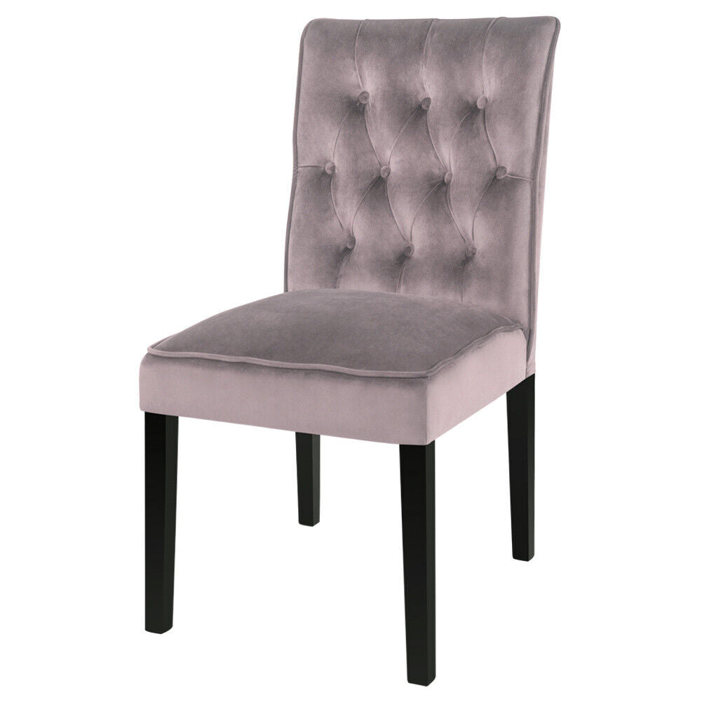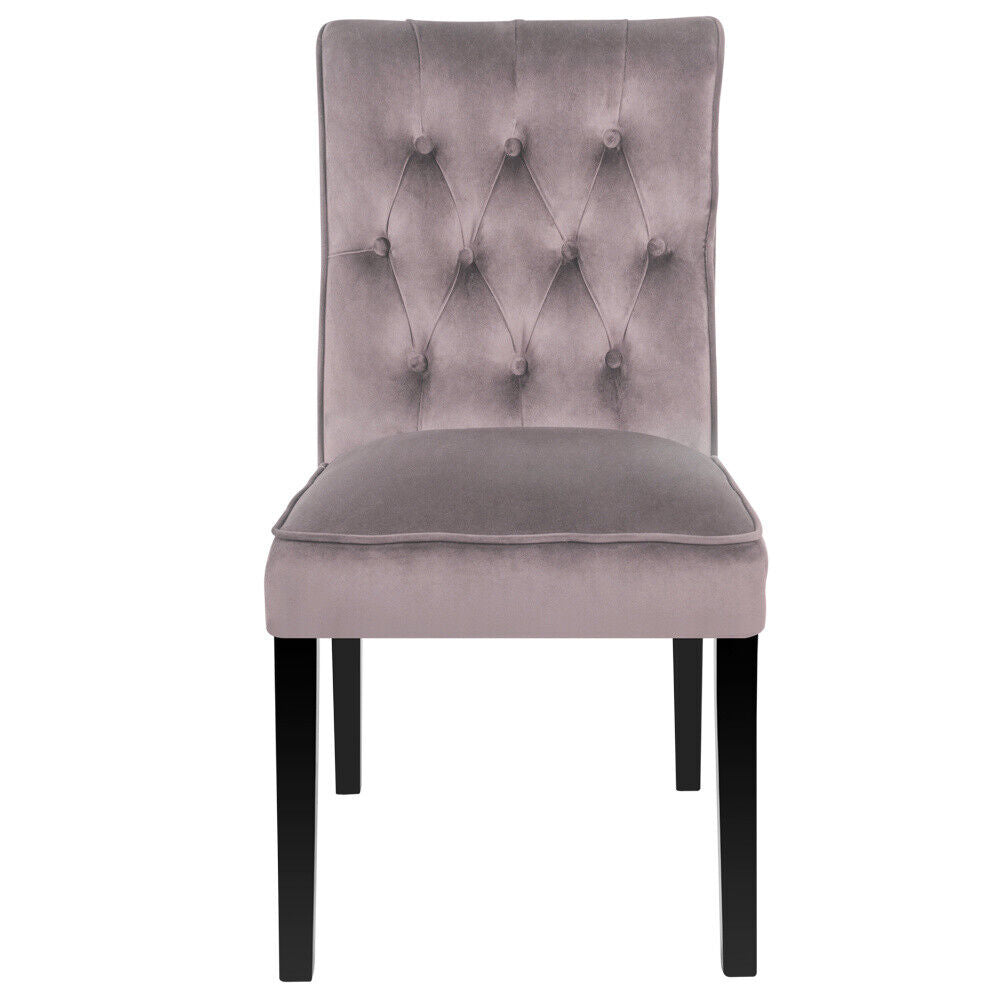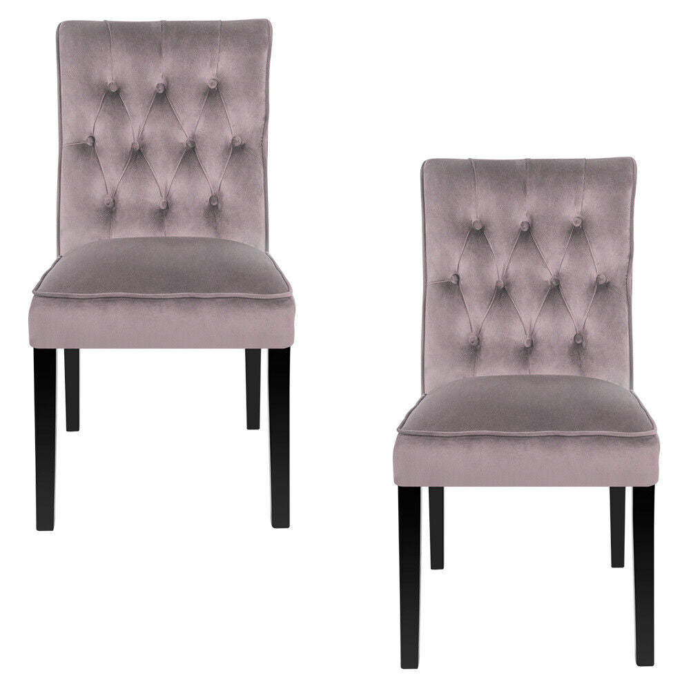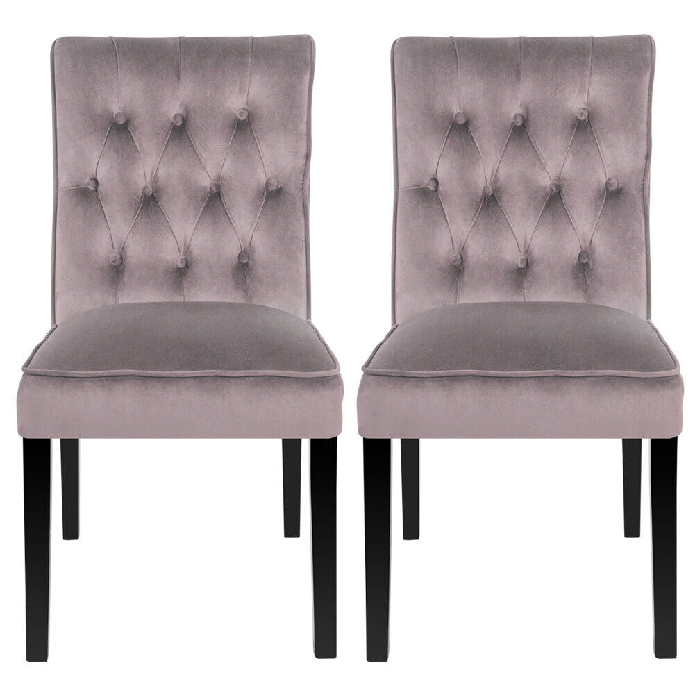 2pc Velvet Dining Chairs Padded Seat Retro Button Black Wooden Legs Home Kitchen