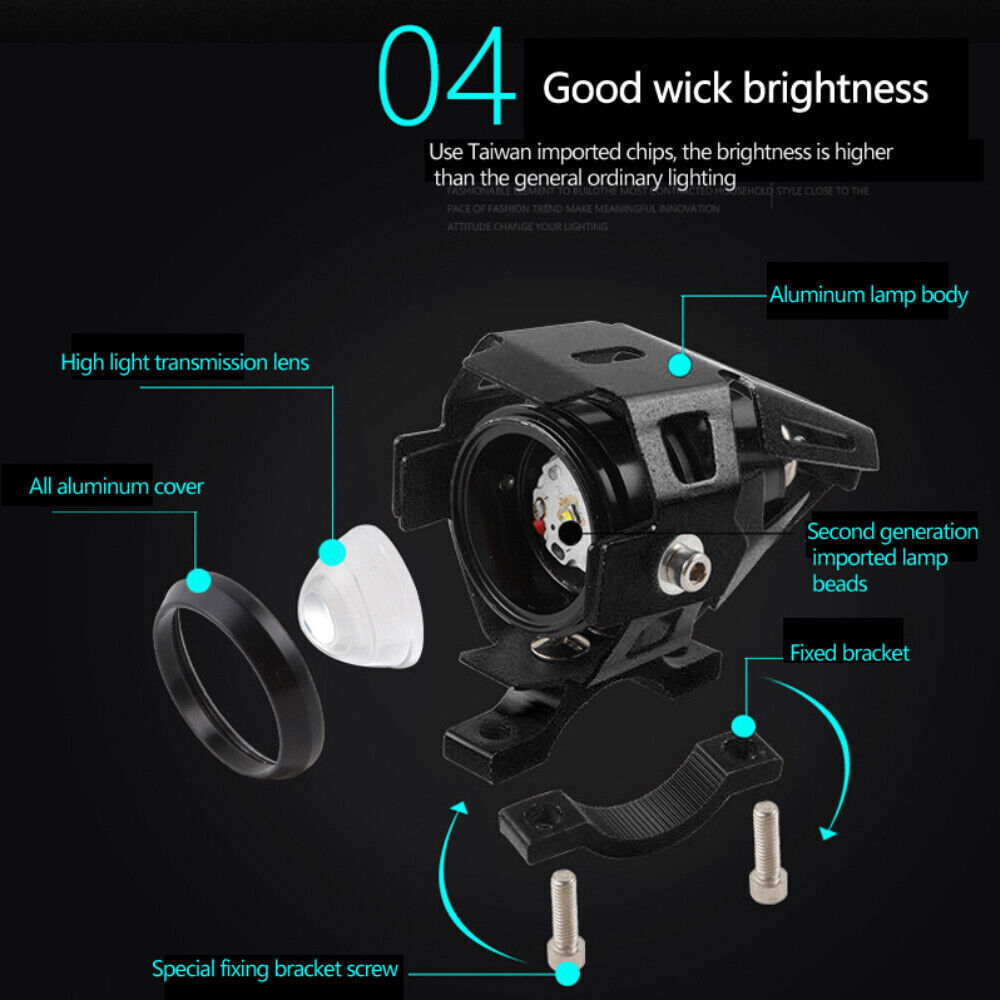 2pcs 12W Motorcycle Motorbike Headlight LED Fog Spot Lights Bulb Angle Eye Lamp