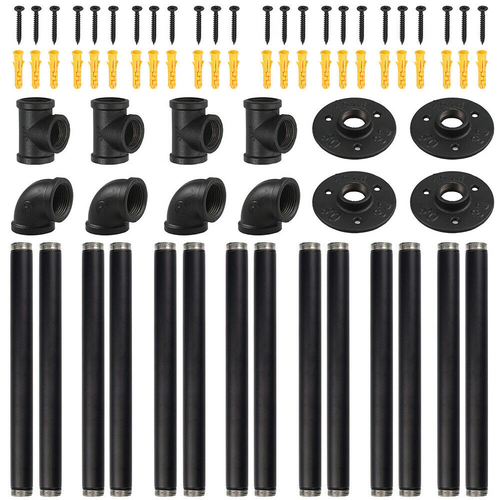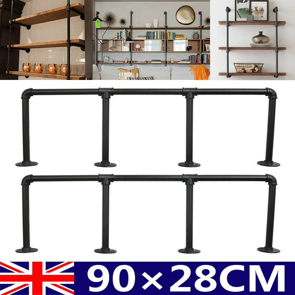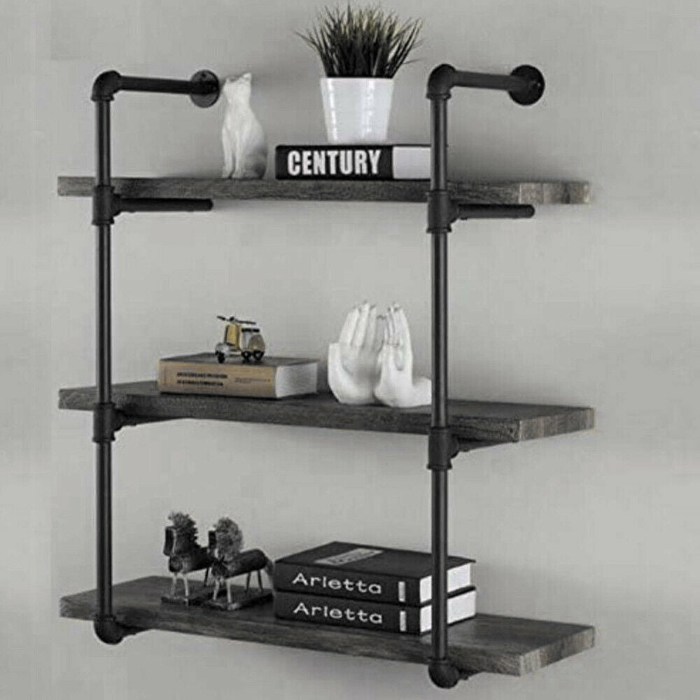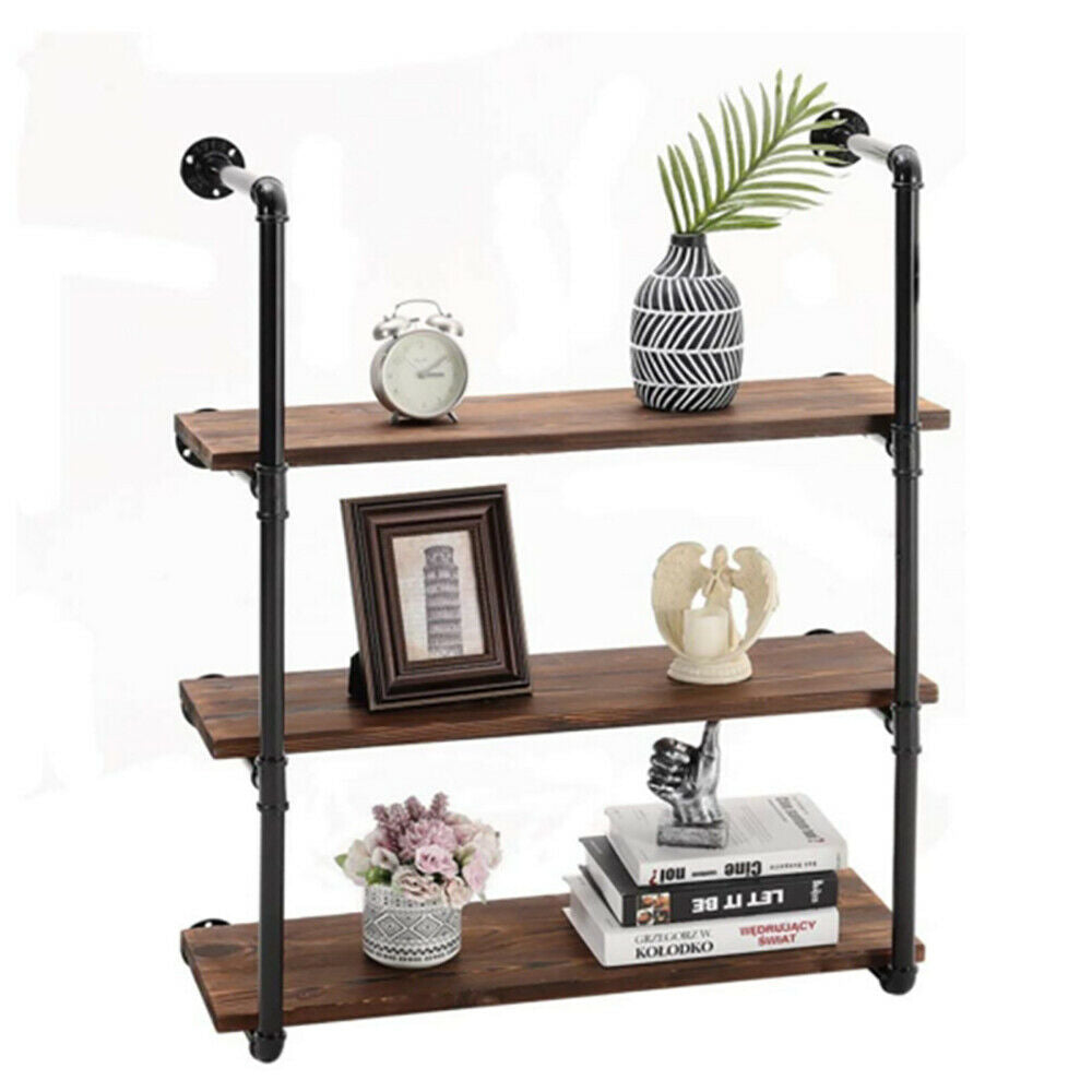 2Pcs 3 Tiers Industrial Floating Iron Pipe Shelf Retro DIY Wall Mounted Bracket
