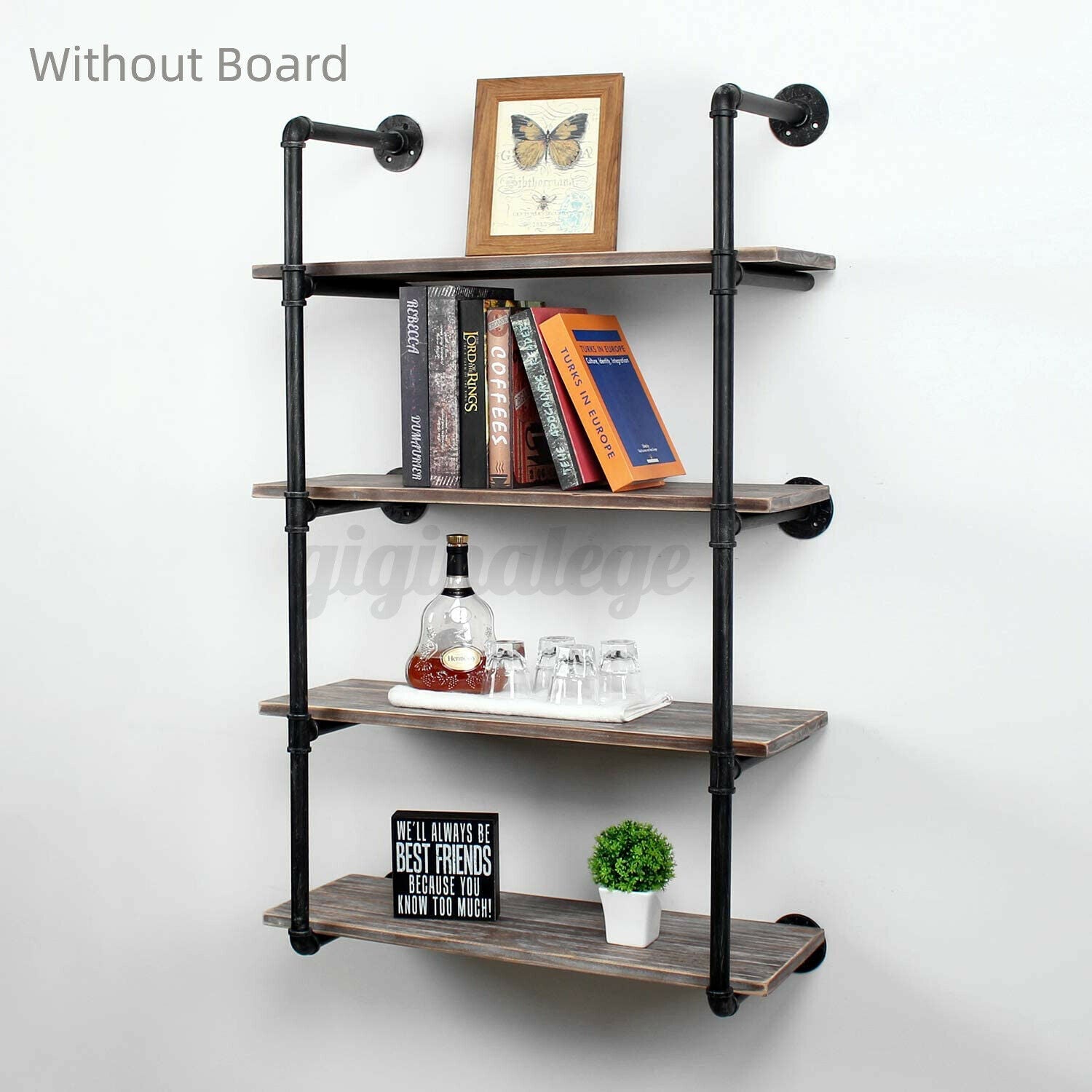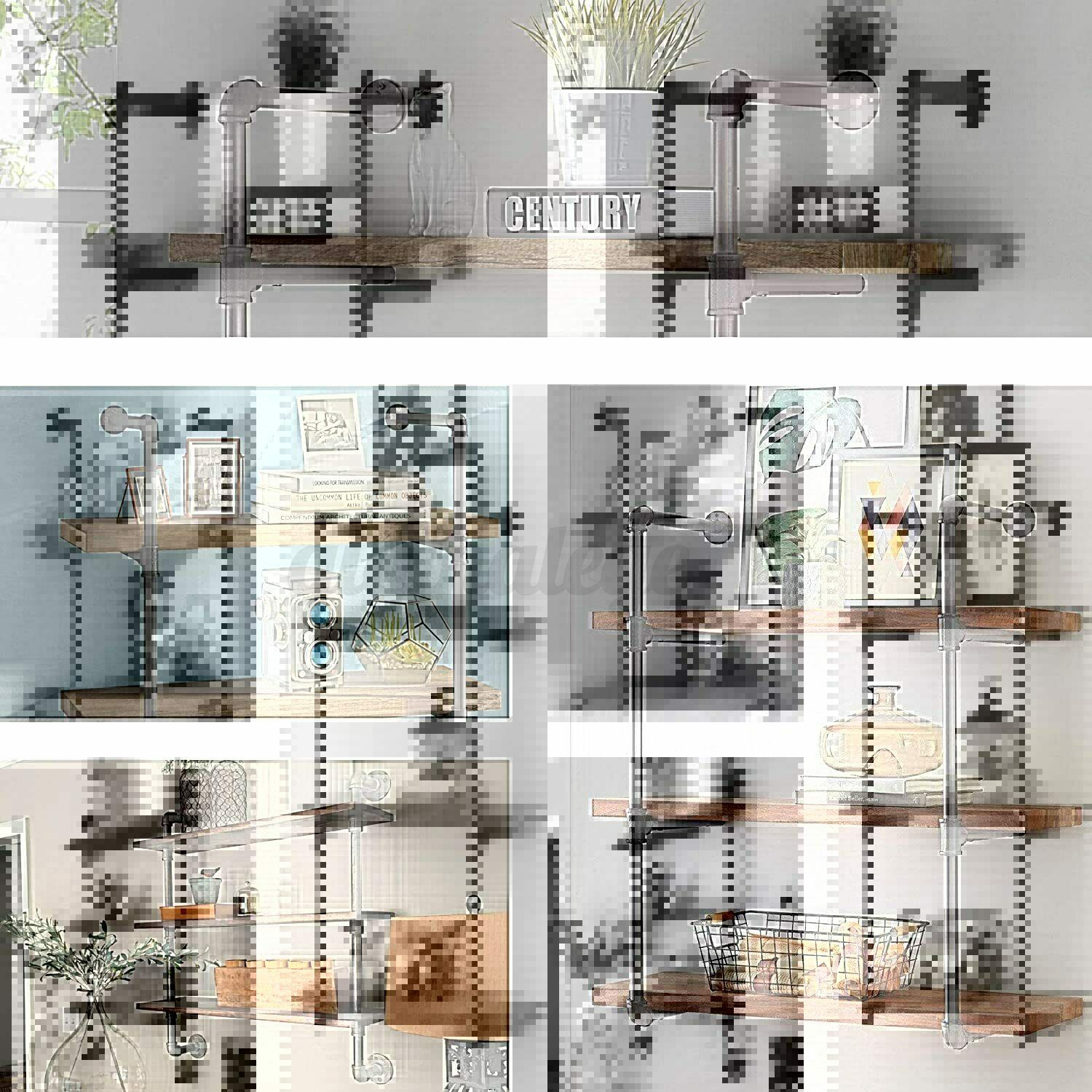 2Pcs 4 Tiers Industrial Floating Iron Pipe Shelf Retro DIY Wall Mounted Bracket