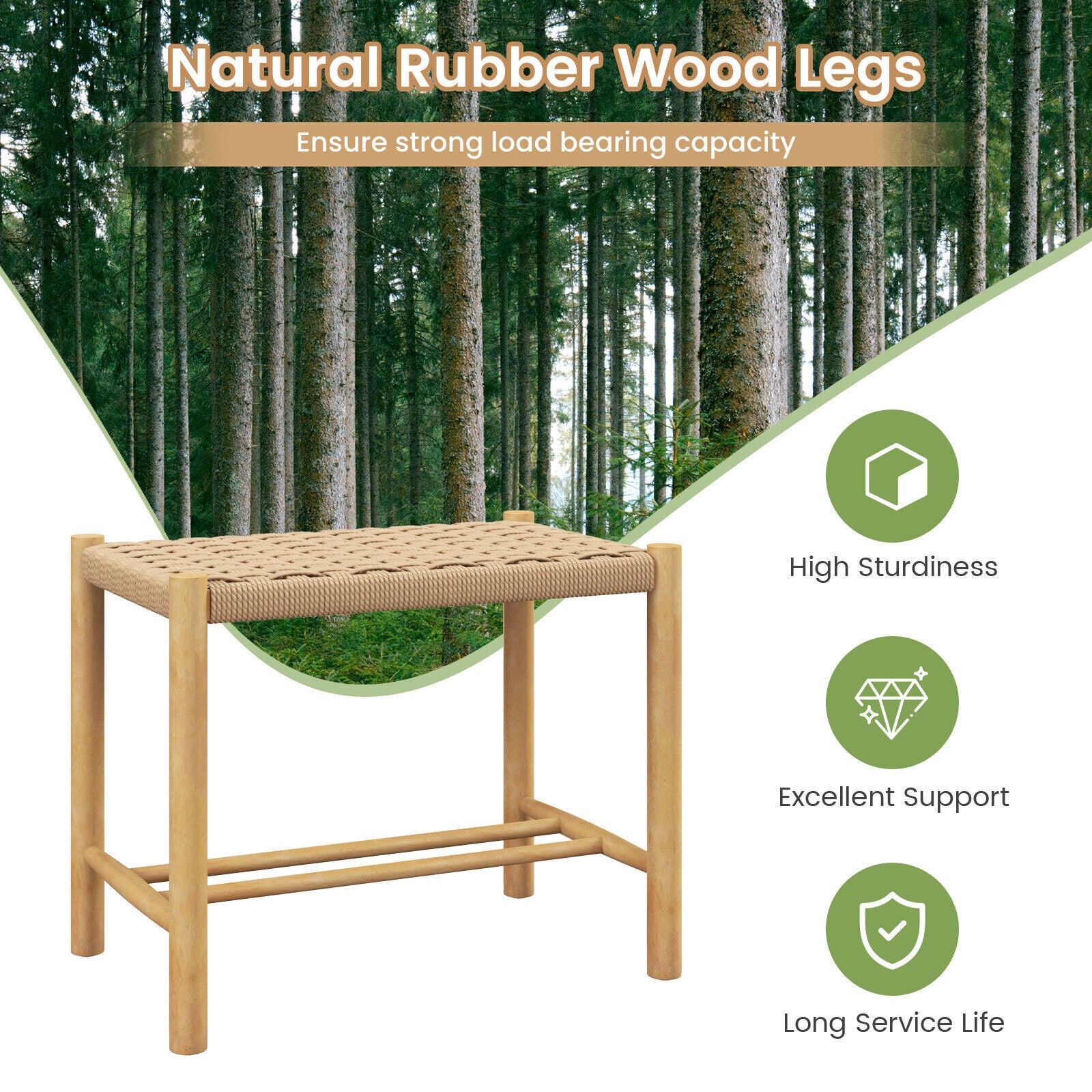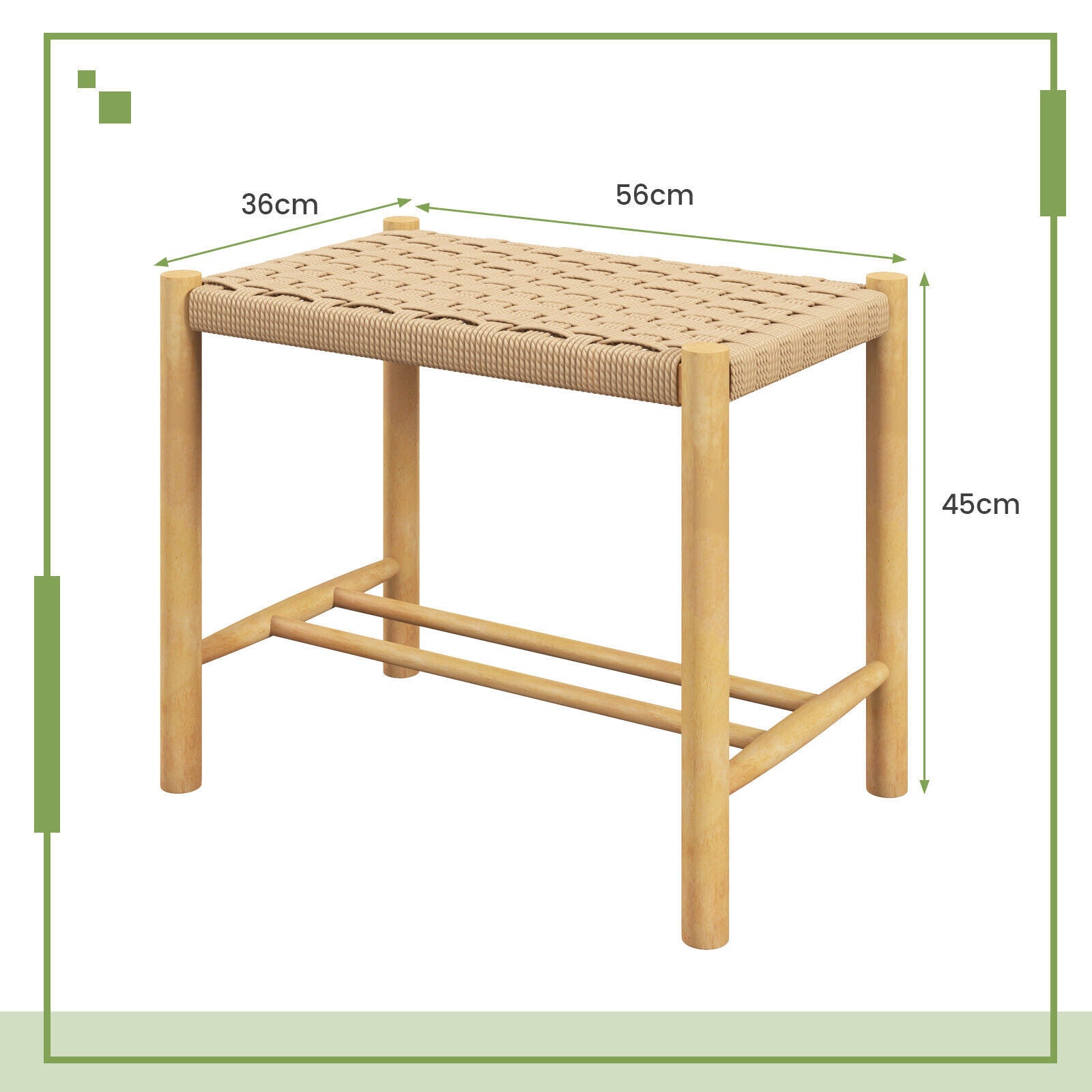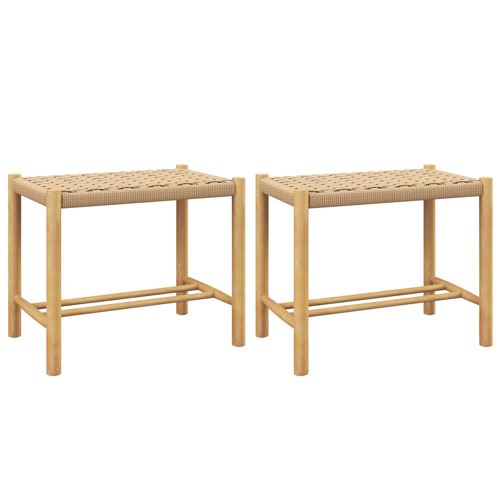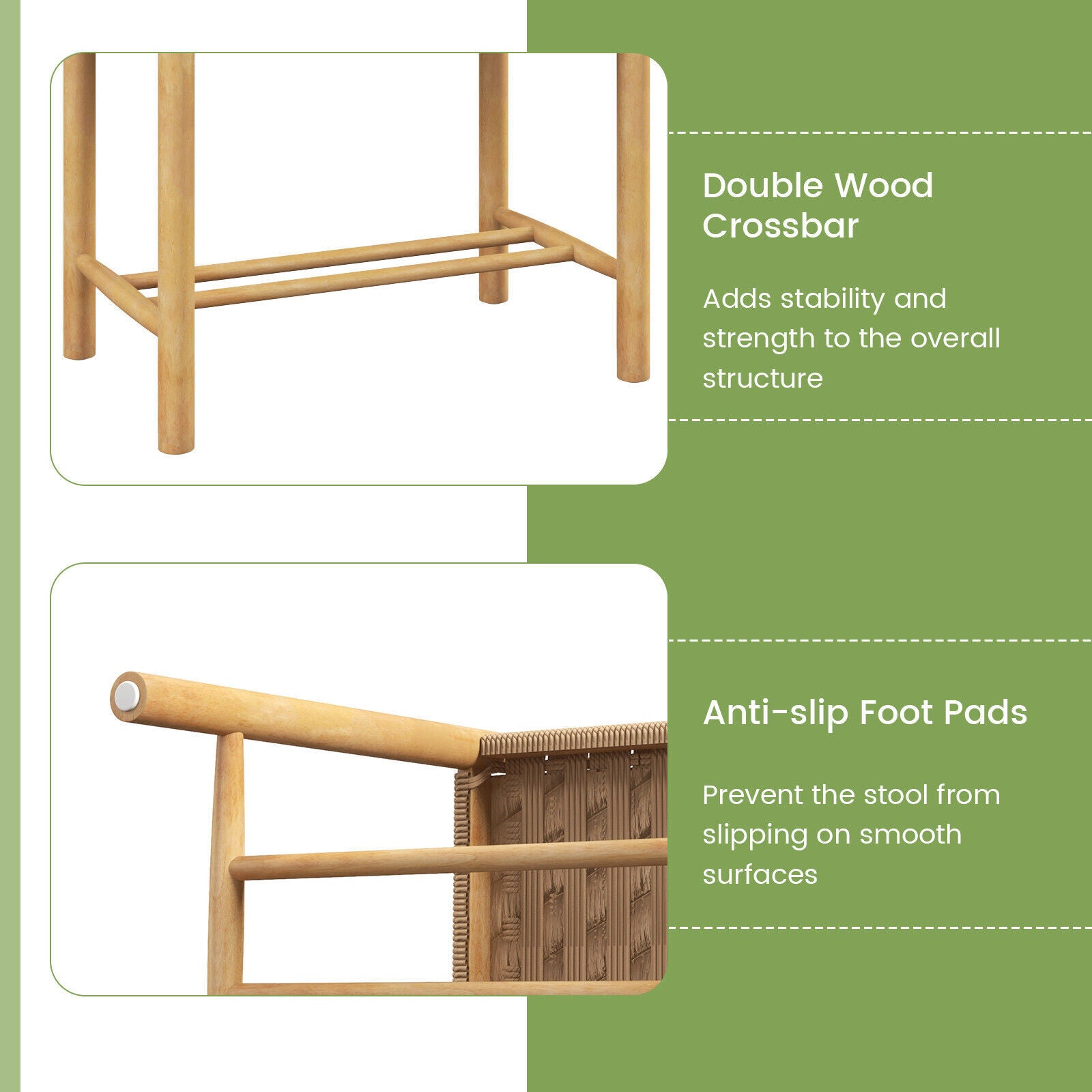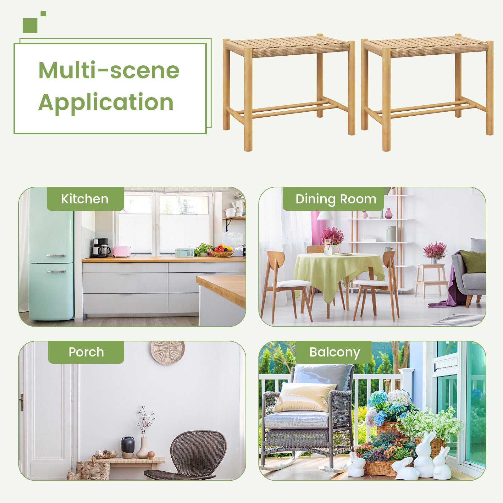 2Pcs 45CM Rustic Backless Stool Chair Rubber Wood Dining Stool Woven Paper Seat