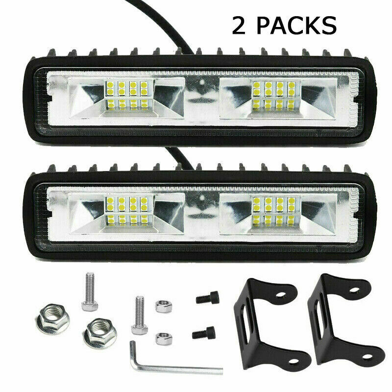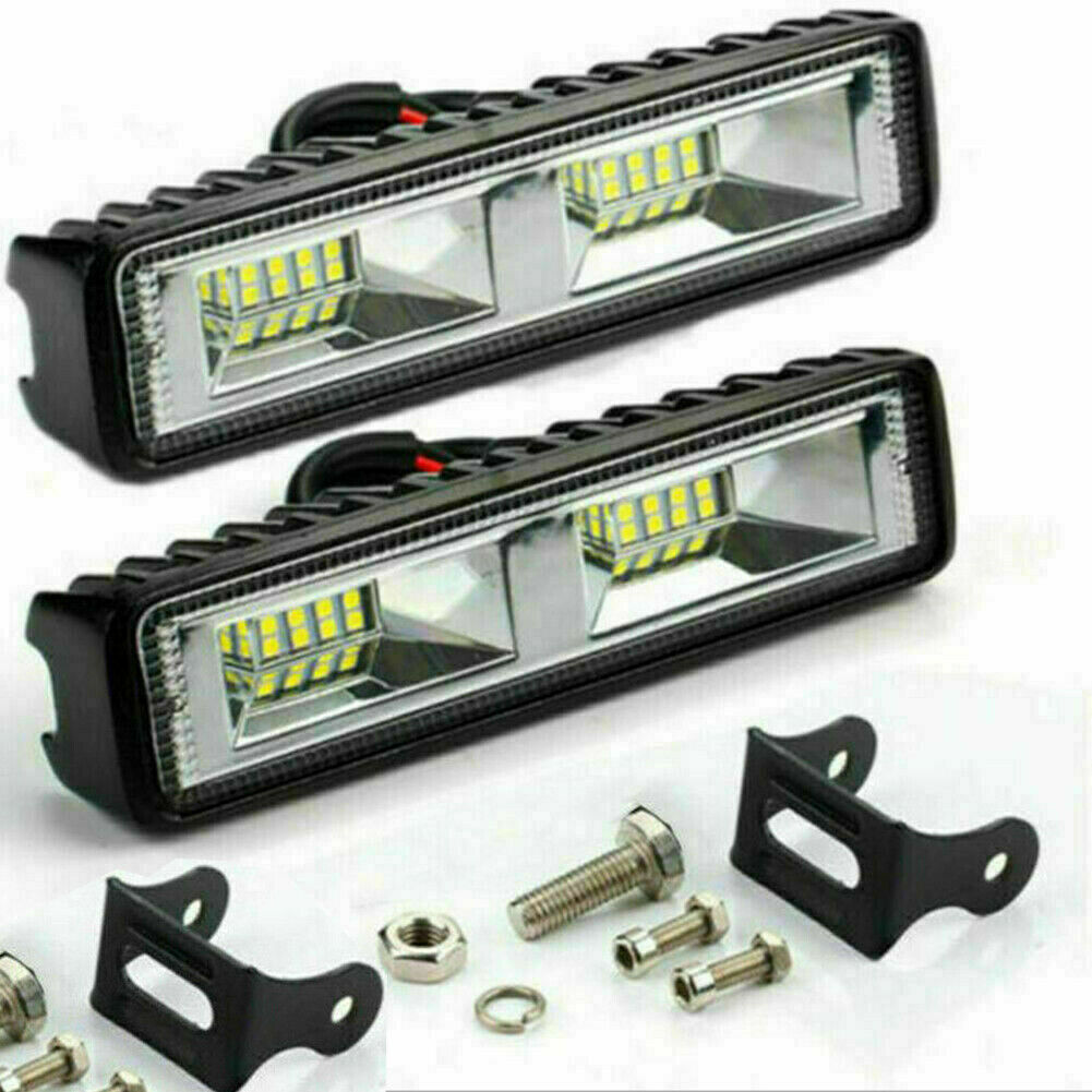 2Pcs 6 Inch 48W LED Work Lights Bar Flood Fog Lamp Offroad Driving Truck SUV ATV