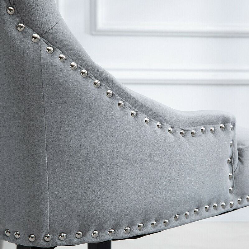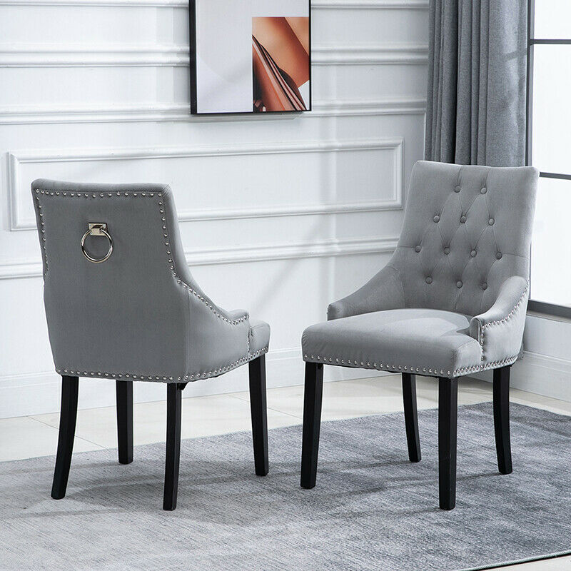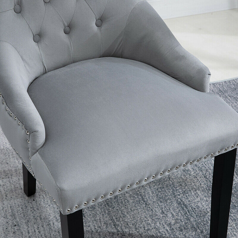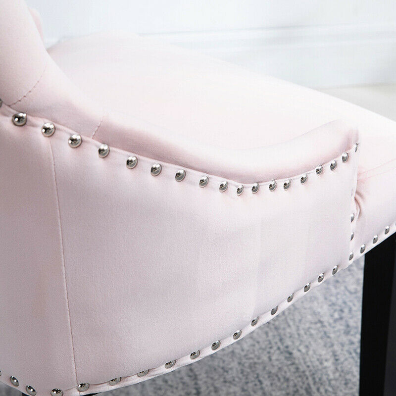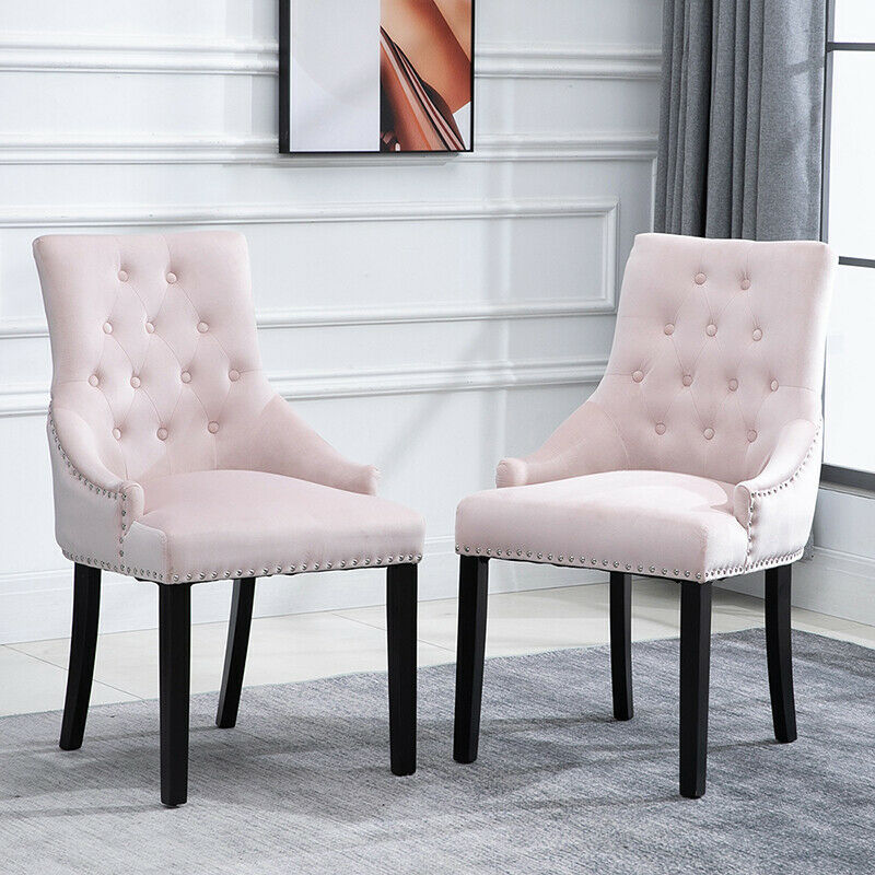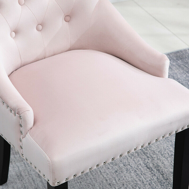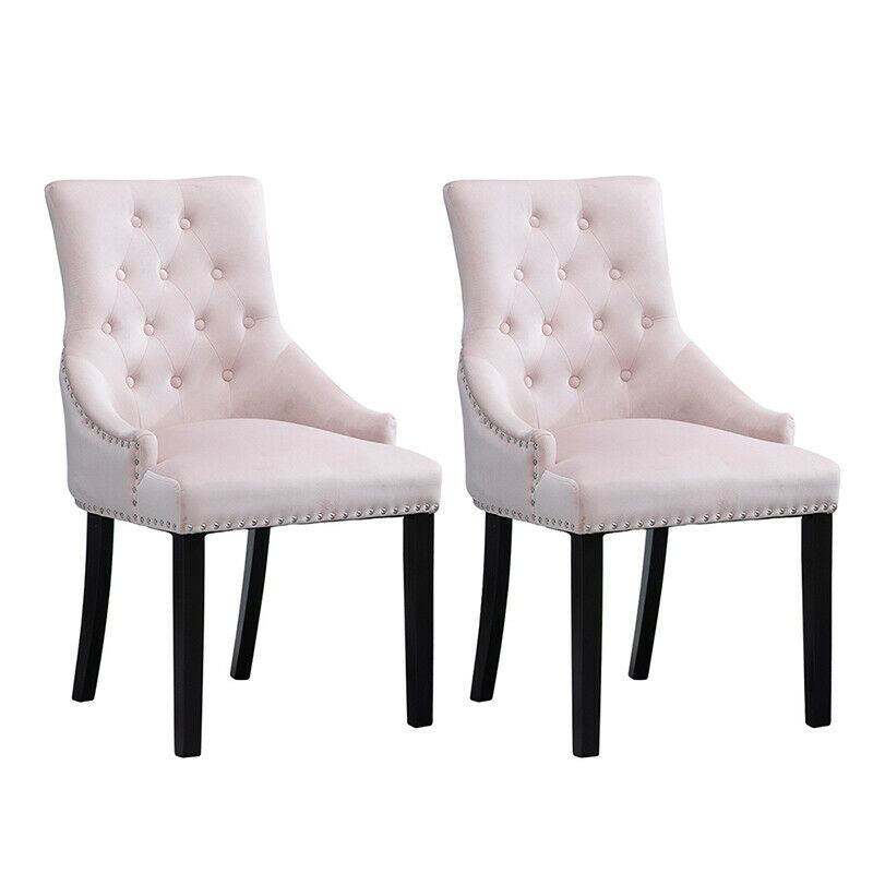 2pcs Accent Knocker Velvet Soft Fabric Dining Chairs Studded Padded Armchairs UK