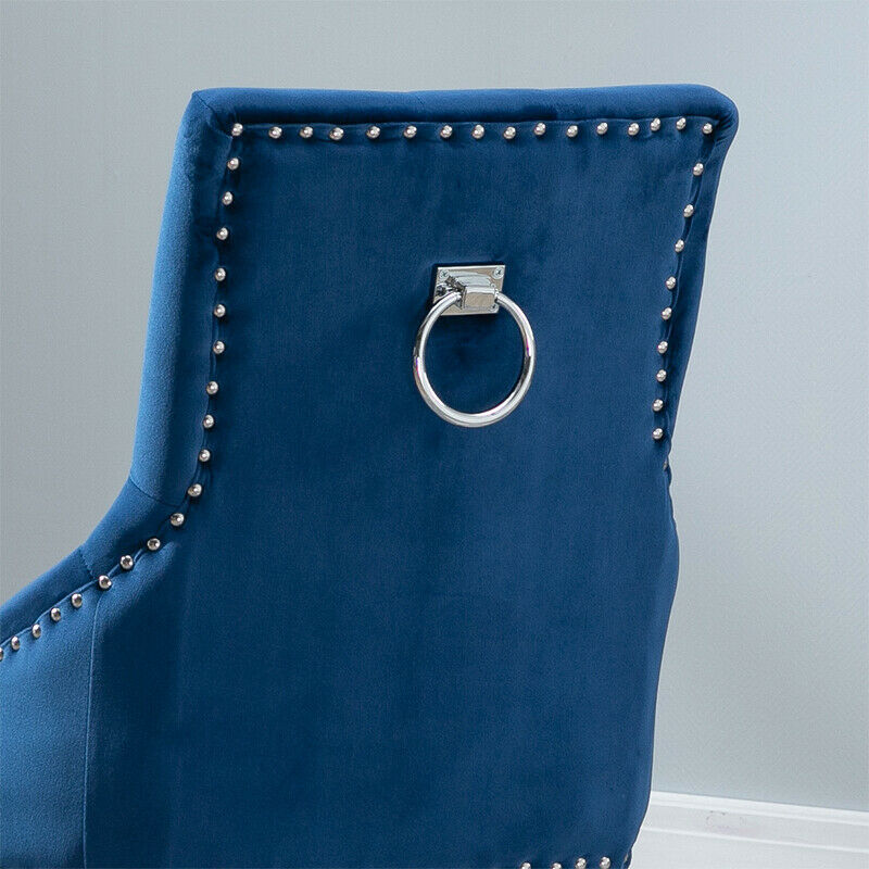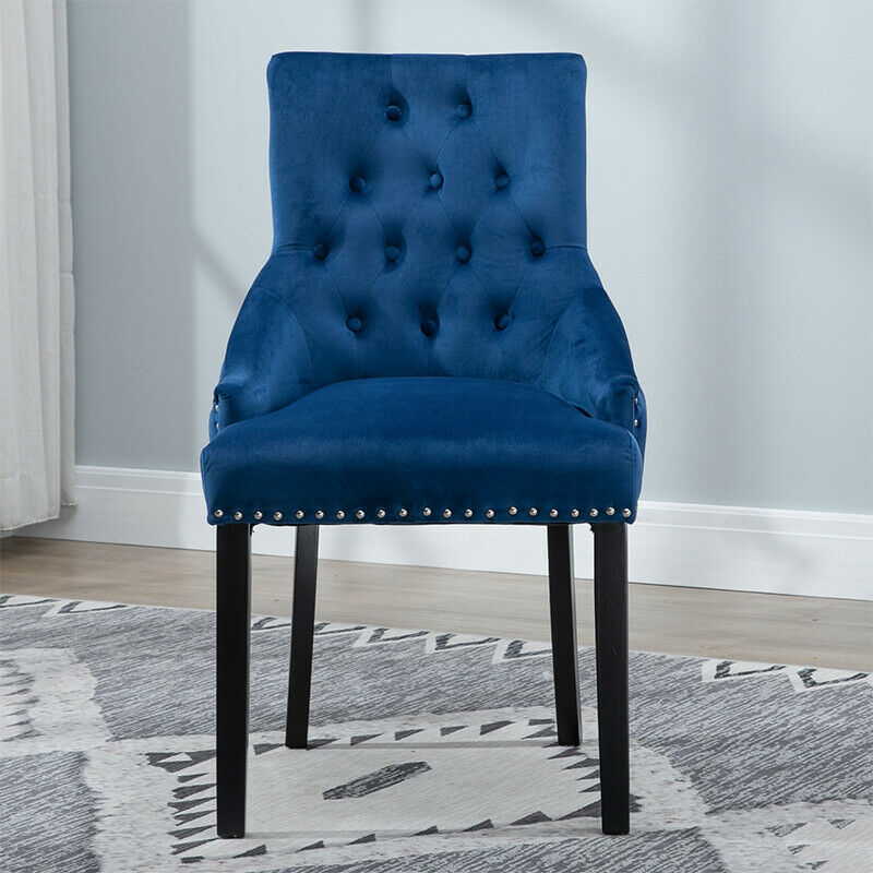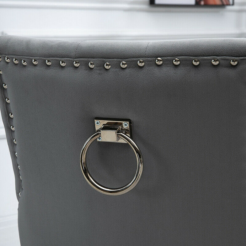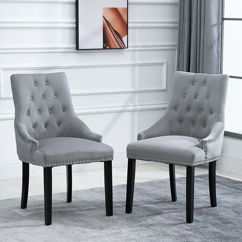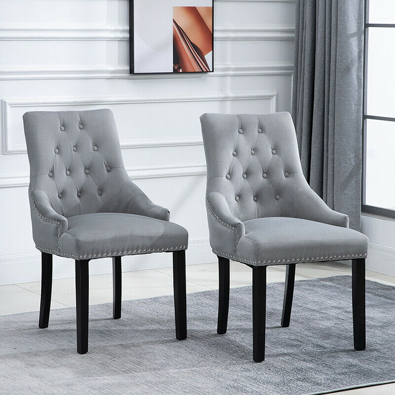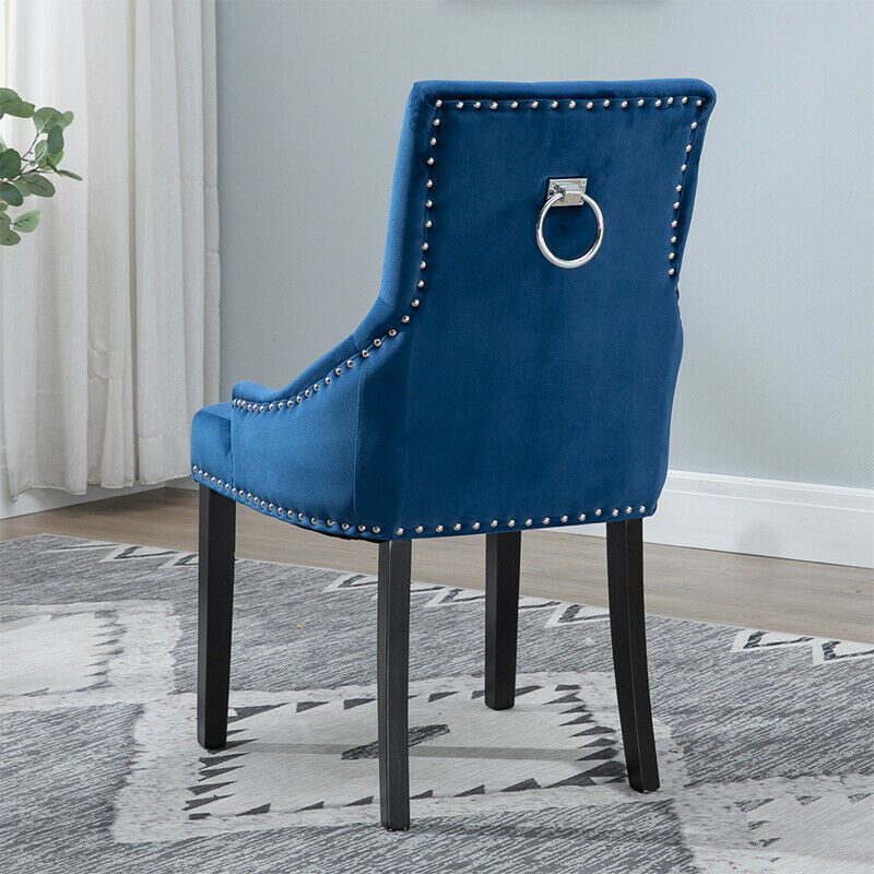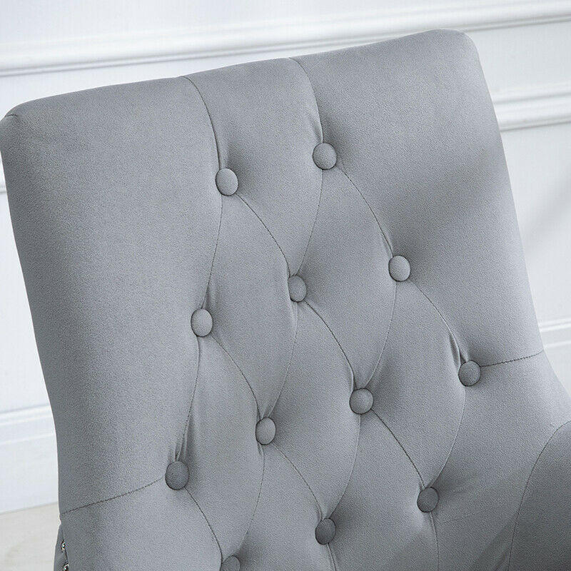 2pcs Accent Knocker Velvet Soft Fabric Dining Chairs Studded Padded Armchairs UK