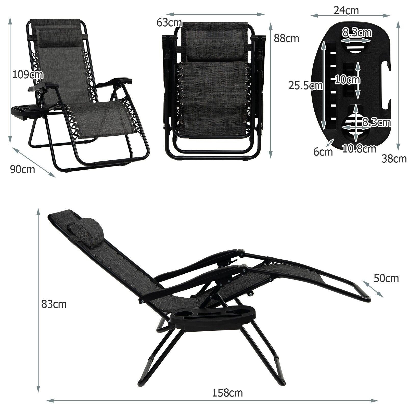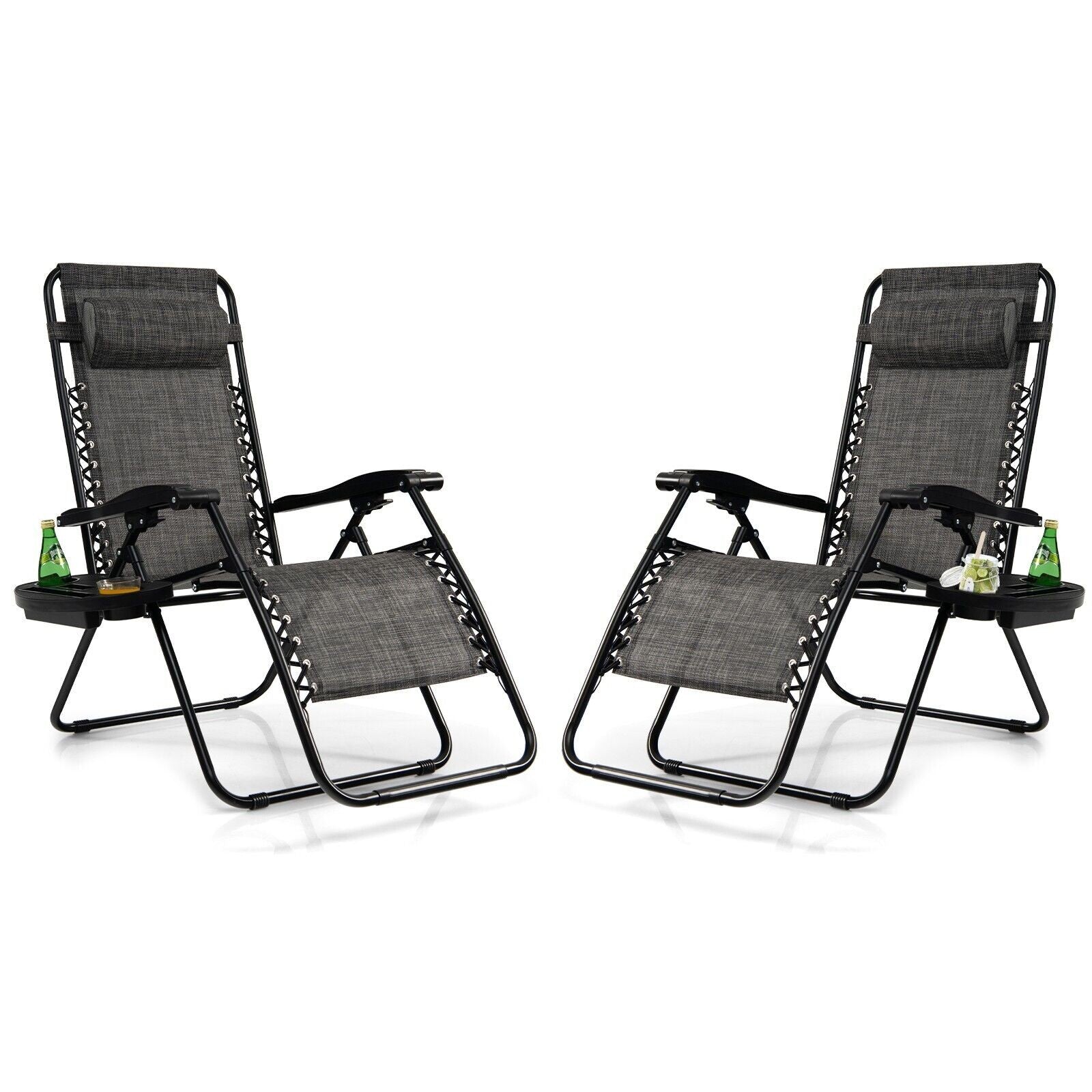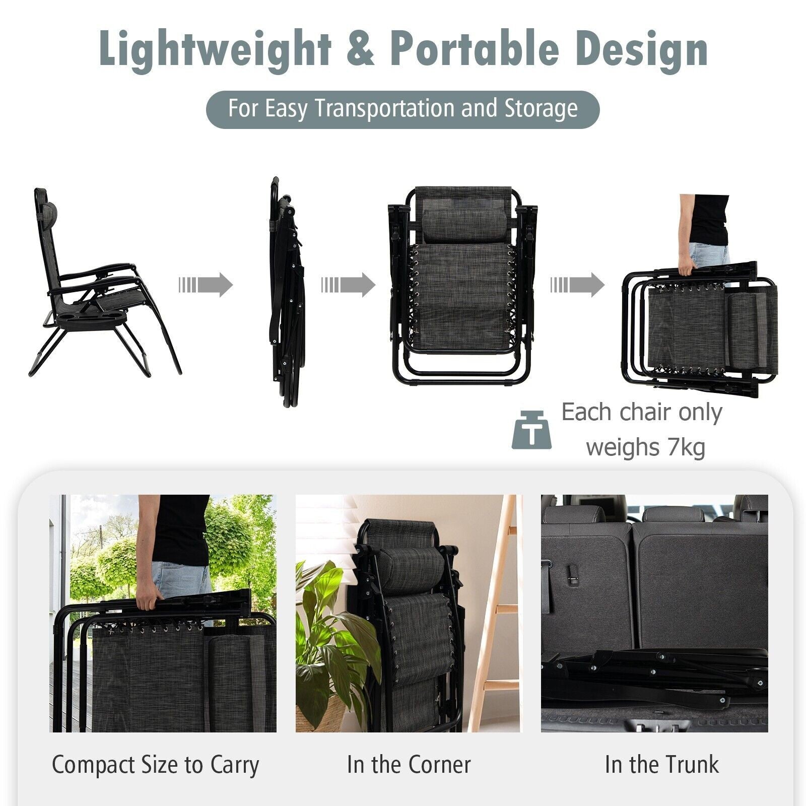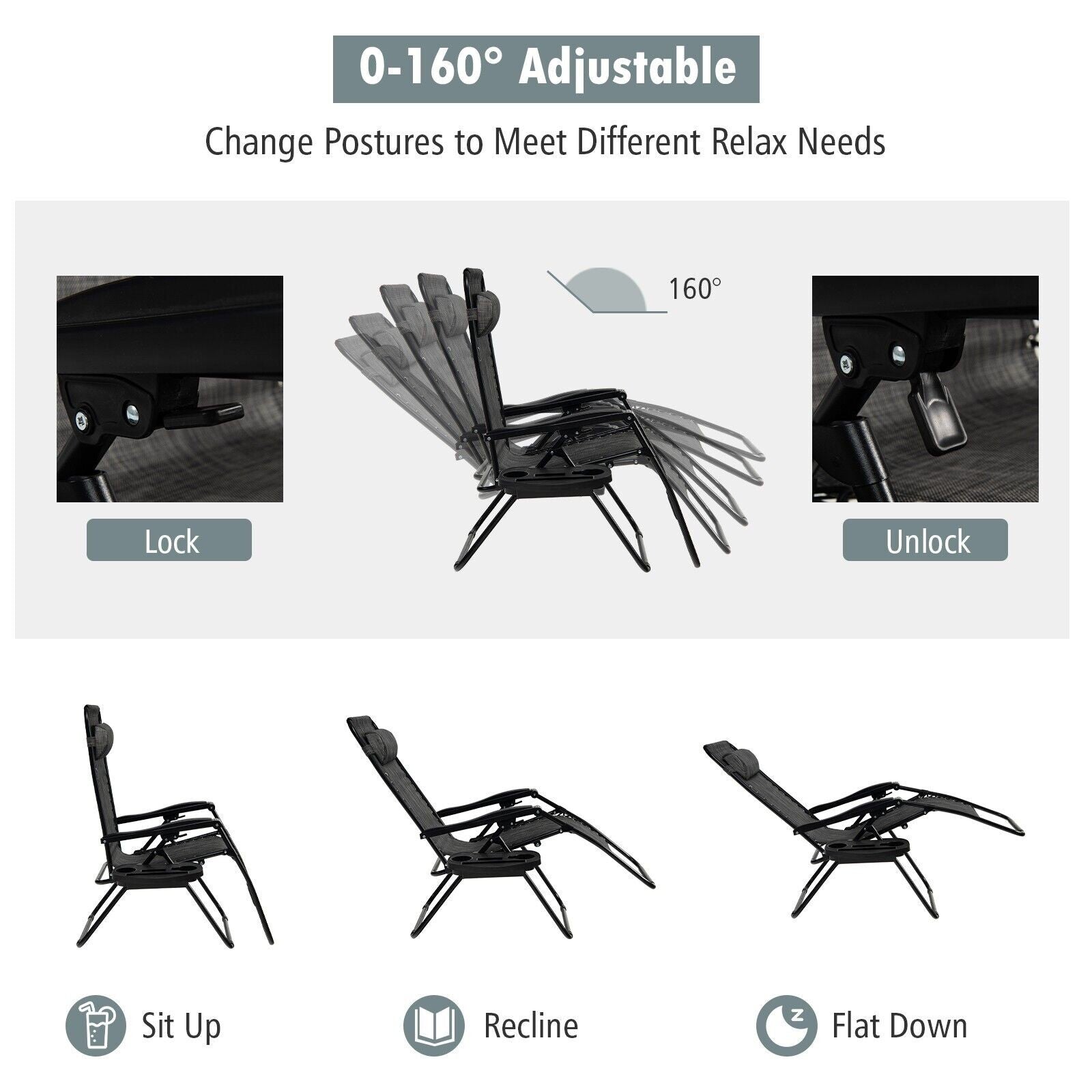2PCS Adjustable Zero Gravity Chairs Outdoor Folding Patio Recliners w/ Headrest