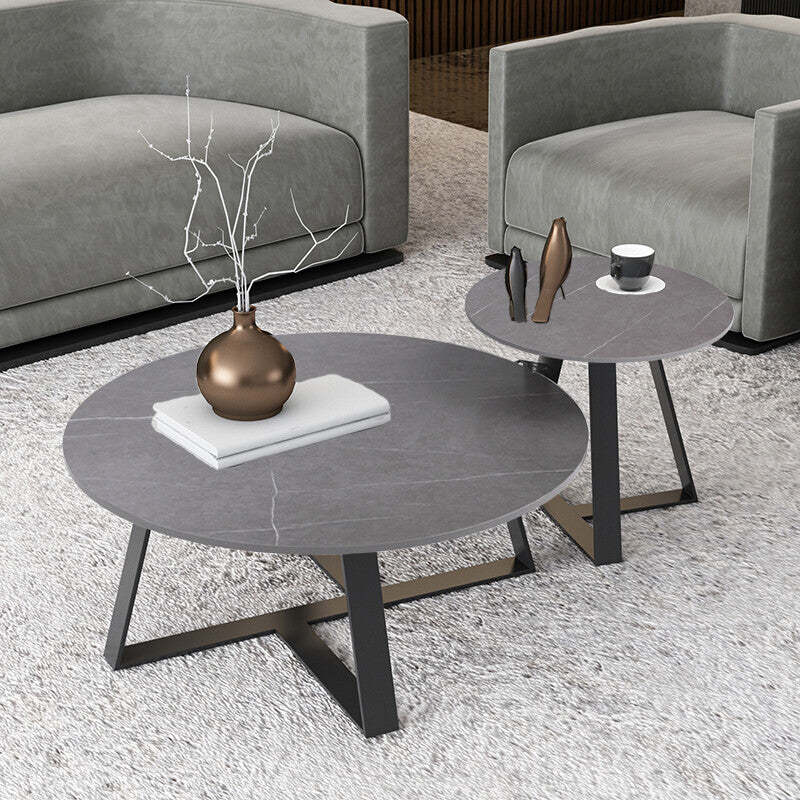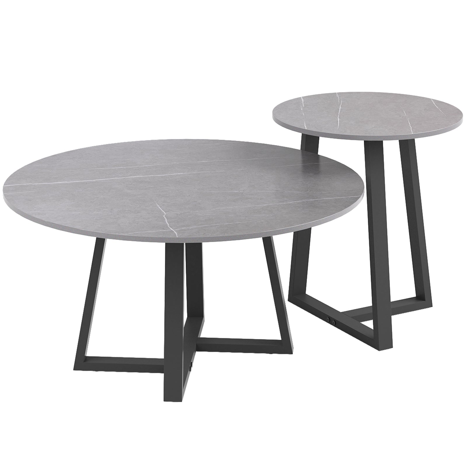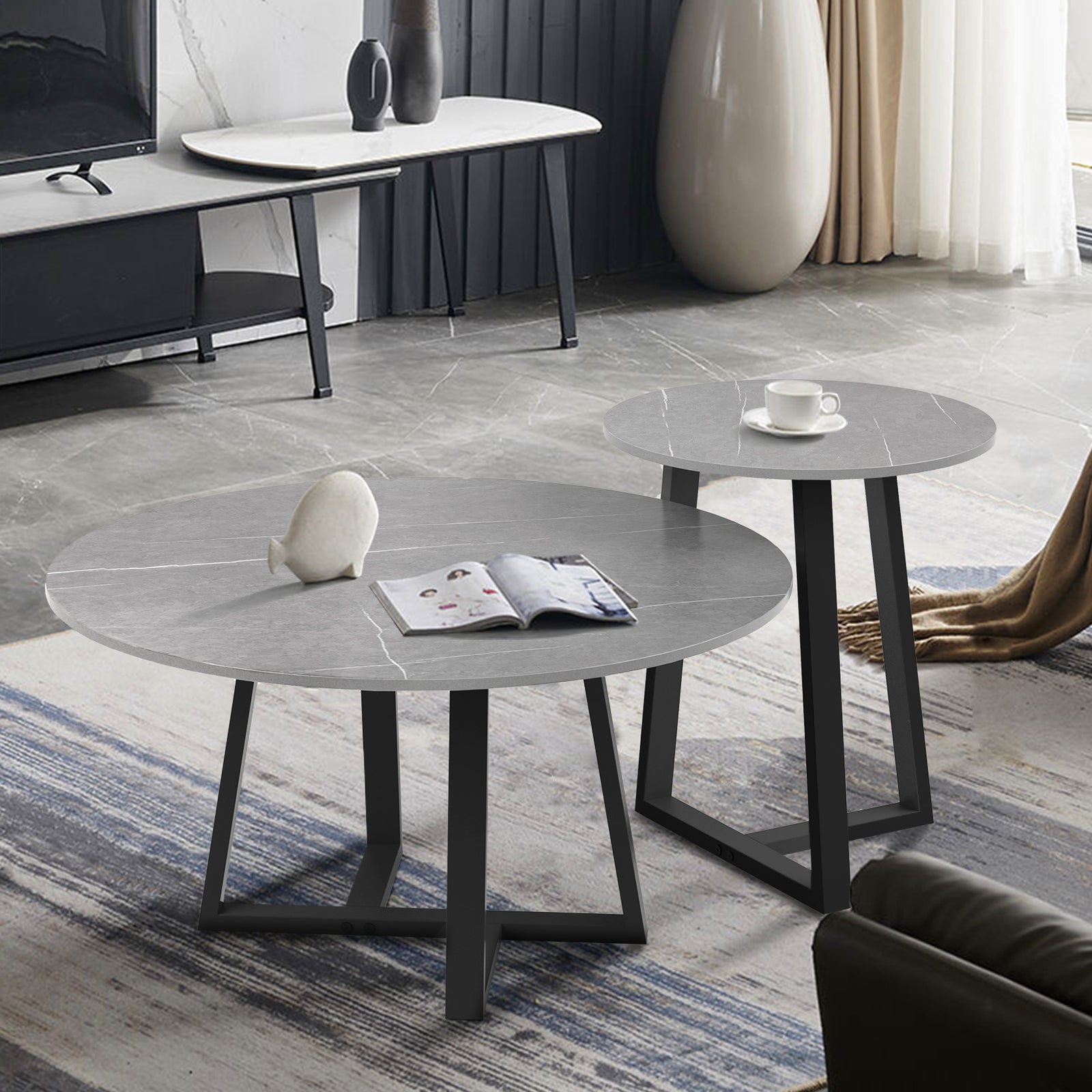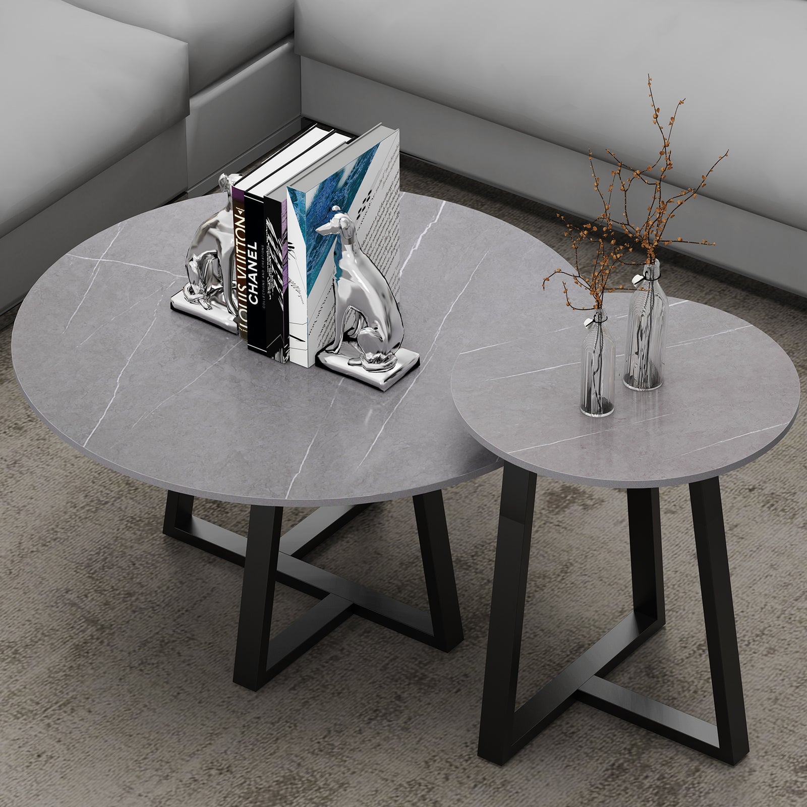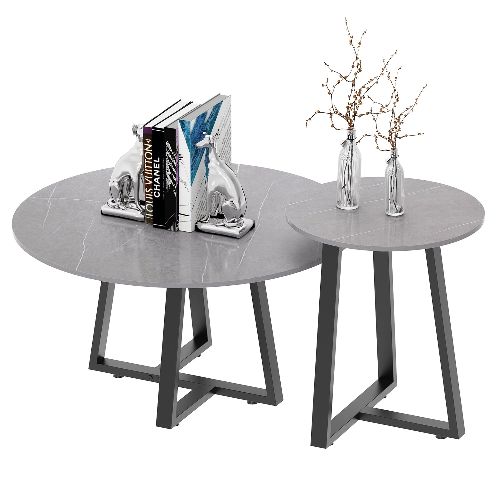2pcs Anti-Dirty Marble Nesting Coffee Table Premium Grey Stacking End Side Table