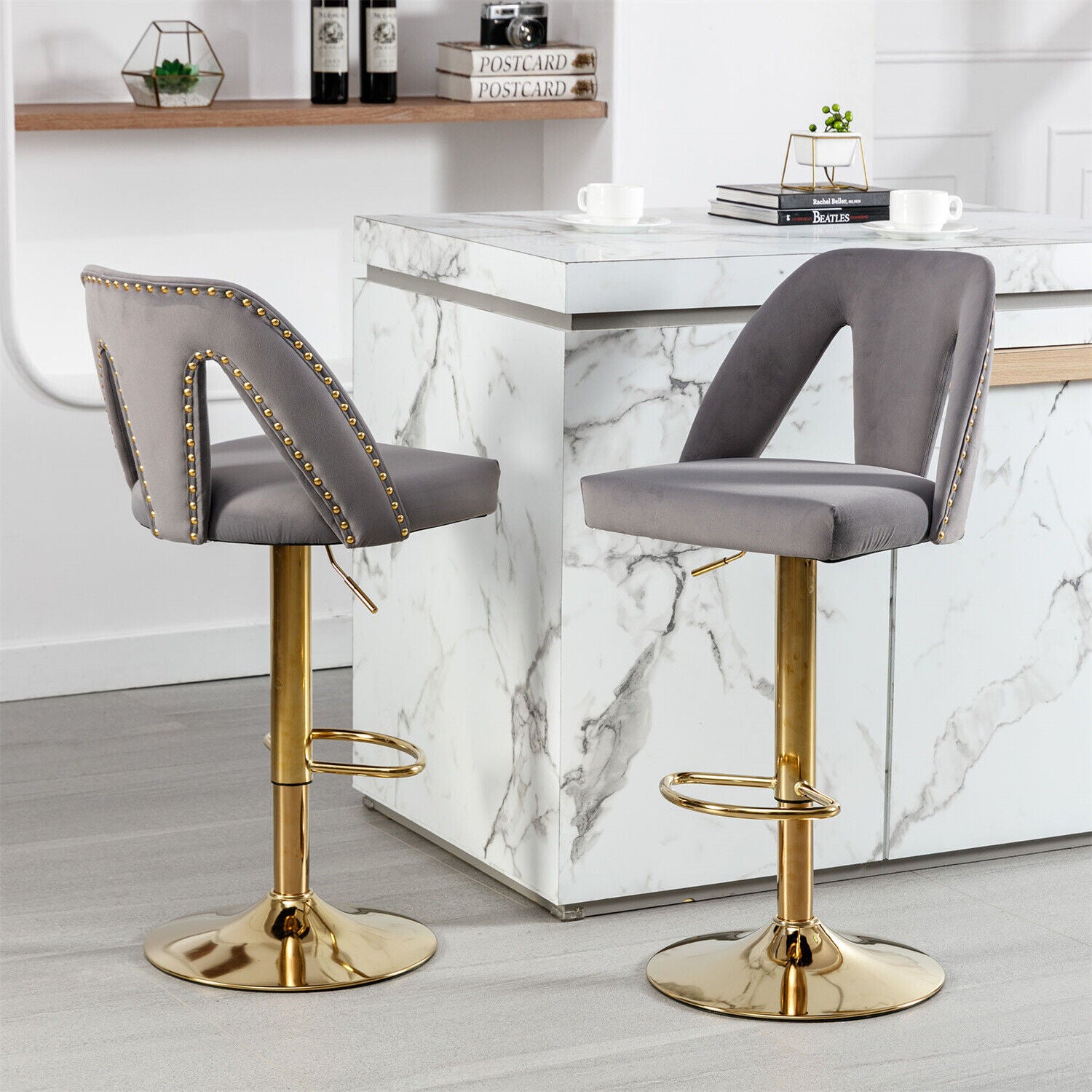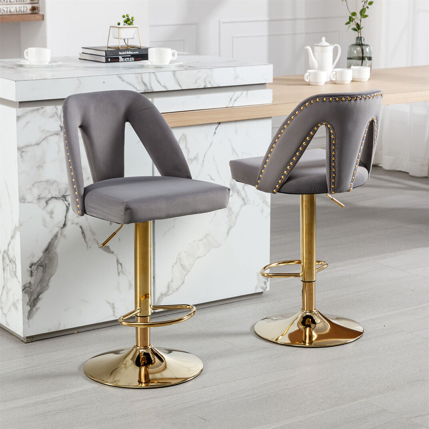 2Pcs Bar chairs Swivel Barstools Adjustable Counter Stools for Home Kitchen Grey