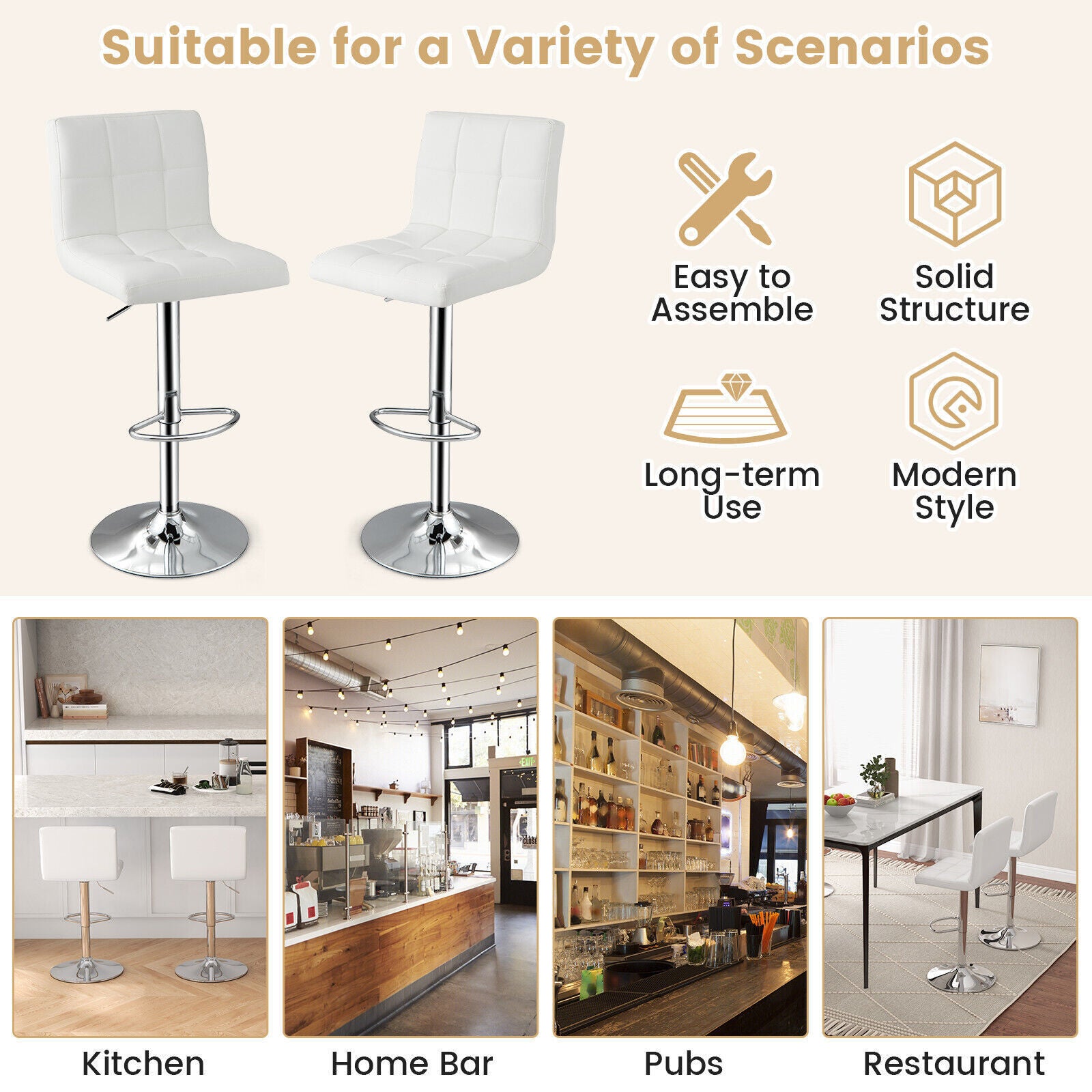 2Pcs Bar Stool PU Leather Bar Chairs Adjustable Kitchen Dining Stools w/Footrest