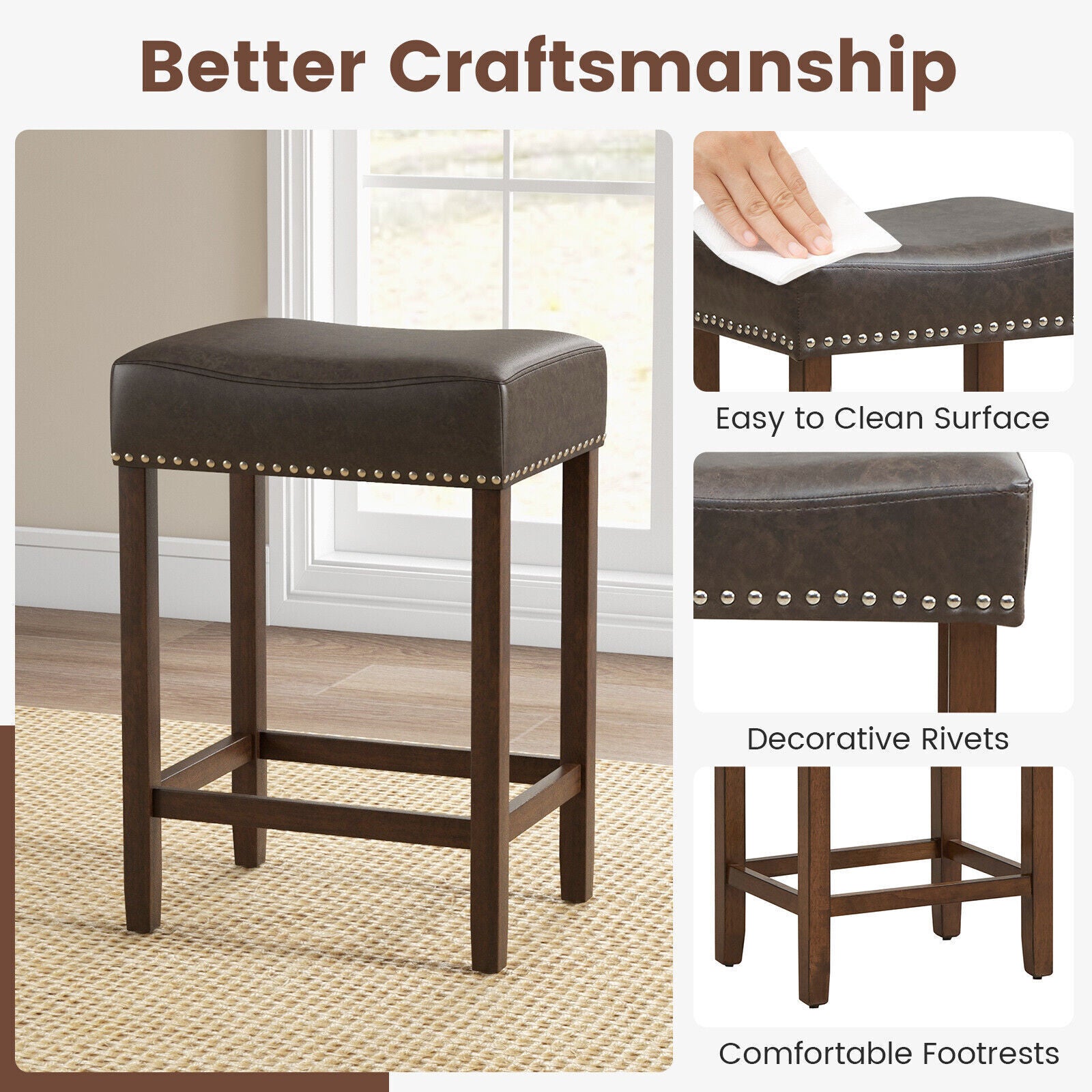 2Pcs Bar Stool PU Leather Counter Height Saddle Stools Dining Chairs Grey 60CM