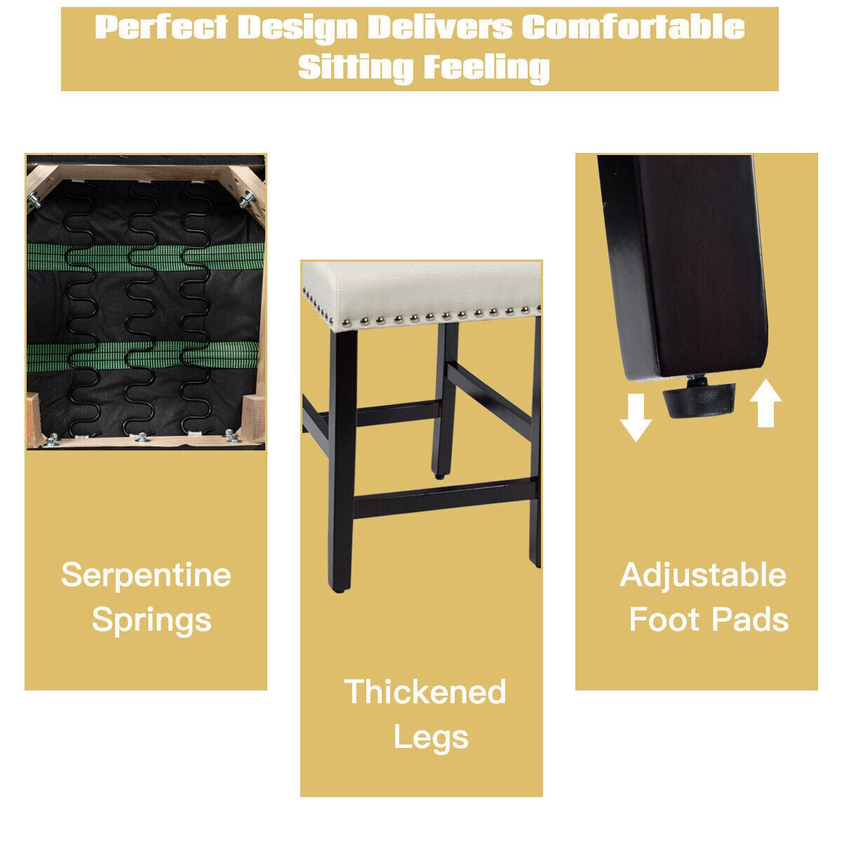 2Pcs Bar Stool Upholstered Fabric Pub Stools Counter Height Stools Dining Chairs