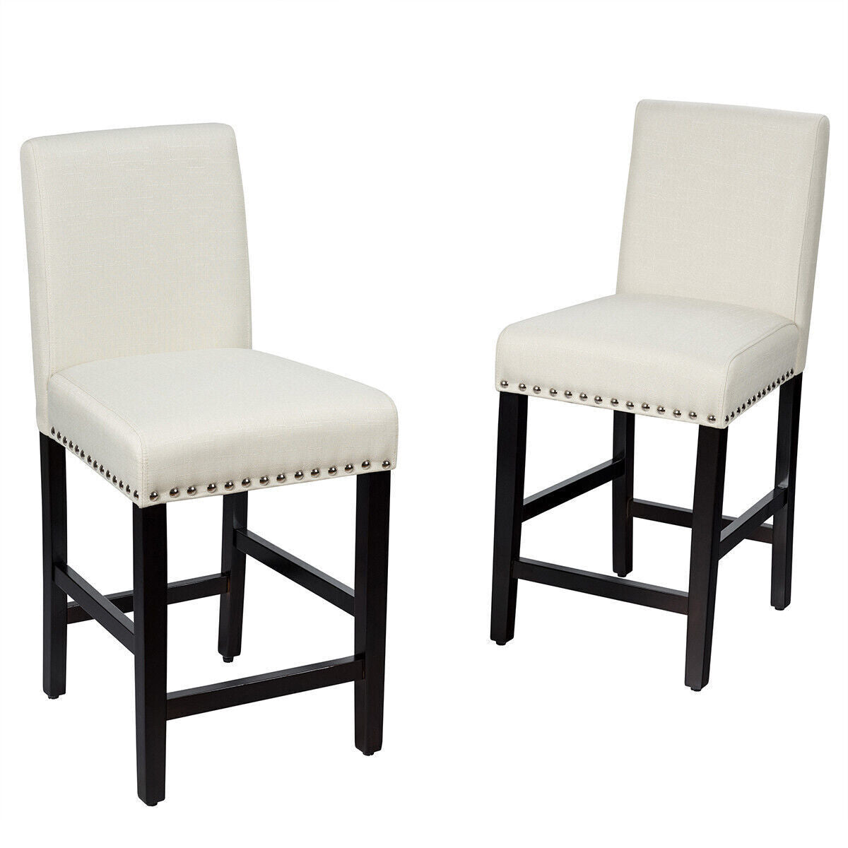 2Pcs Bar Stool Upholstered Fabric Pub Stools Counter Height Stools Dining Chairs