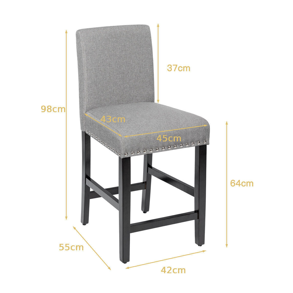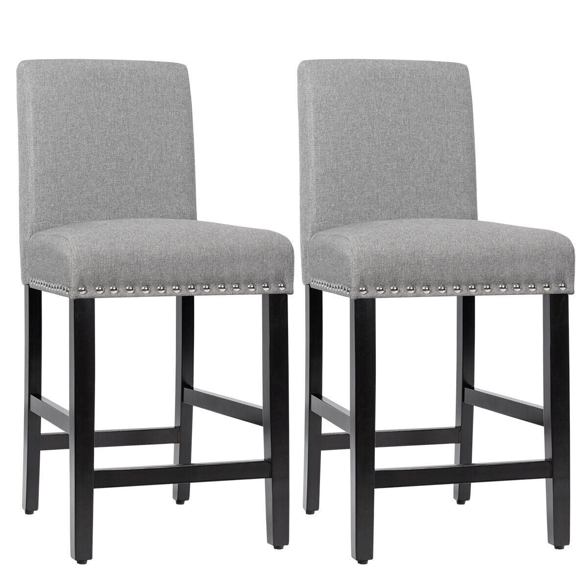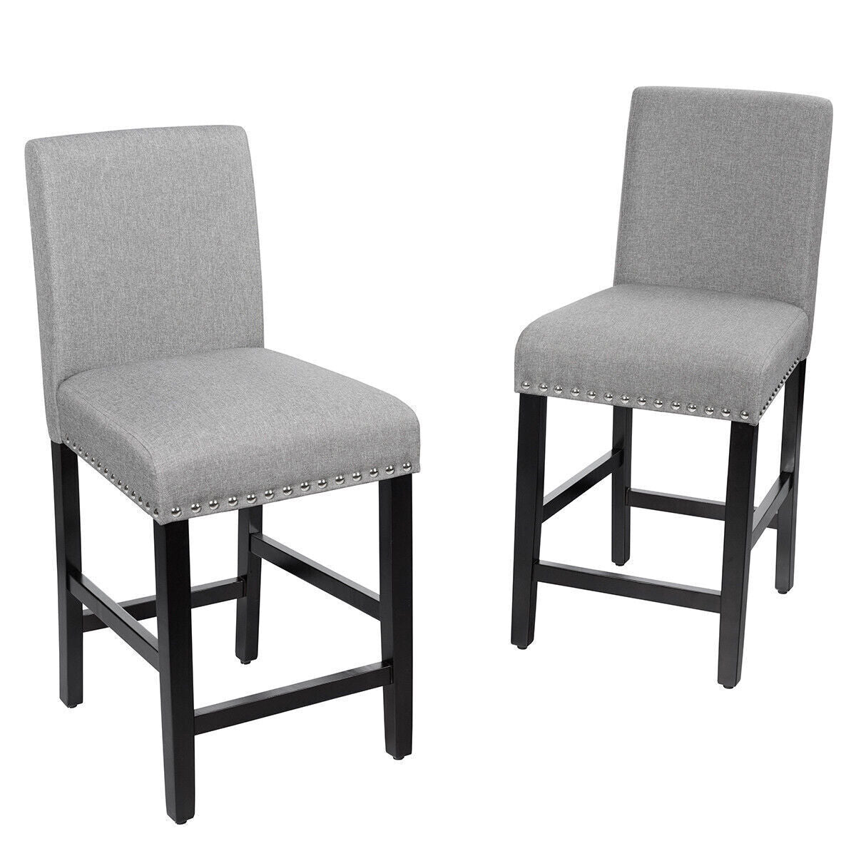 2Pcs Bar Stool Upholstered Fabric Pub Stools Counter Height Stools Dining Chairs