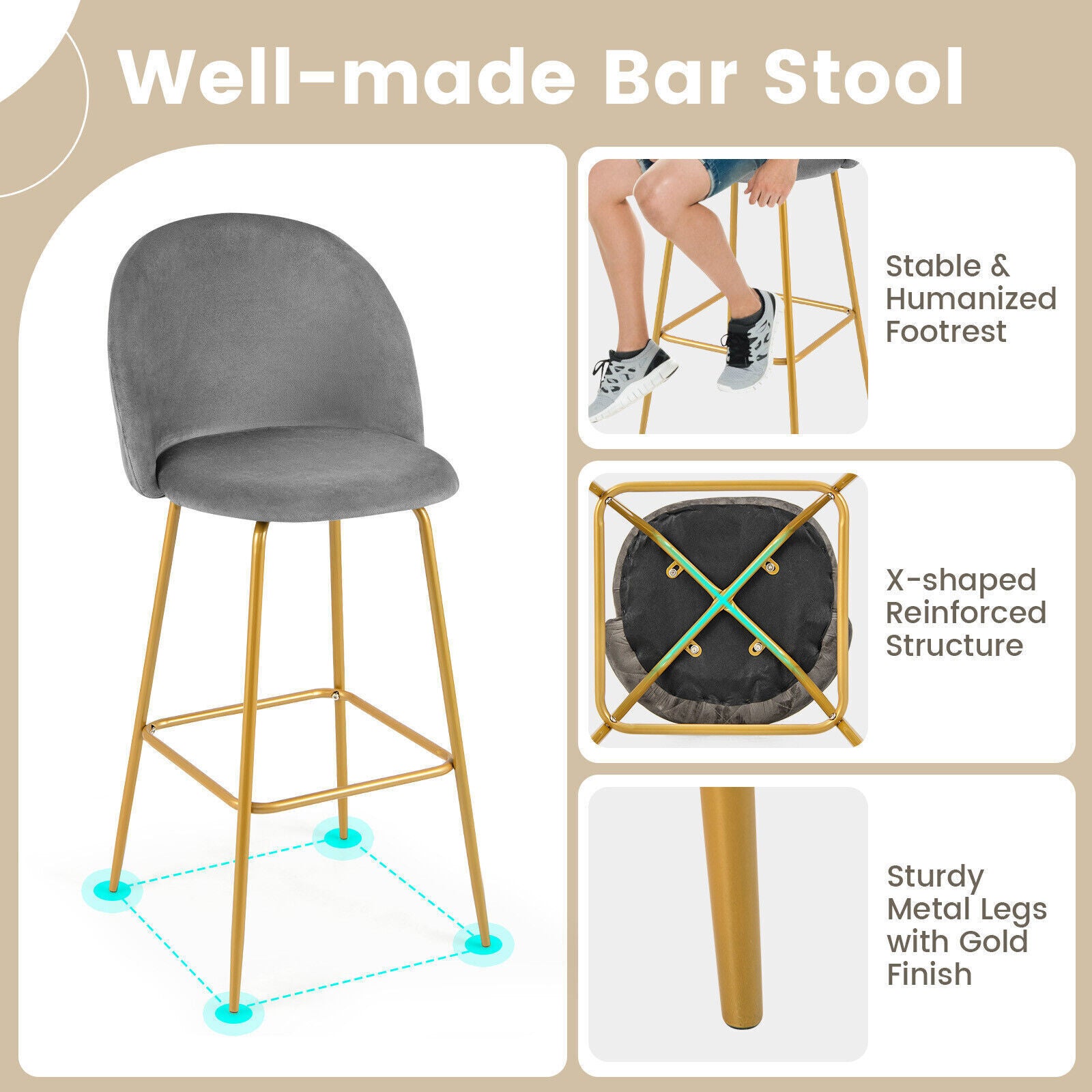 2Pcs Bar Stool Upholstered Pub Chairs Counter Height Stools w/ Footrests Grey