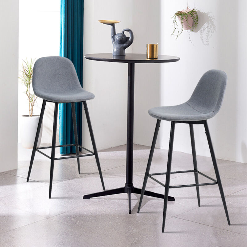 2Pcs Bar Stools Fabric Breakfast Bar Stools Kitchen Chairs Metal Leg 75 cm Seat