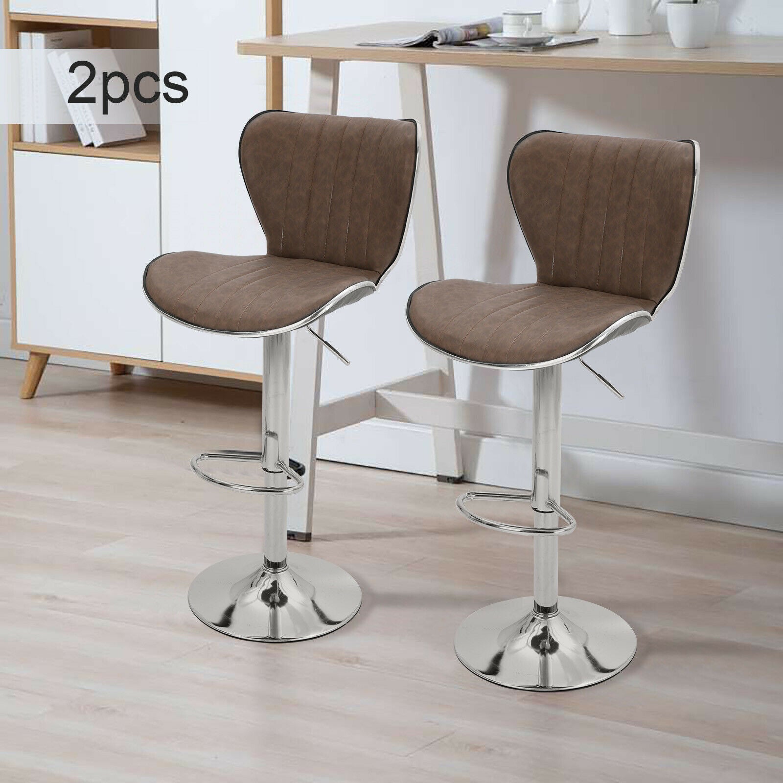 2pcs Bar Stools Faux Leather Kitchen Breakfast Barstools Dark Brown Lift Swivel